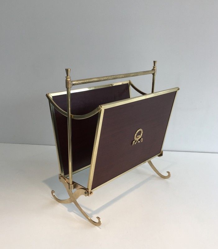 Lucite, Brass and Encrusted Cane Magazine Rack In the Style of Christian Dior and Gabriella Crespi. Circa 1970