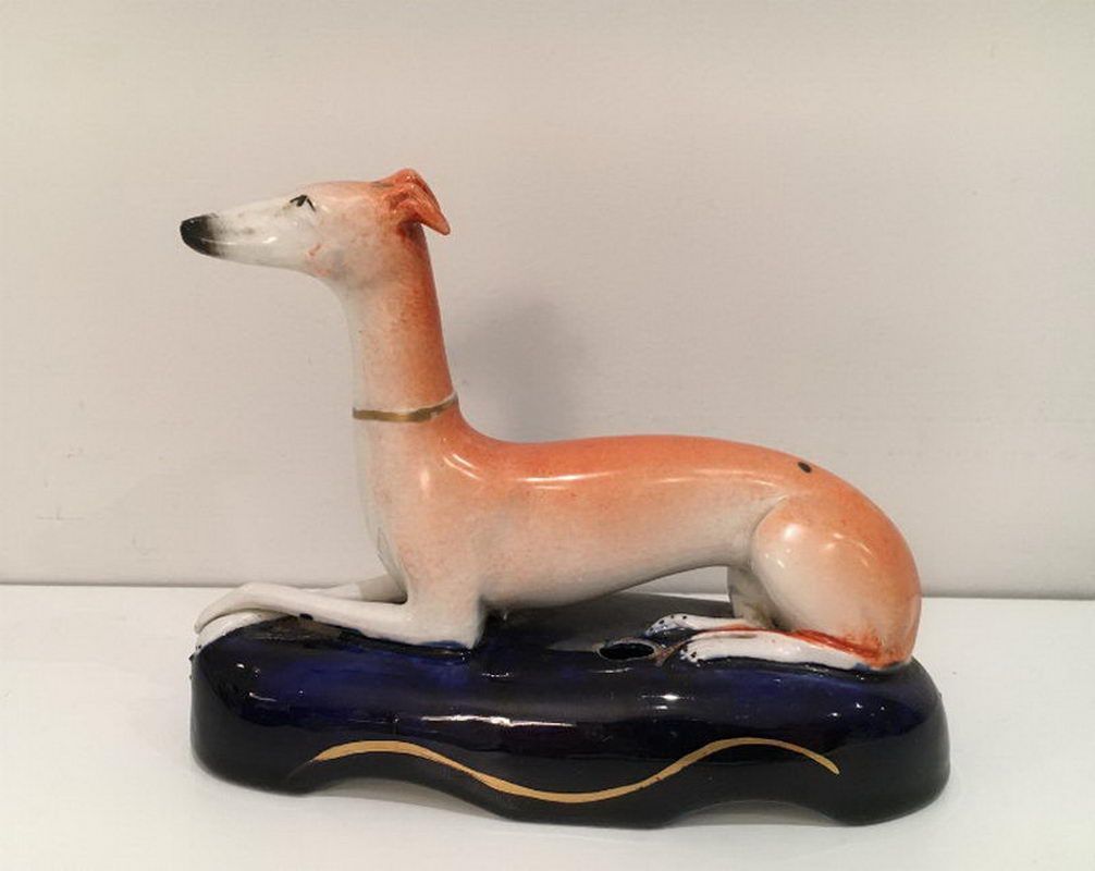 Pyrogène en Faïence Anglaise représentant Chien sur la Cheminée