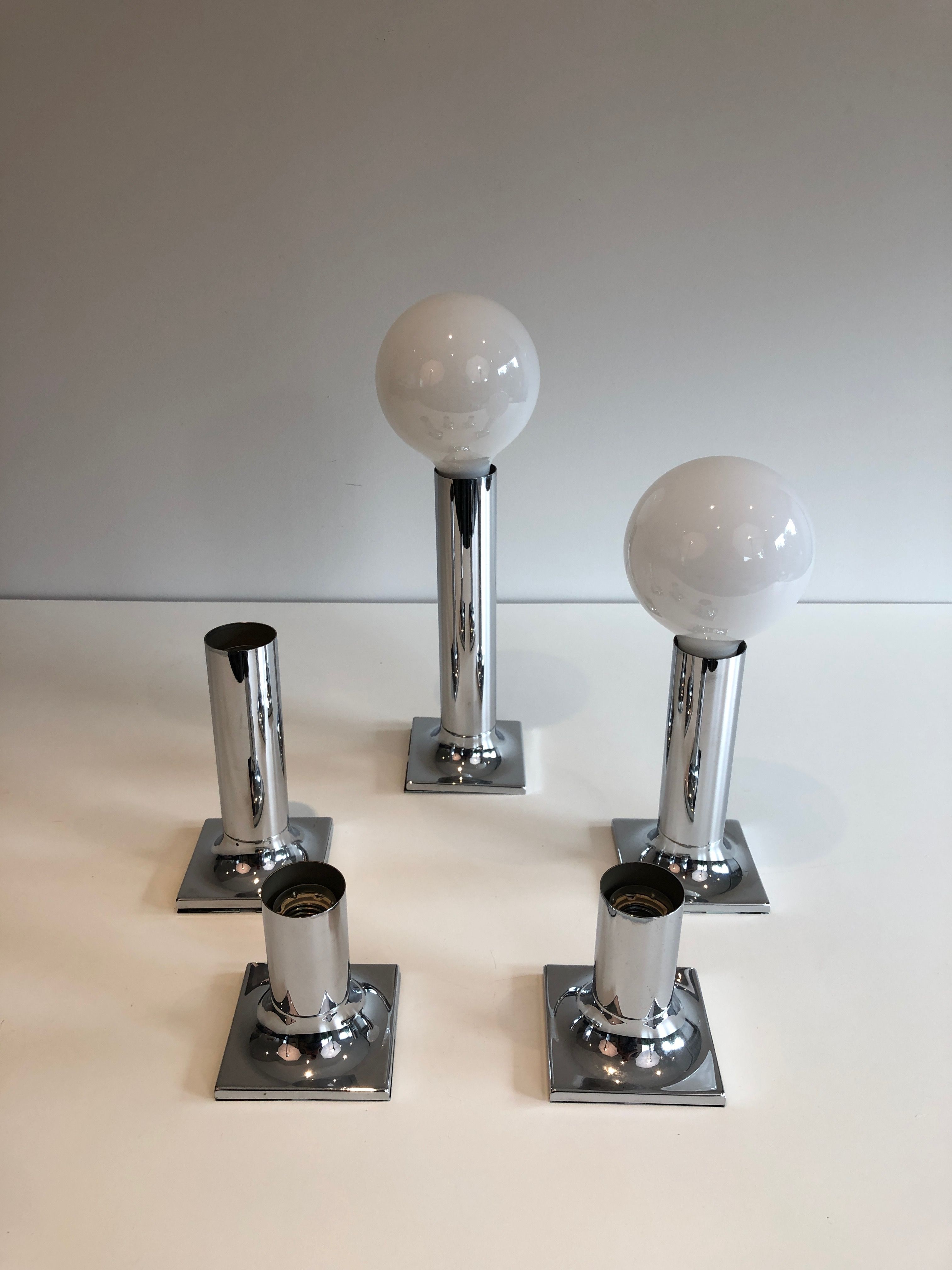 Set of Chrome and White Opaline Glass Bowls Wall Lights or Fixtures