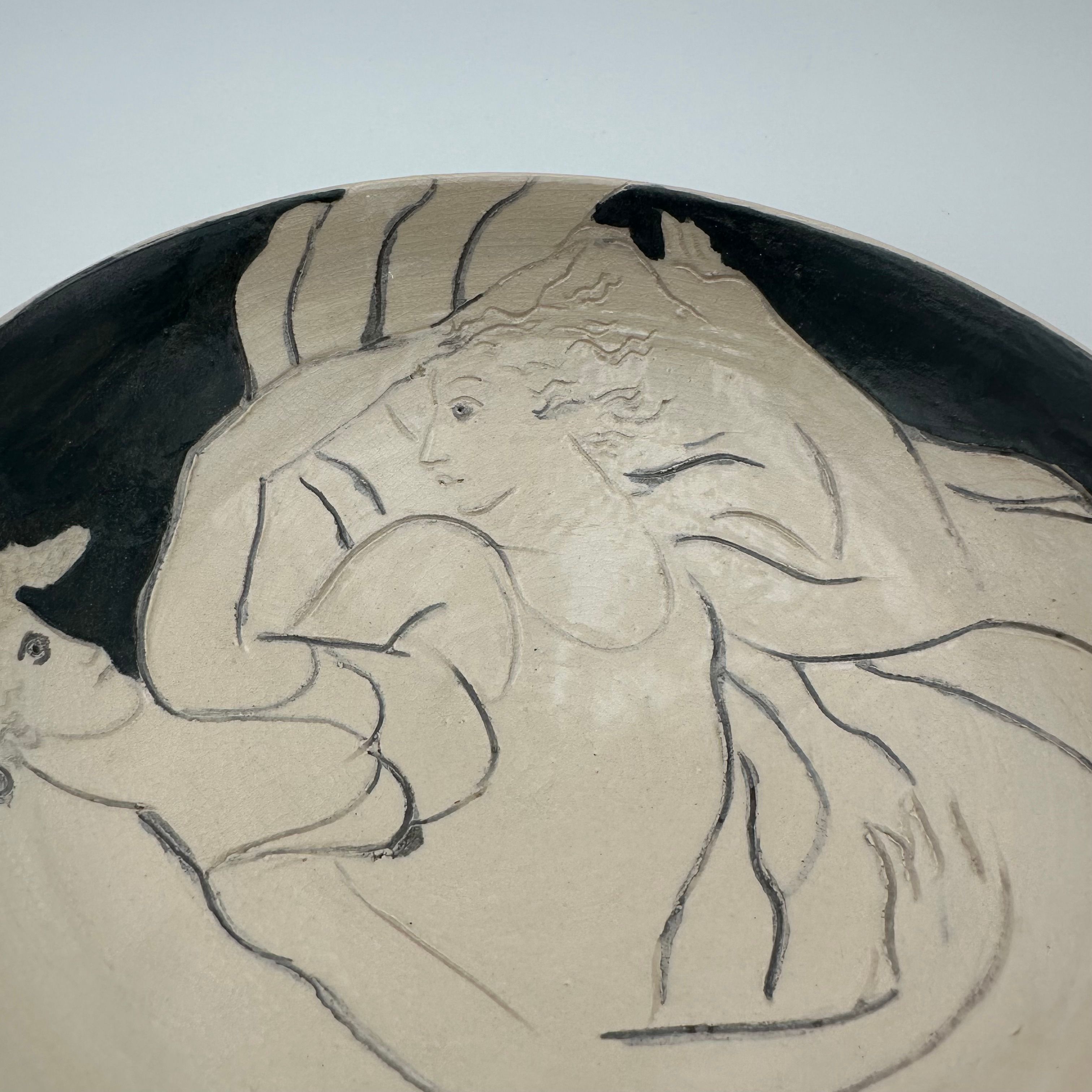 Ceramic bowl decorated with two female figures – Signed, circa 1970