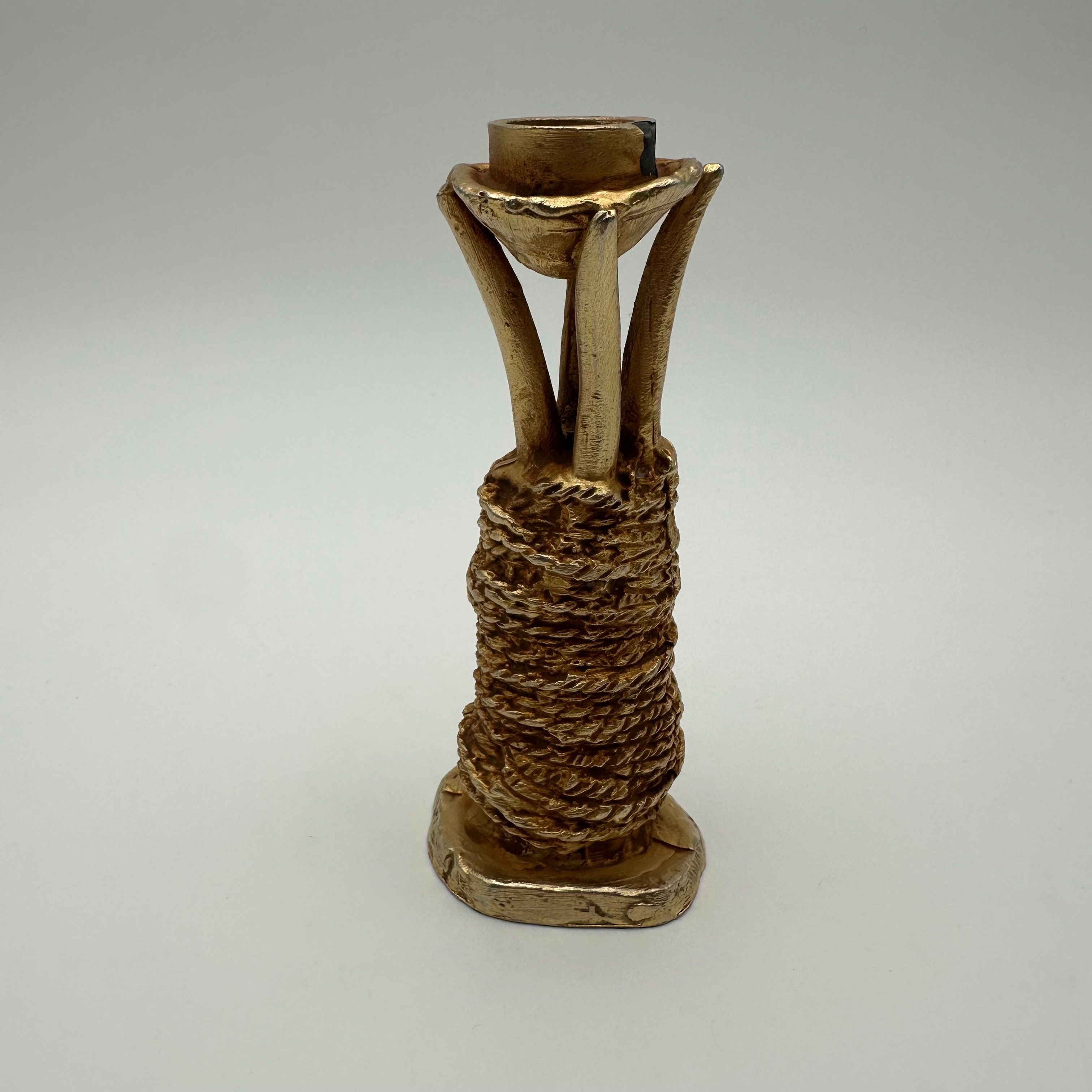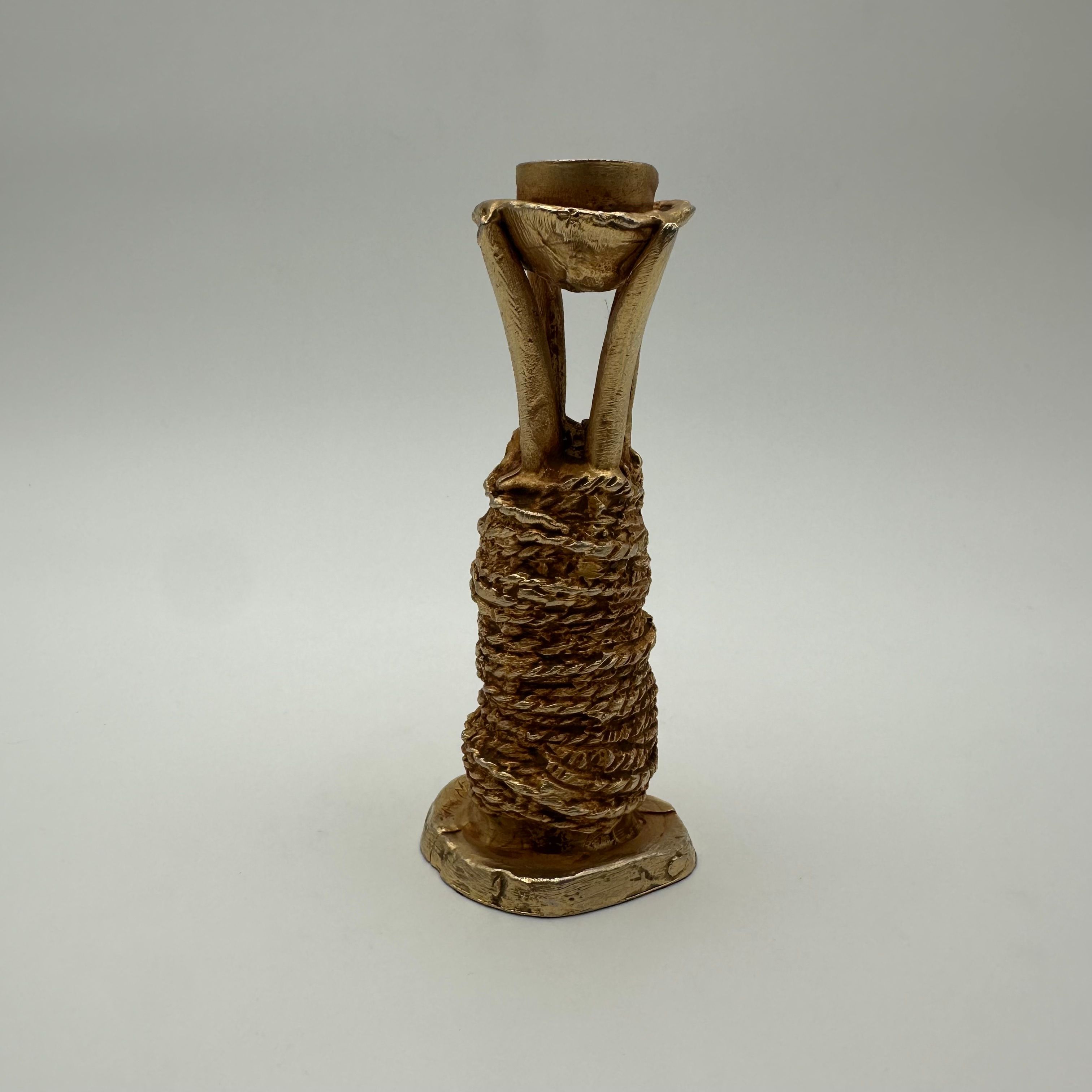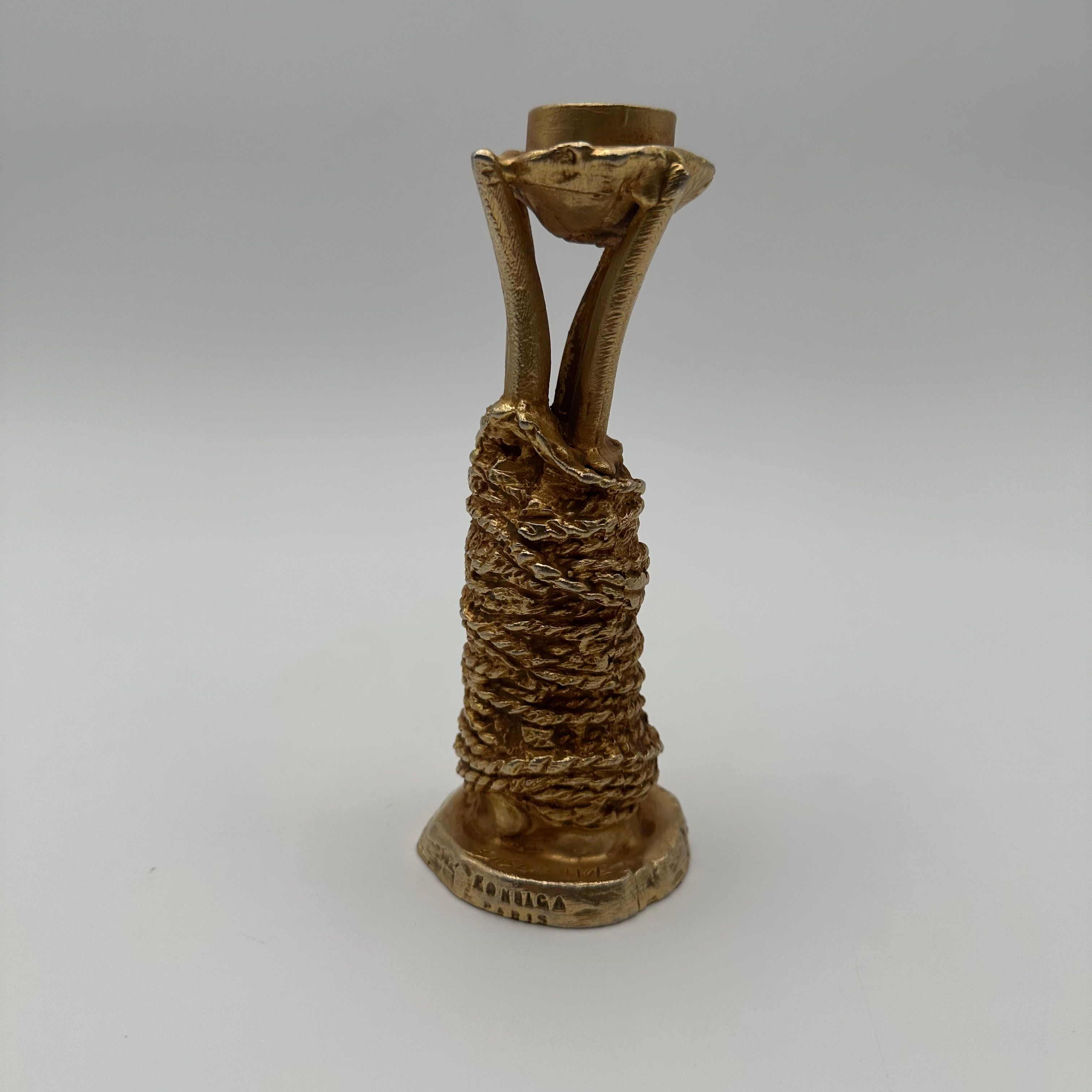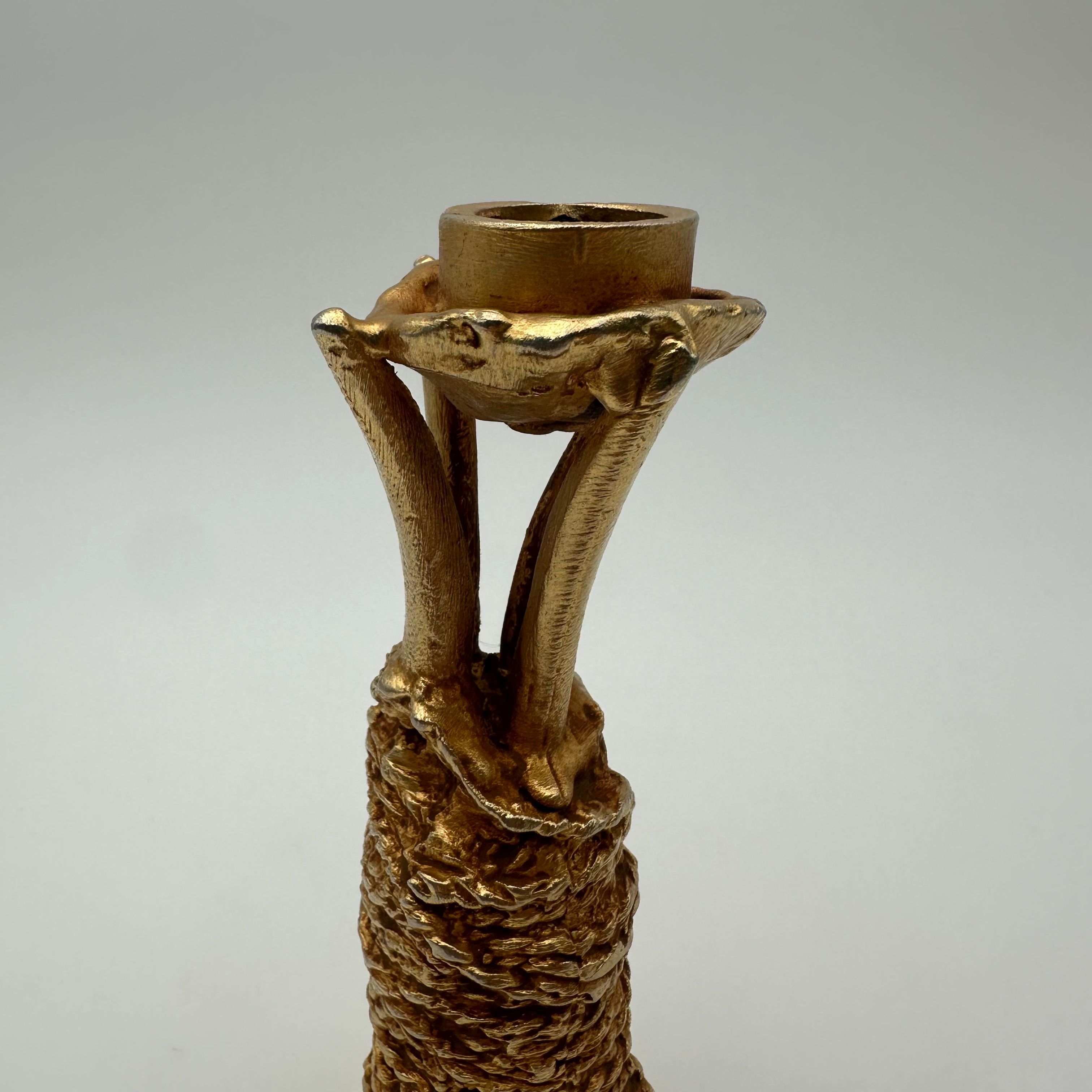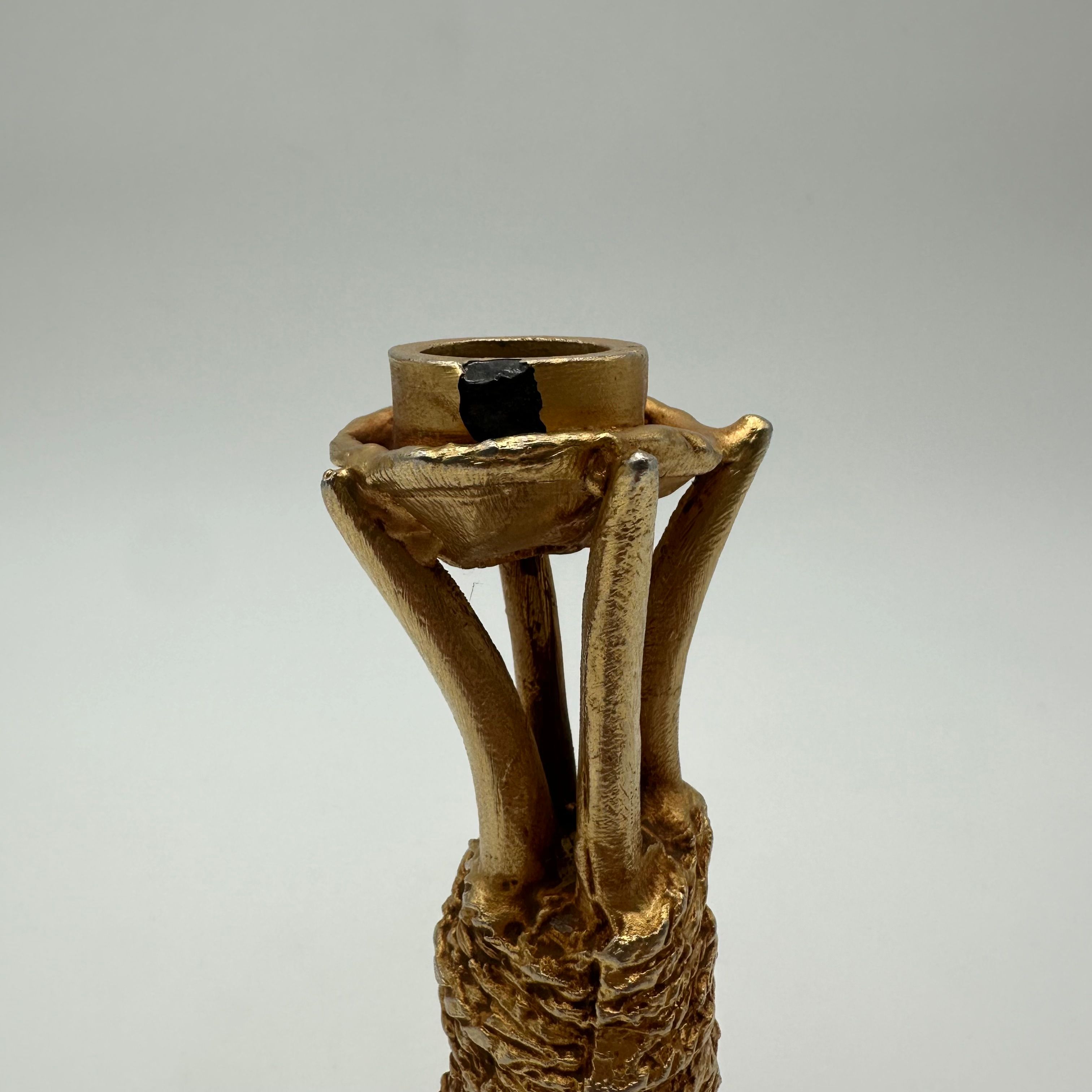 Sculptural gilt aluminum candlestick designed by Pierre Casenove for Fondica, signed. Conceived as a true piece of sculpture, it stands out for its organic forms and raw texture, characteristic of Casenove’s distinctive work.