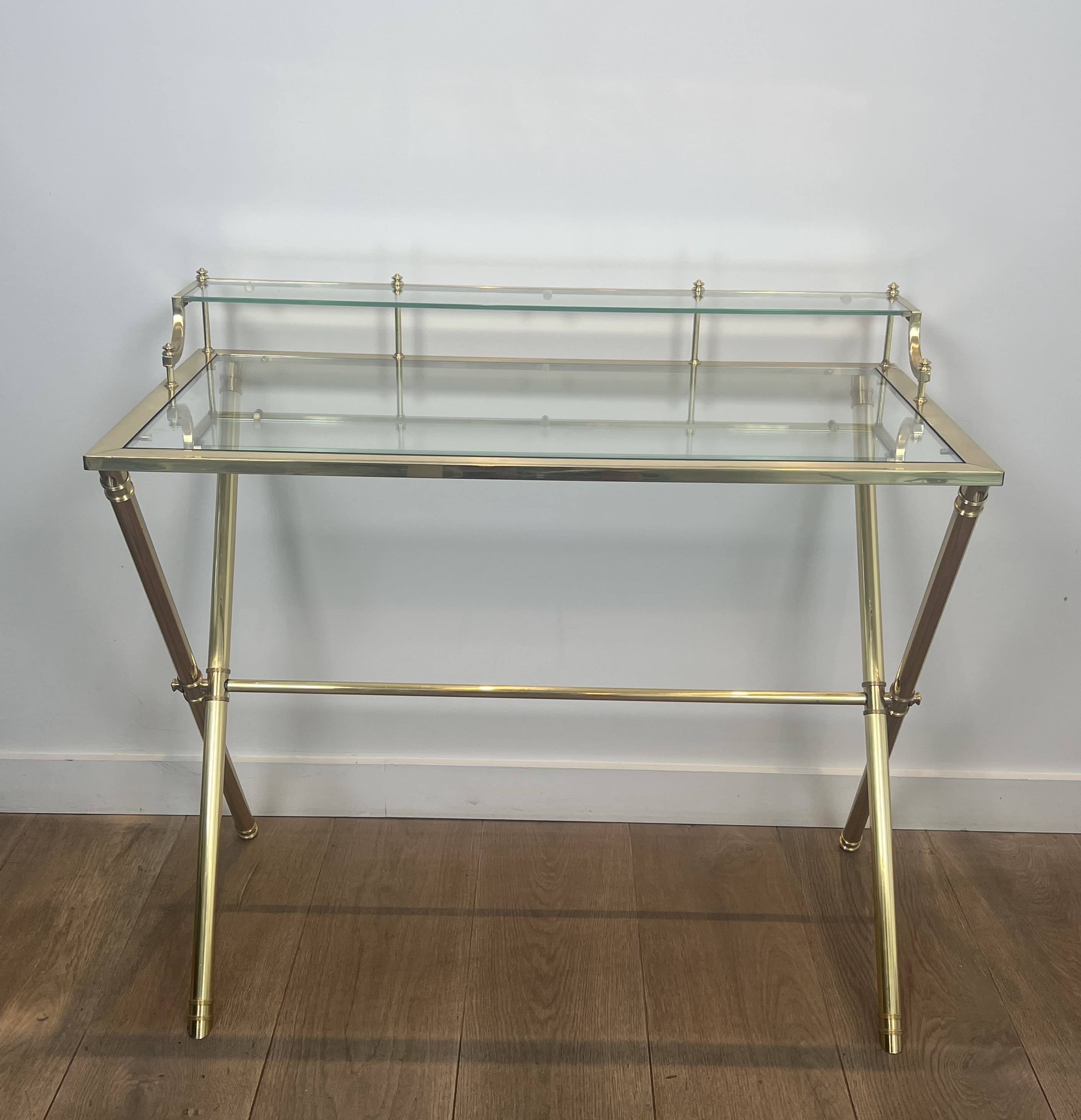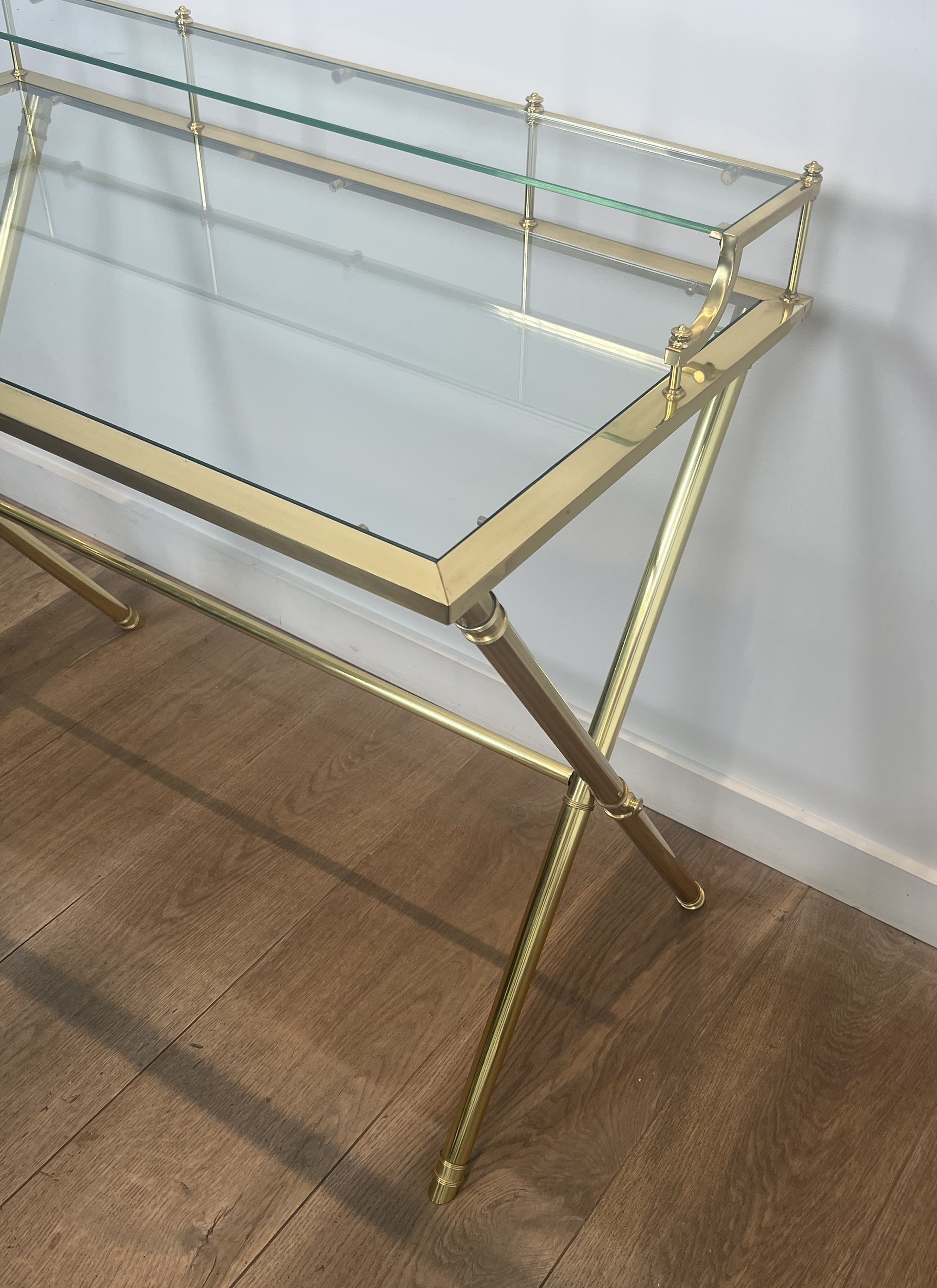 Neoclassical Style Brass and Glass Gradin Desk, Attributed to Maison Jansen, 1940s