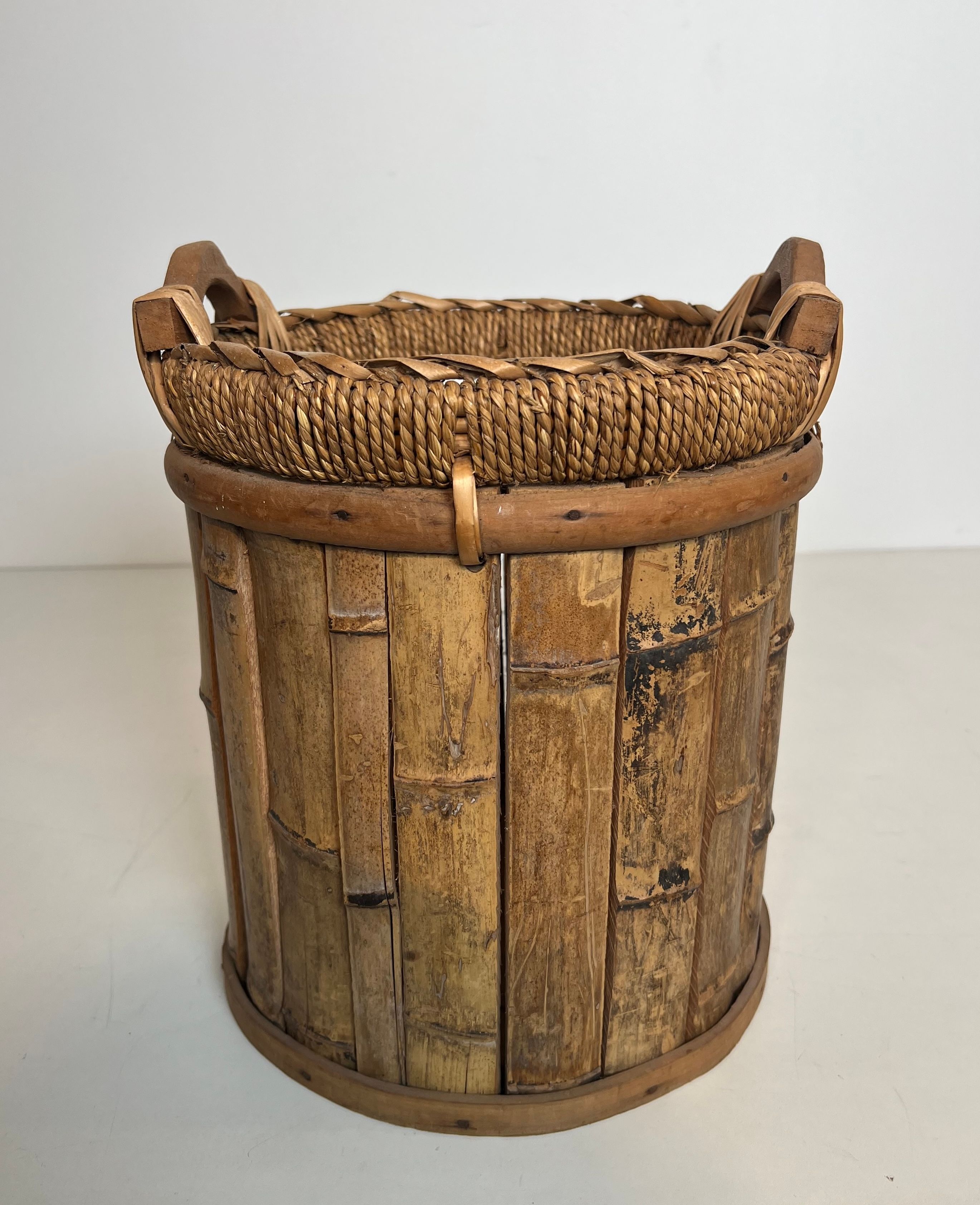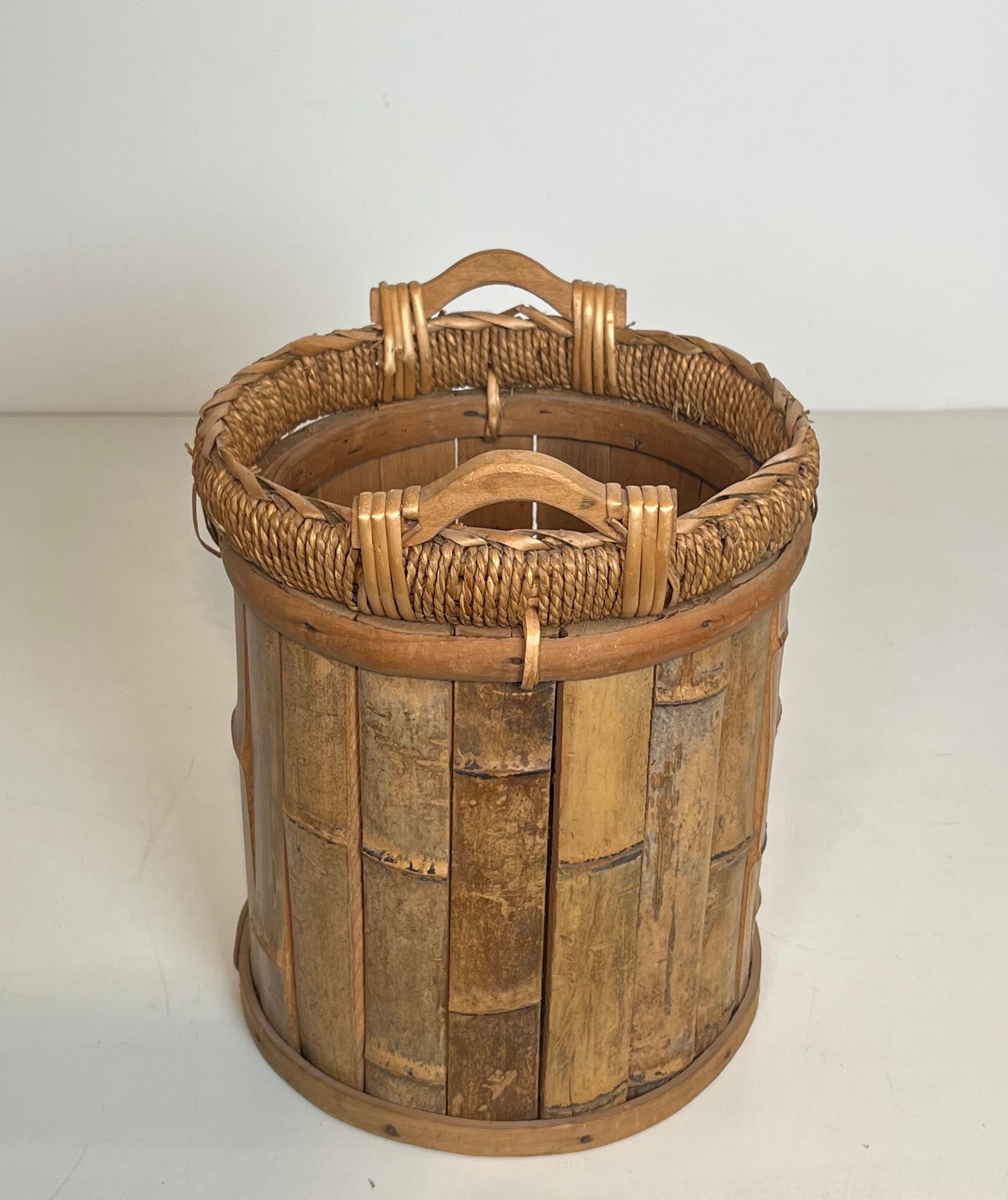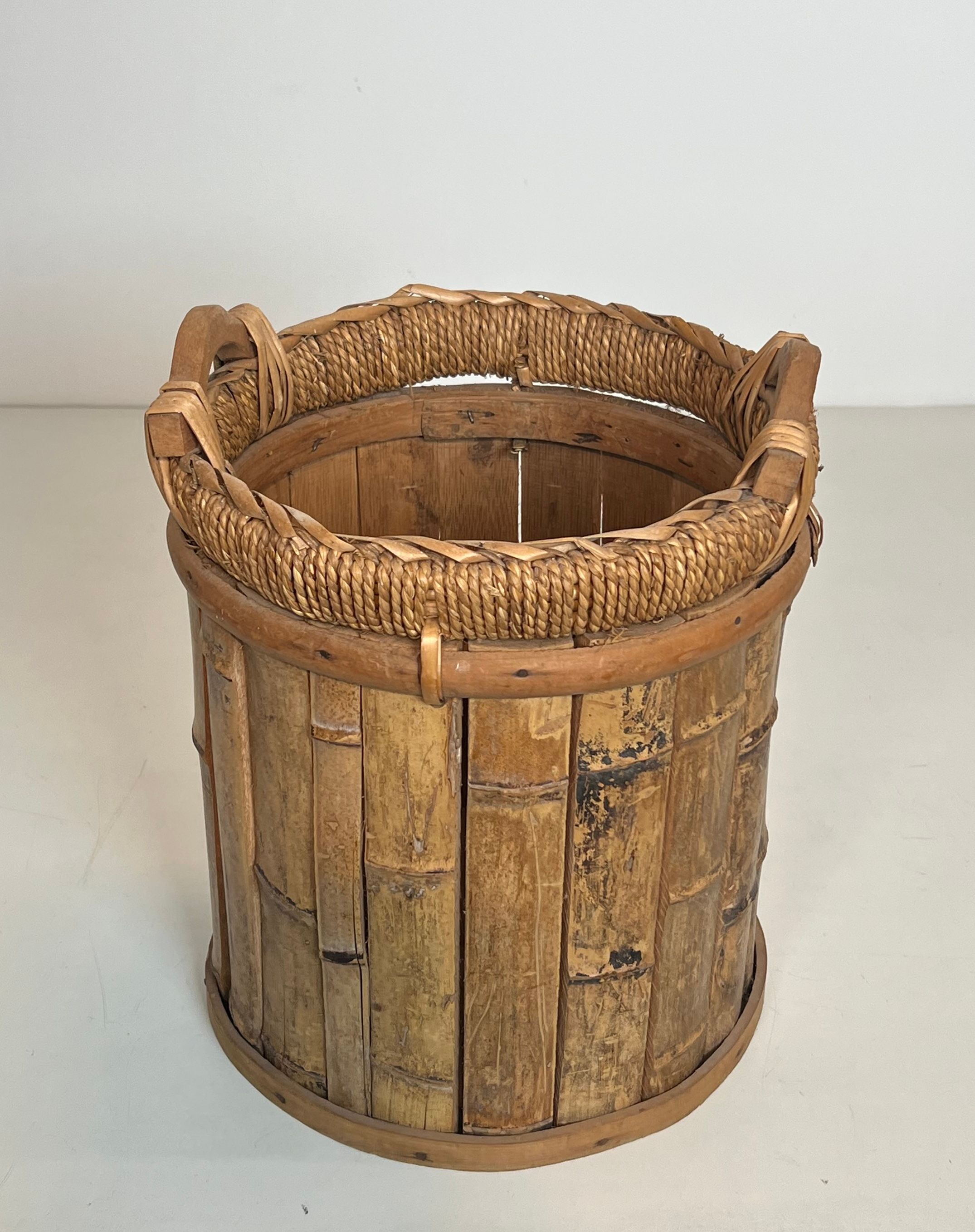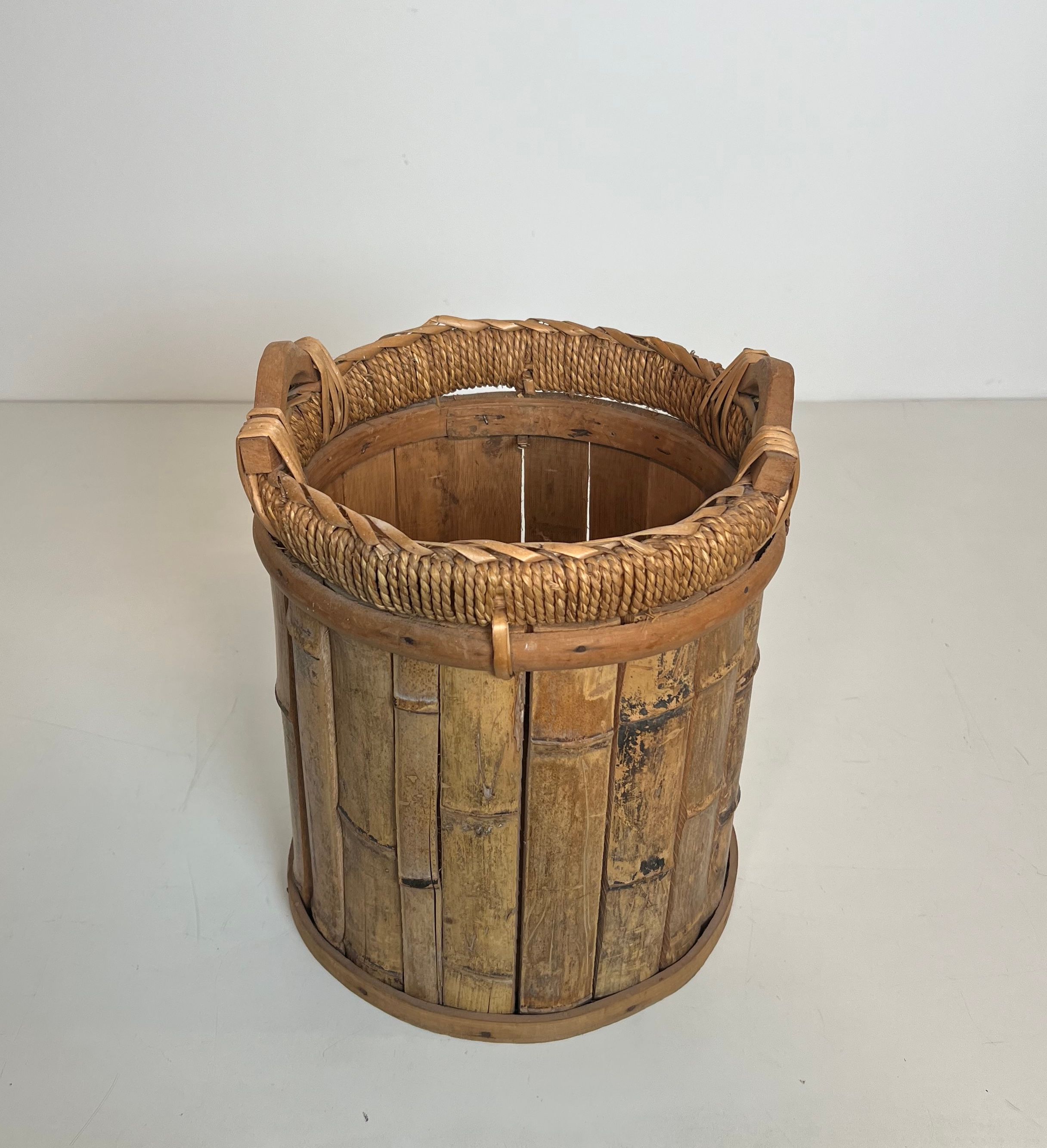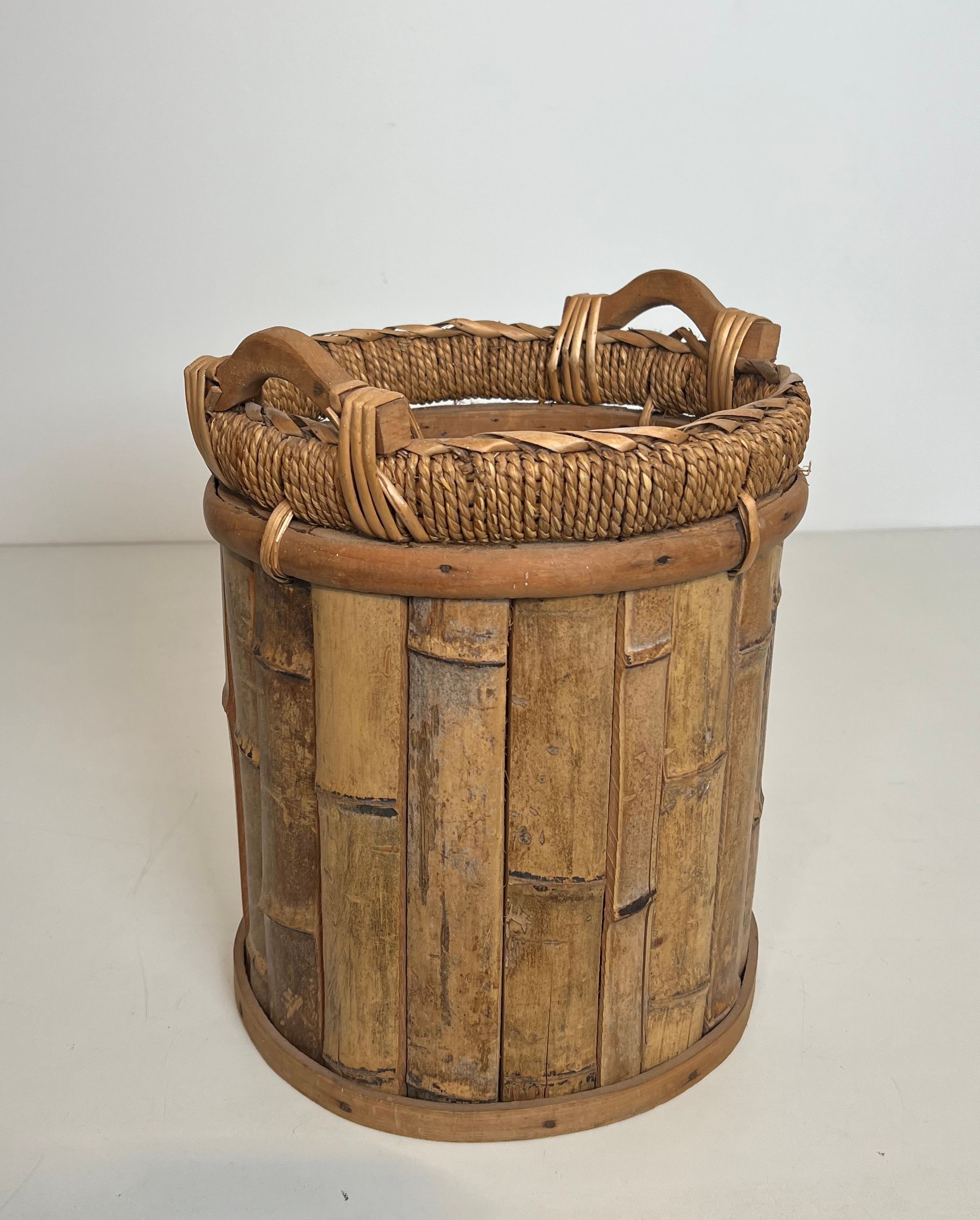Rattan and Brass WastebasketRattan and brass wastebasket. French work. Circa 1970Request priceDimensionsWidth11.22 inch28.5 cmDepth11.22 inch28.5 cmHeight13.78 inch35 cmInformationProduct code50's-63395