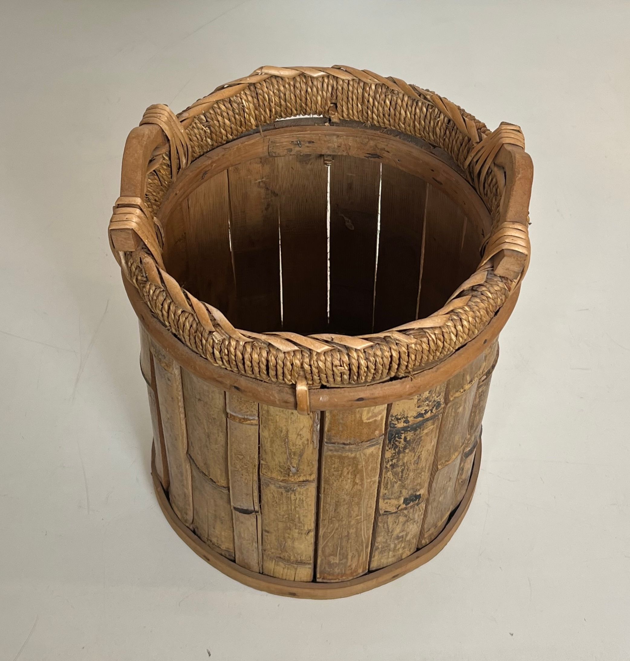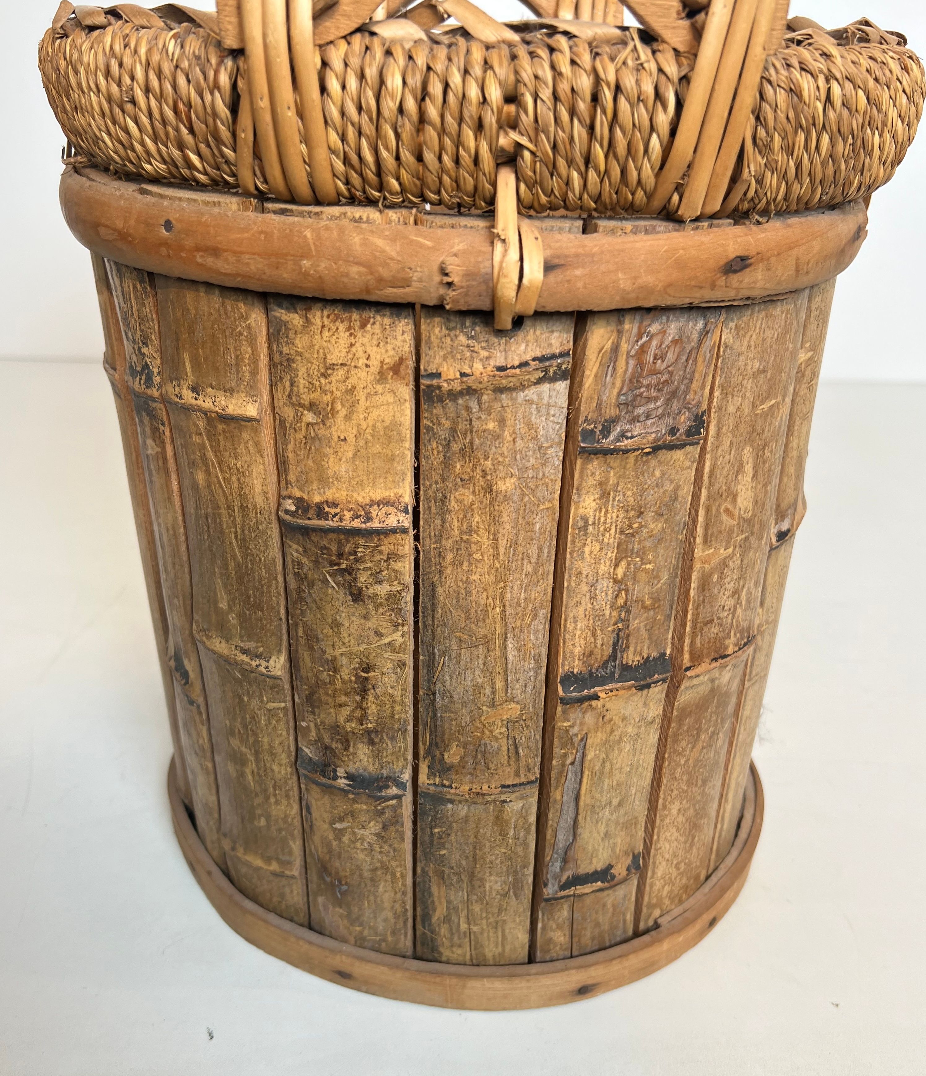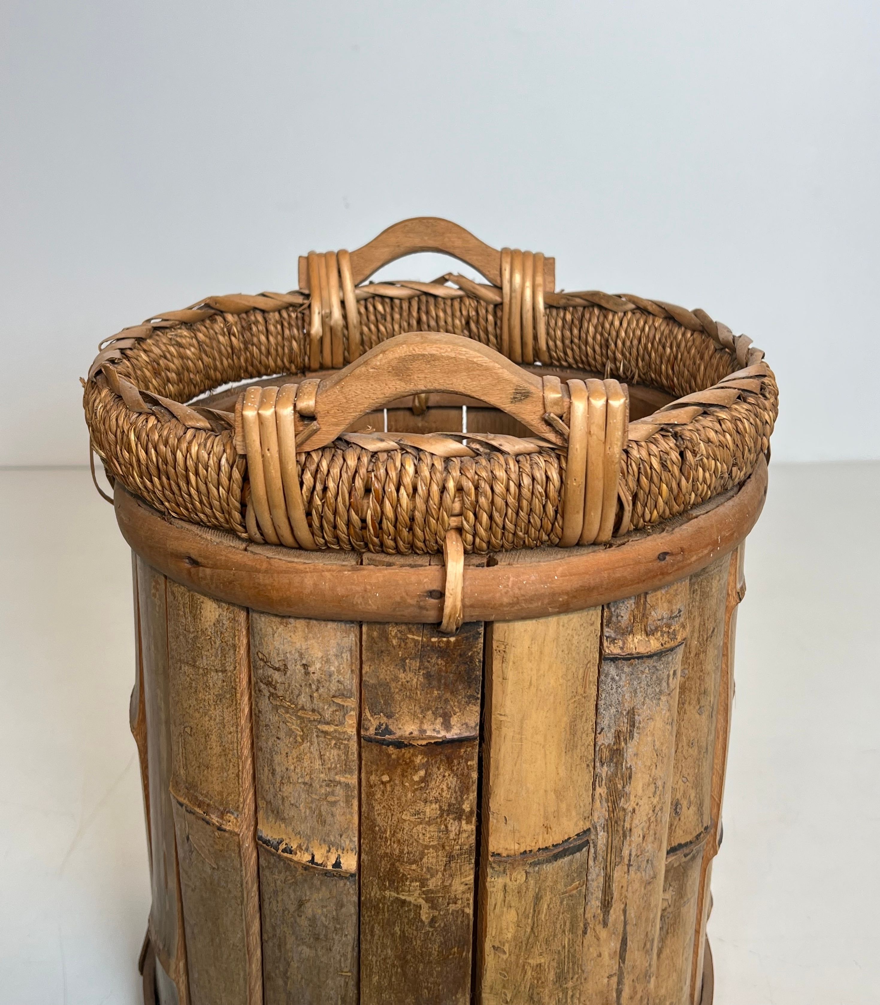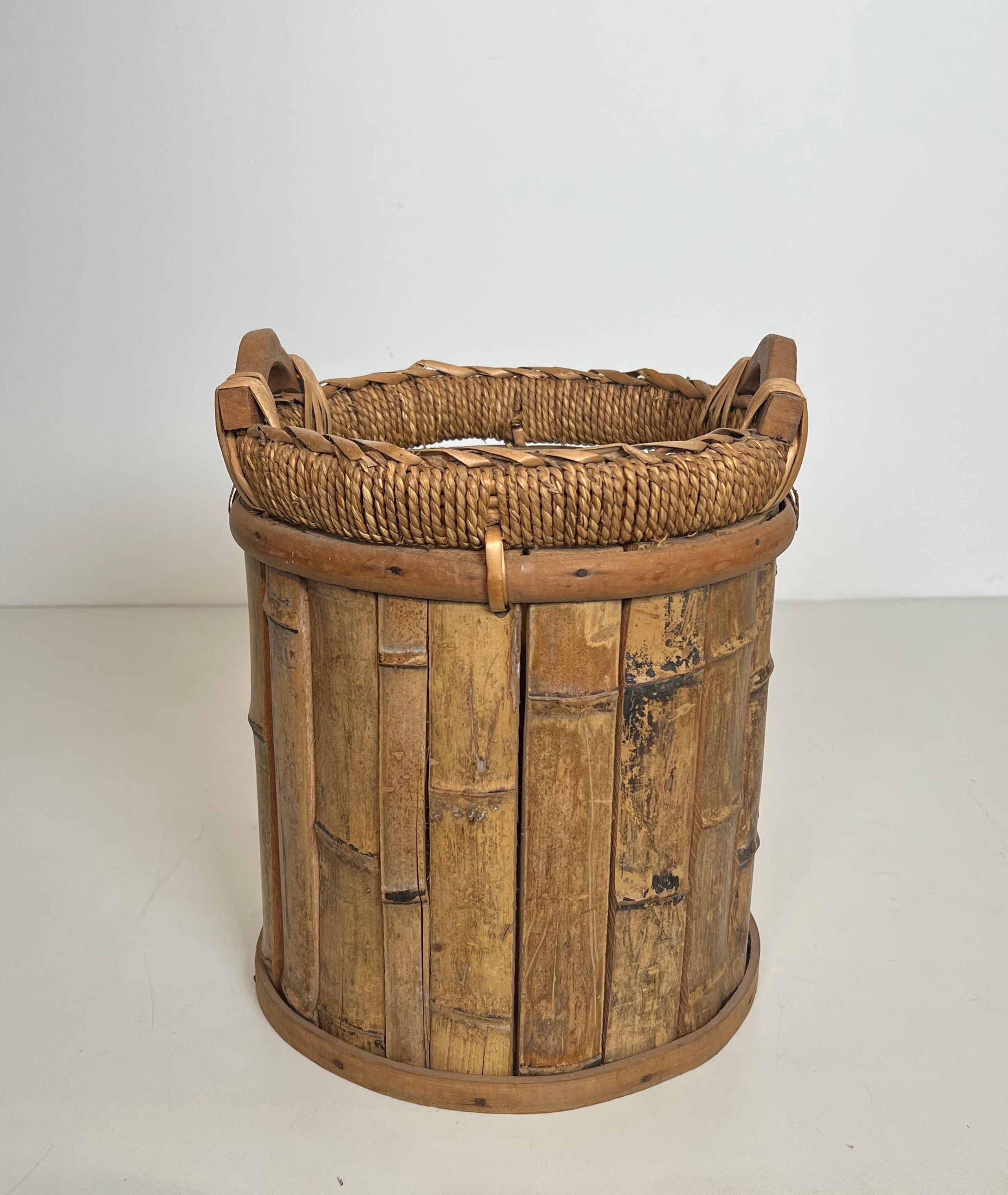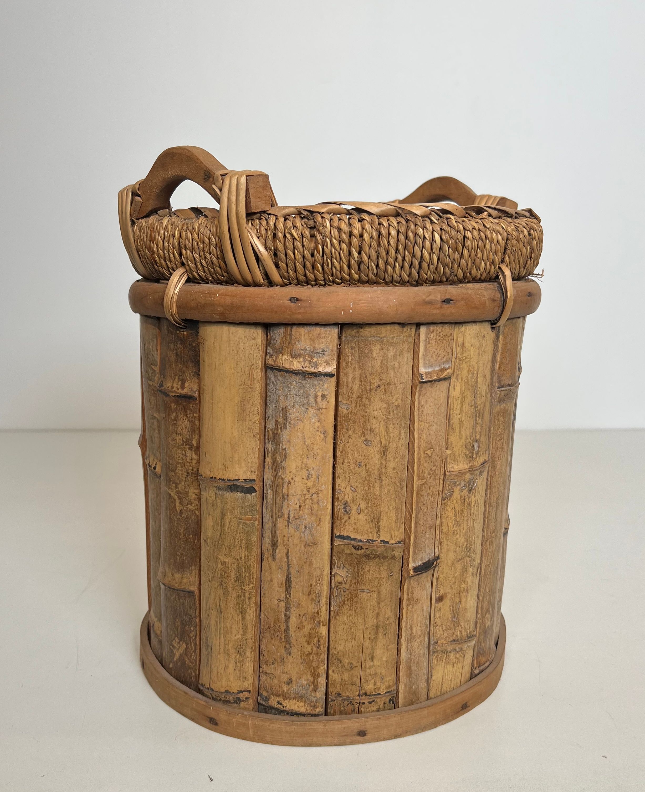 Rattan and Brass WastebasketRattan and brass wastebasket. French work. Circa 1970Request priceDimensionsWidth11.22 inch28.5 cmDepth11.22 inch28.5 cmHeight13.78 inch35 cmInformationProduct code50's-63395
