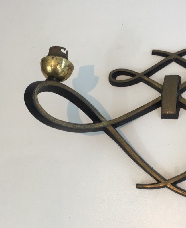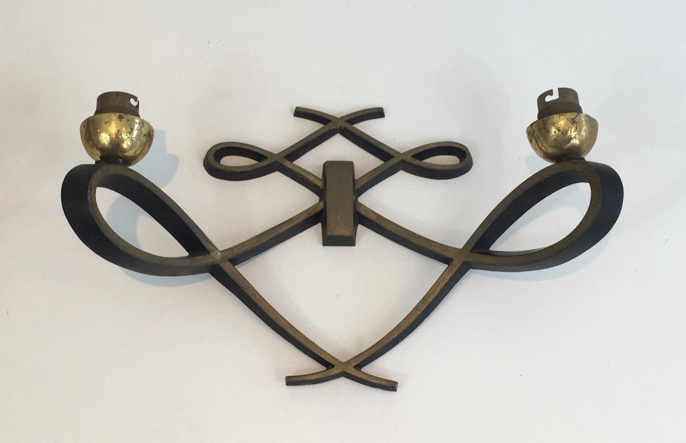 In the style of Jules LeleuIn the style of Jules Leleu. Pair of Black Lacquered and Brass Design Wall Sconces. Circa 1950Request priceDimensionsWidth12.2 inch31 cmDepth7.28 inch18.5 cmHeight3.74 inch9.5 cmInformationProduct code50's-31508