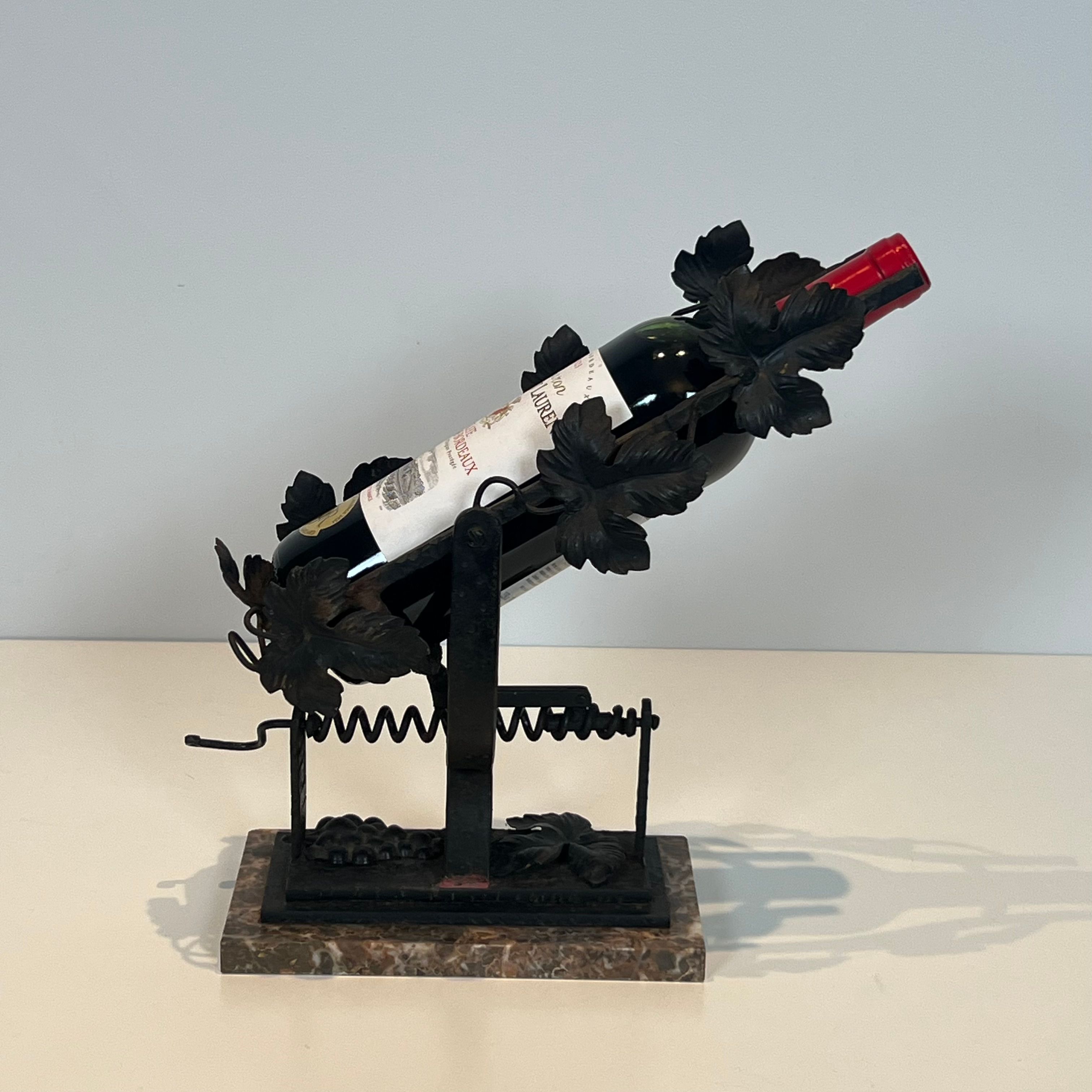 Wrought Iron Decanter with Vine Leaves Decoration on a Marble Base