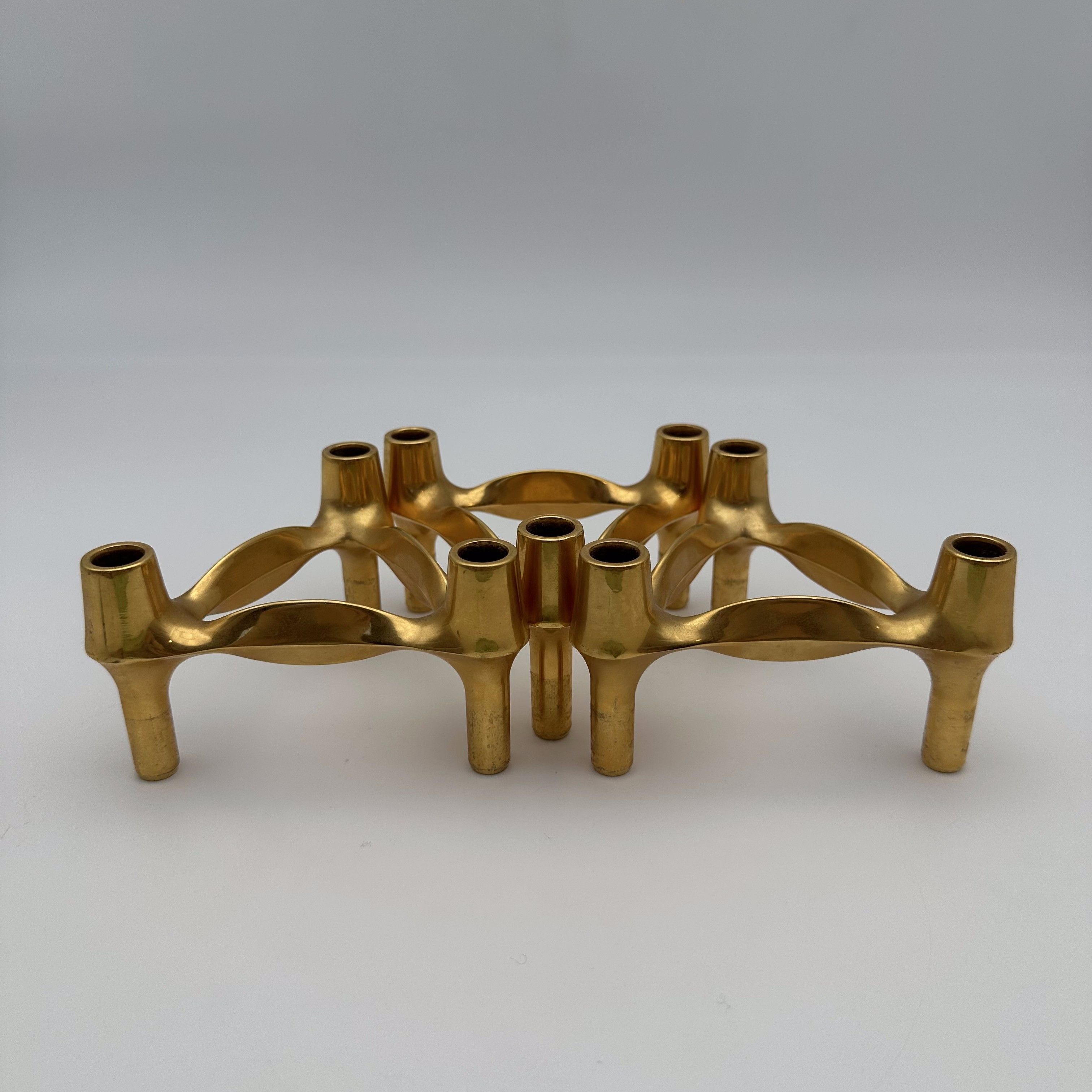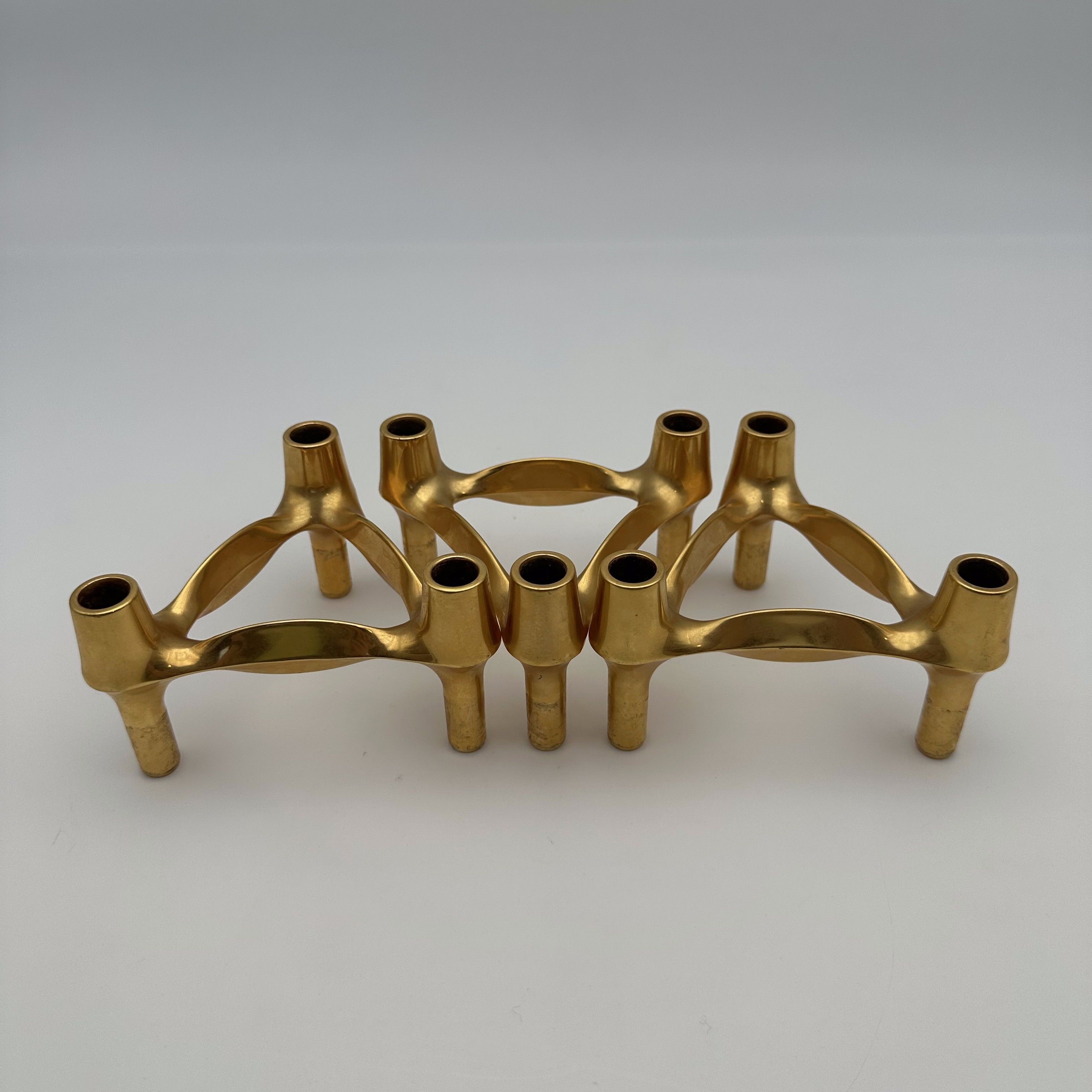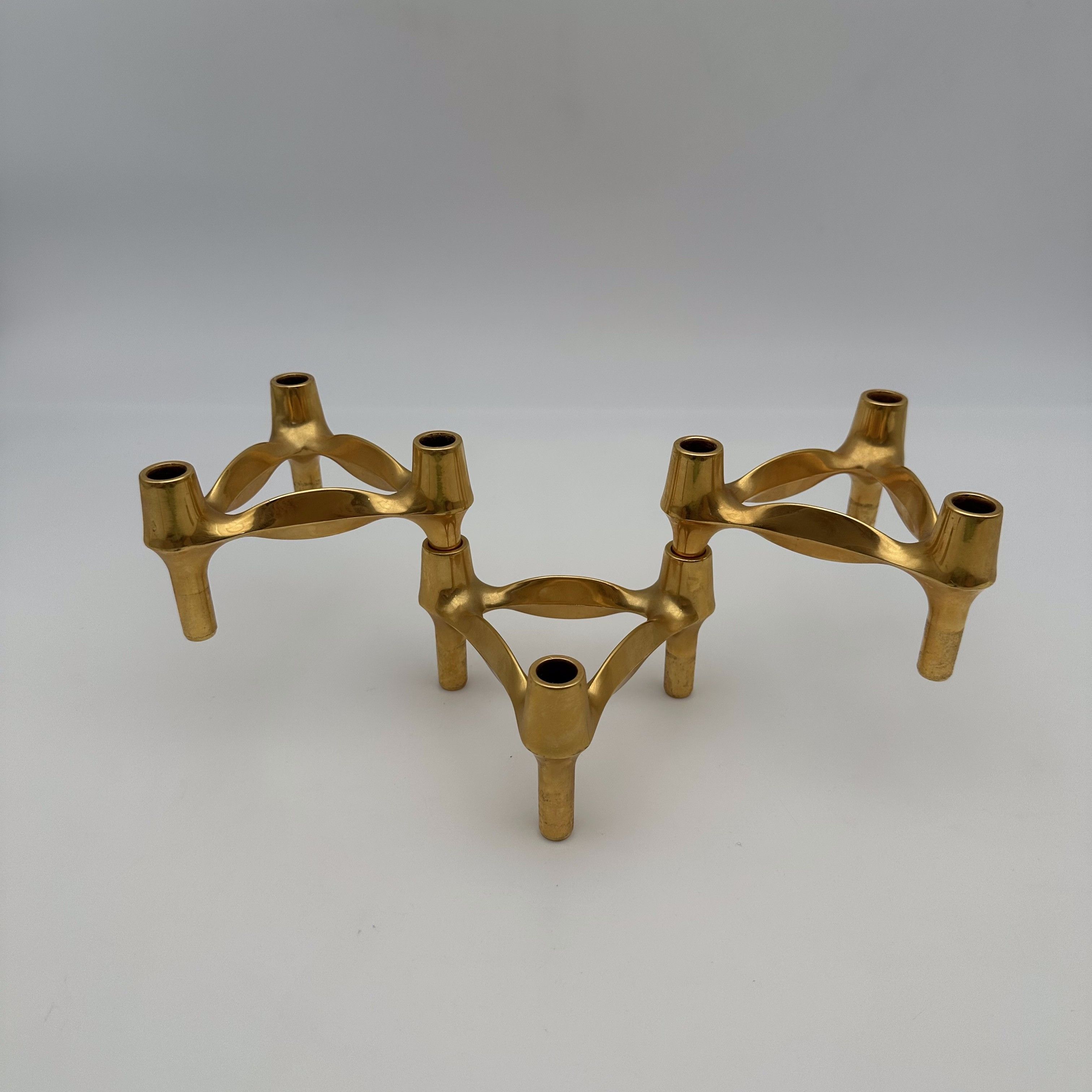 Rare Set of 3 Gold-Tone BMF Quist 'Variomaster' Modular Candle Holders, 1970s