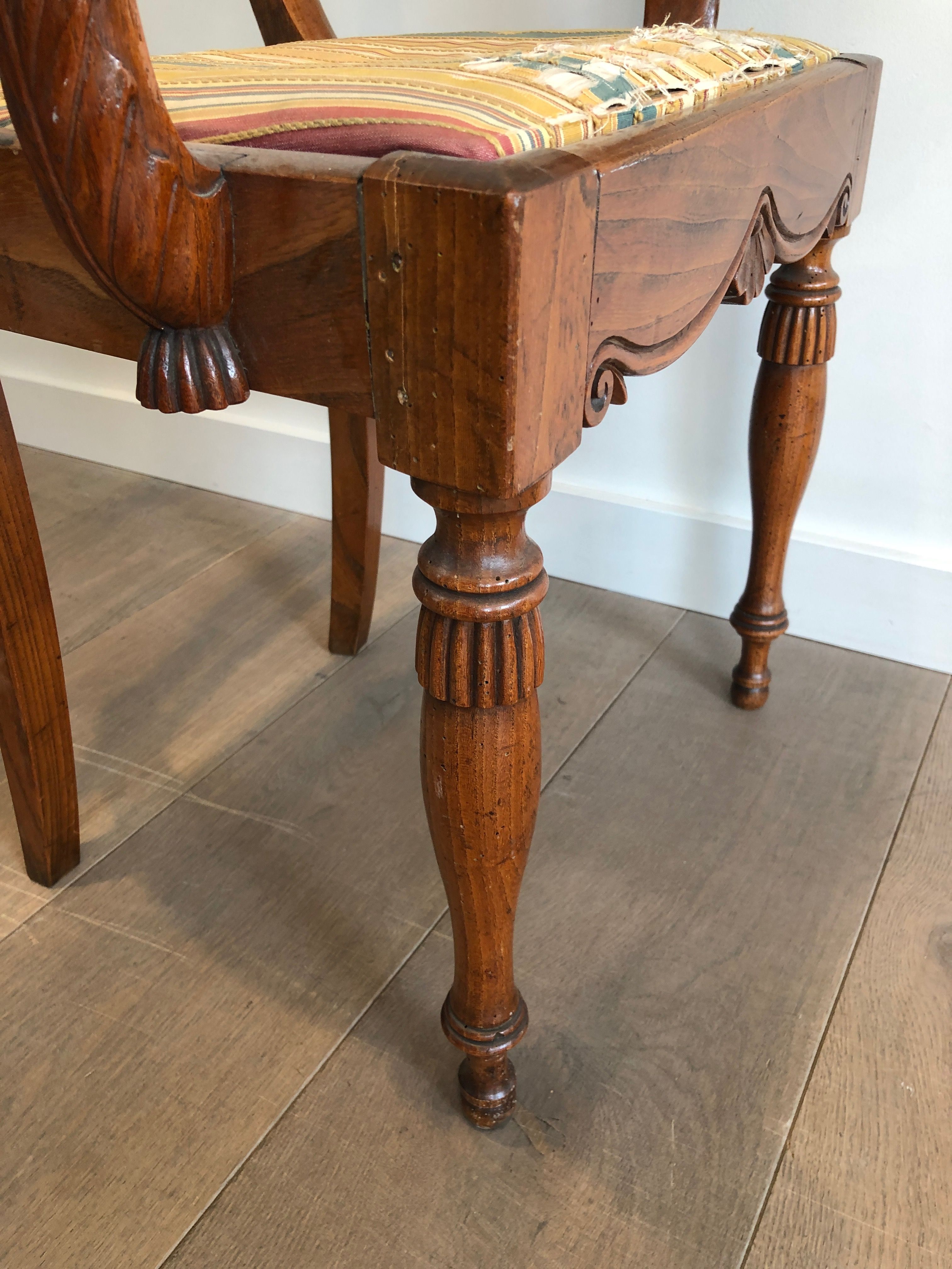 Mahogany office armchair with swan neck decorations. English work from the Regency Period. Circa 1830