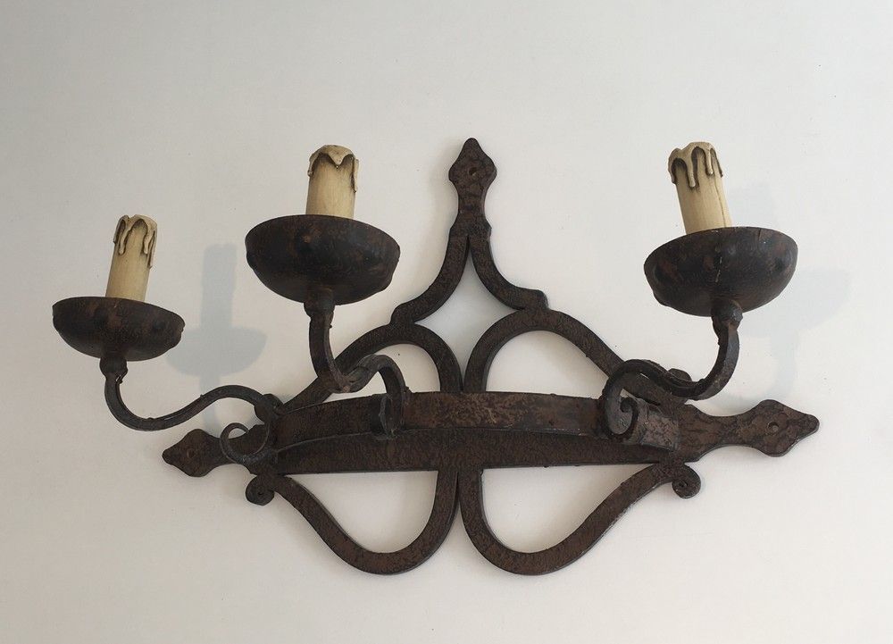 Large Wrought Iron Wall SconceLarge Wrought Iron Wall Sconce. French. Circa 1950Request priceDimensionsWidth20.08 inch51 cmDepth11.42 inch29 cmHeight13.98 inch35.5 cmInformationProduct codeIS-1154