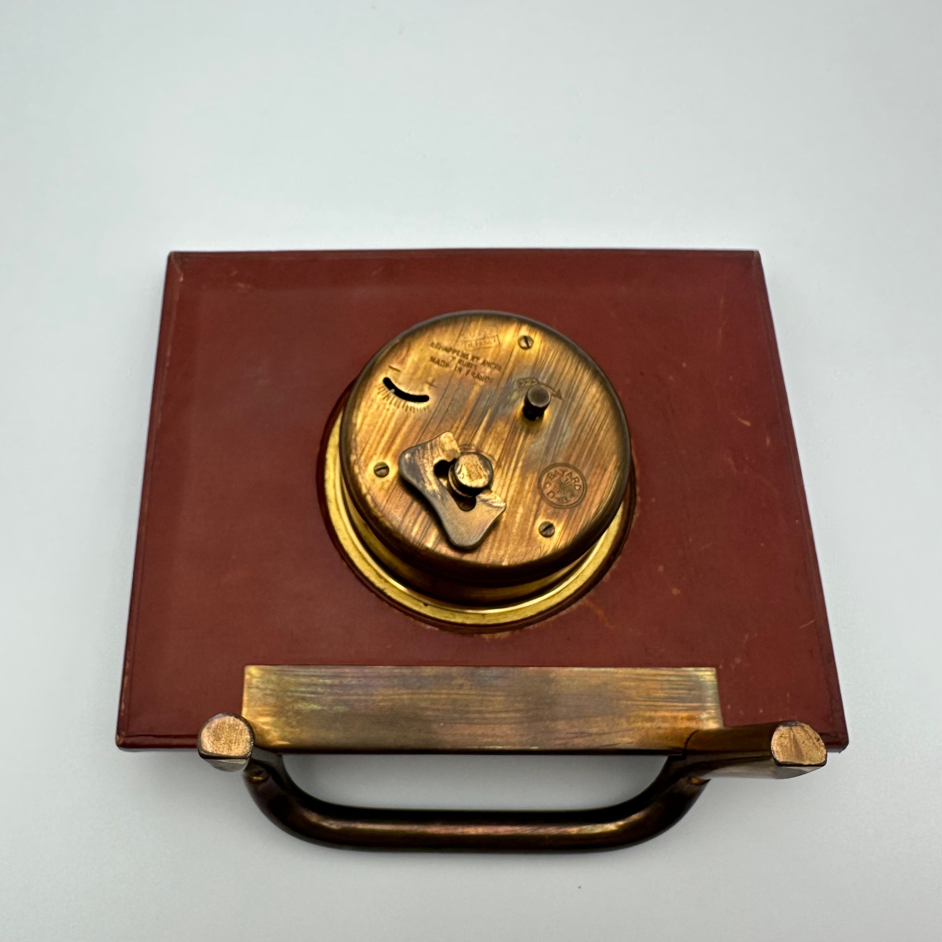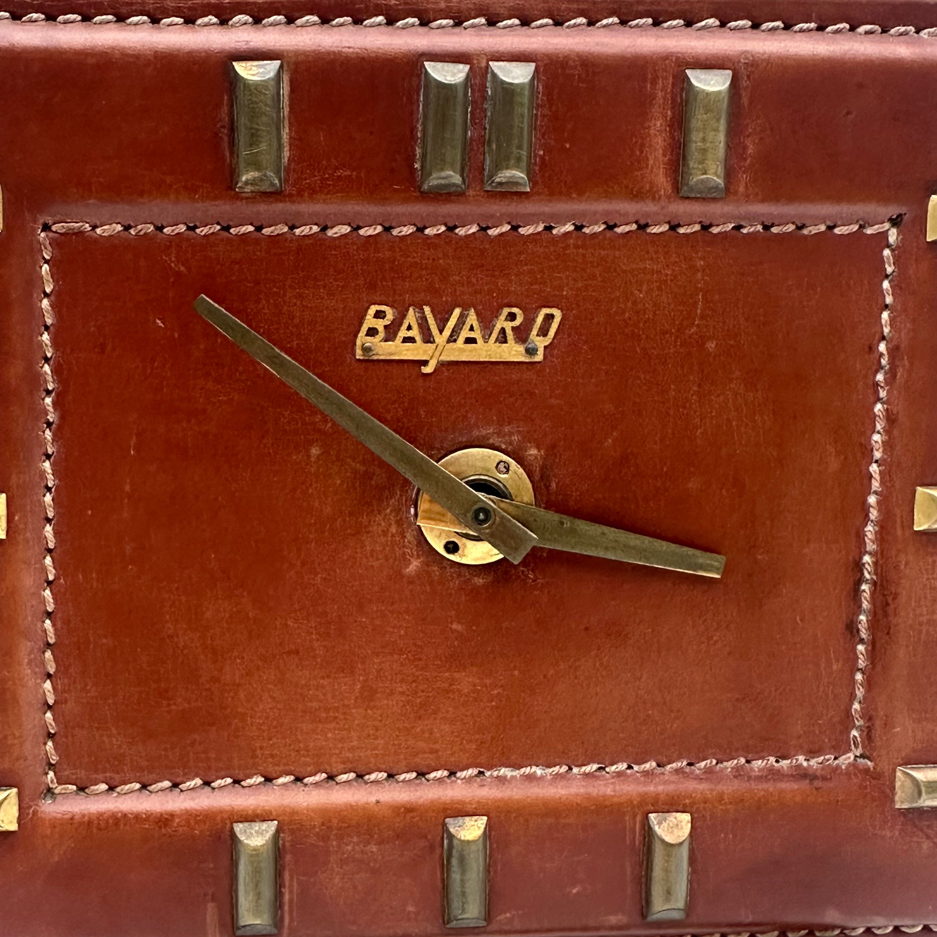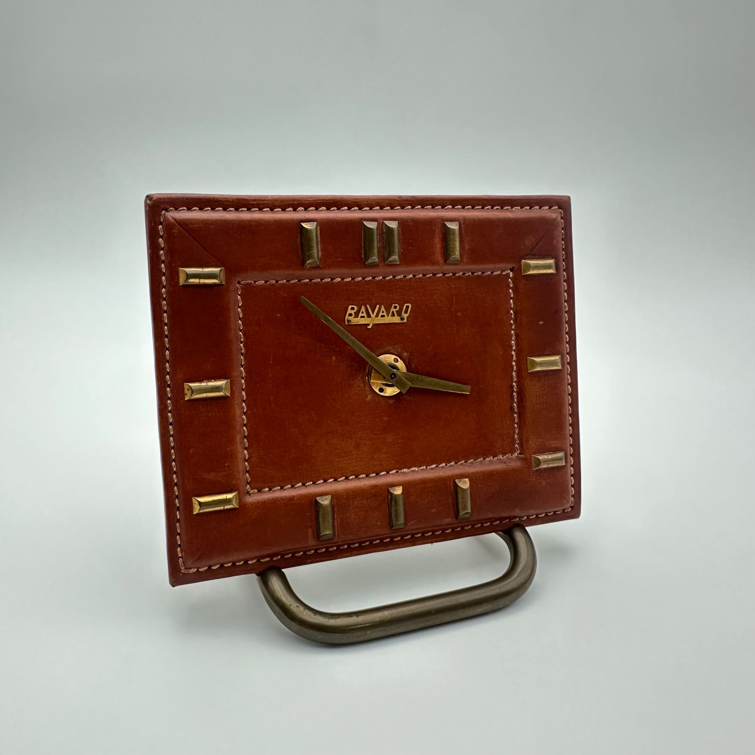 Bayard desk clock in leather and brass – France, 1953