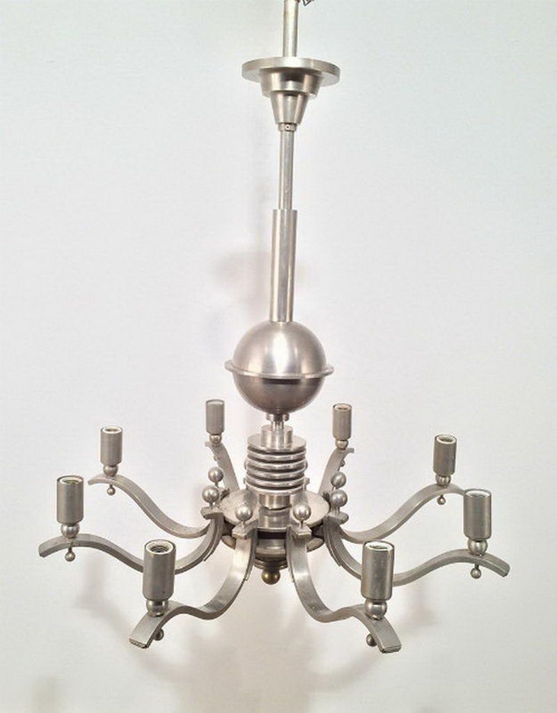 Large Art Deco Silvered Bronze ChandelierLarge deco silvered bronze chandelier. French work. Circa 1930Request priceDimensionsWidth33.86 inch86 cmDepth33.94 inch86.2 cmHeight45.28 inch115 cmInformationProduct codeAD-714