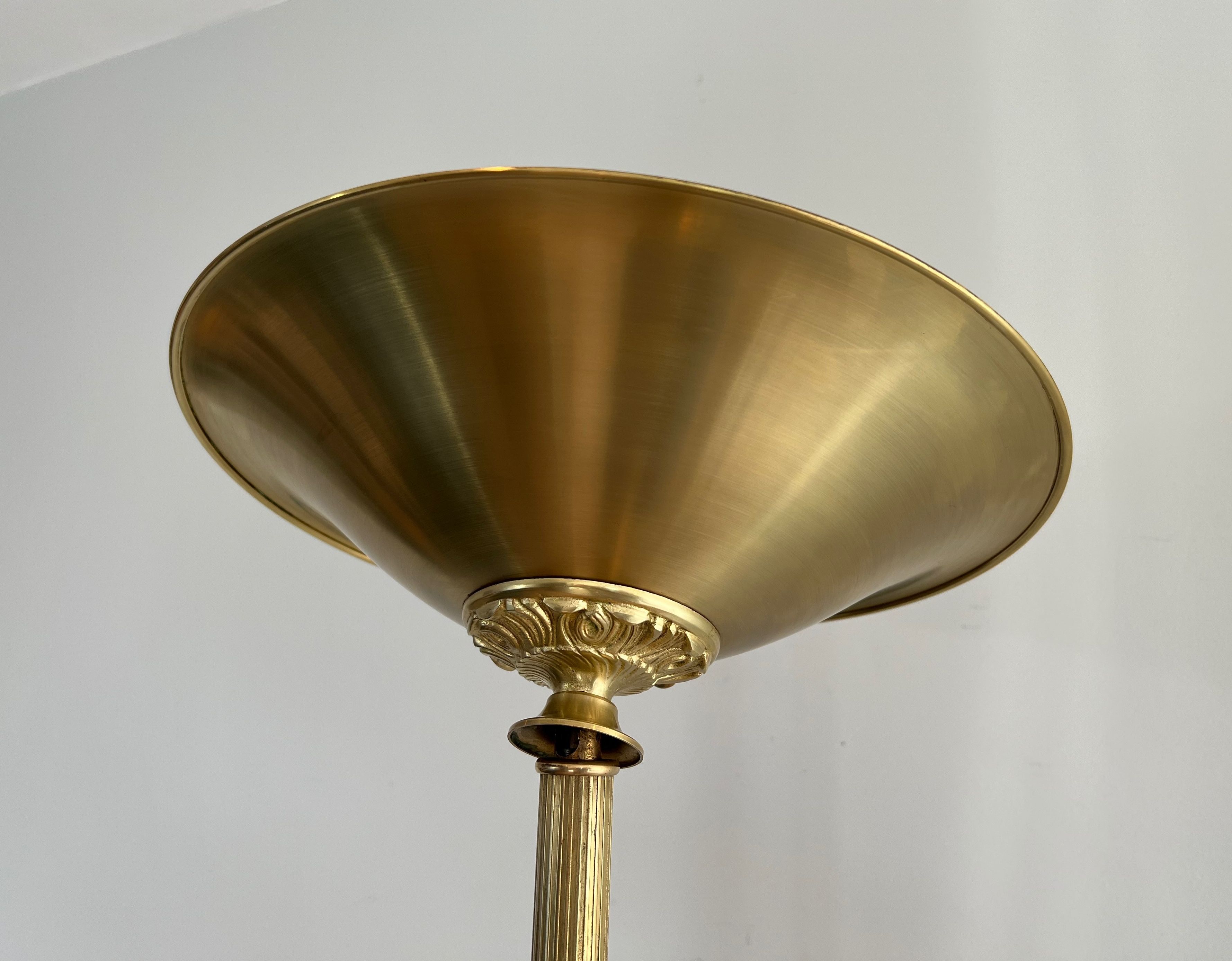Neoclassical style brass floor lamp with removable reflector. French work. Circa 1970