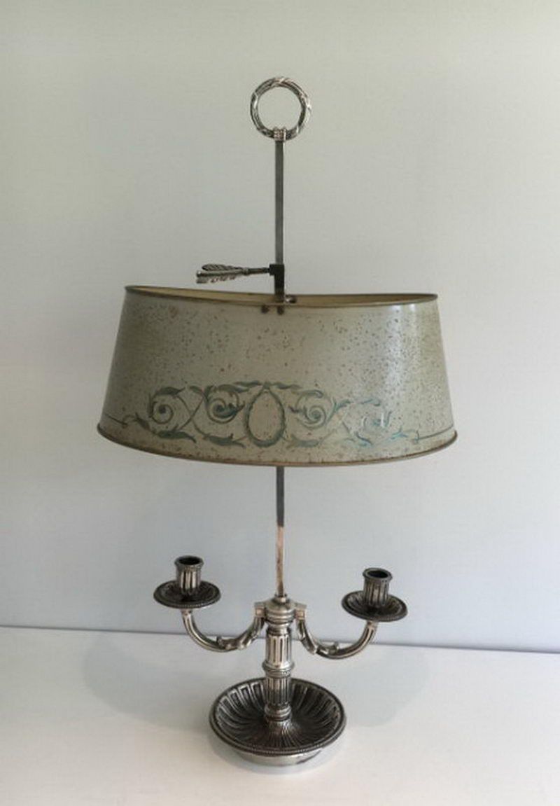 Louis the 16th style silver bouillotte lamp with painted tole shade