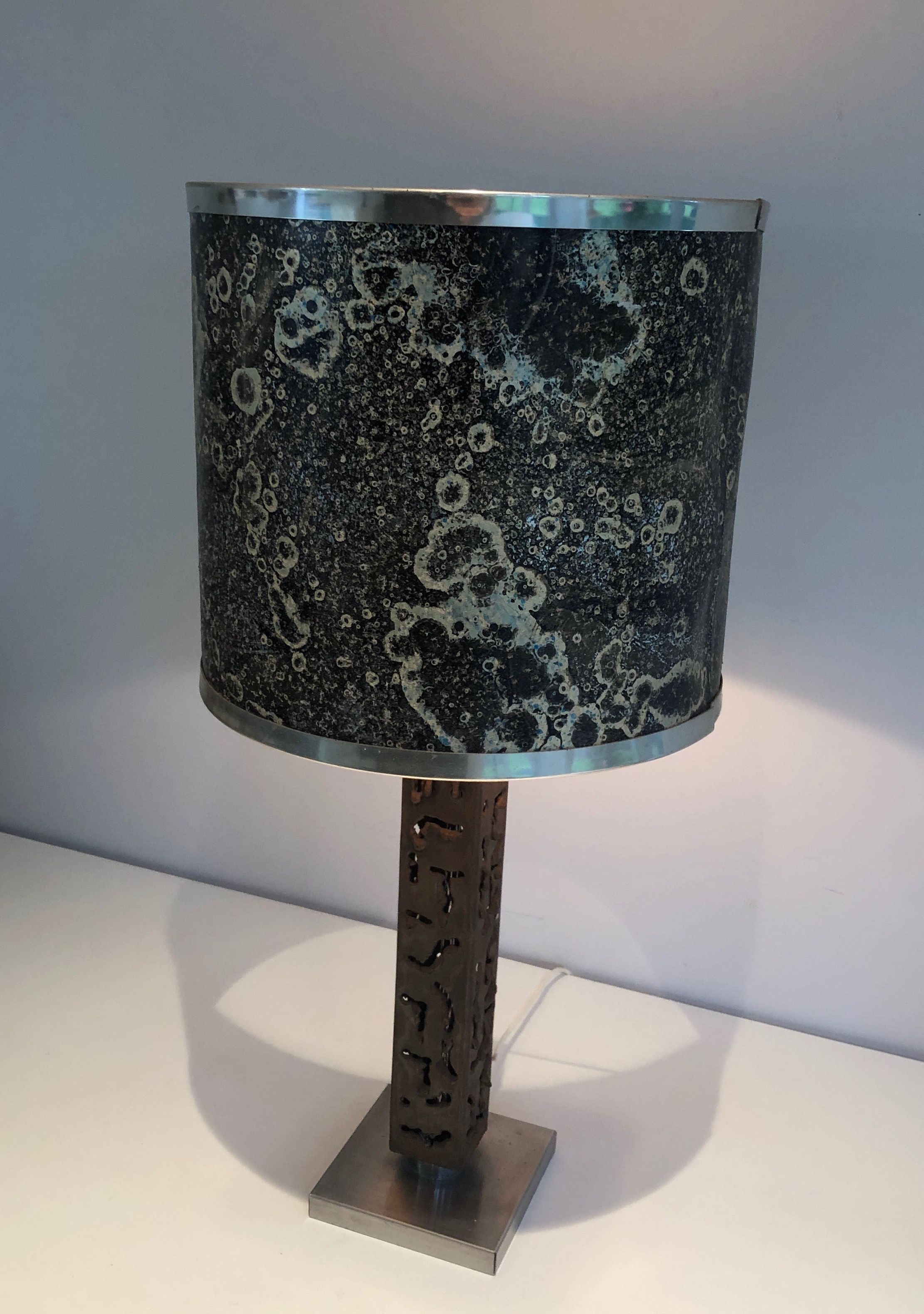 Worked Steel Design Table LampWorked steel design table lamp. French work. Circa 1970Request priceDimensionsWidth14.17 inch36 cmDepth14.17 inch36 cmHeight28.35 inch72 cmInformationProduct codeI-758