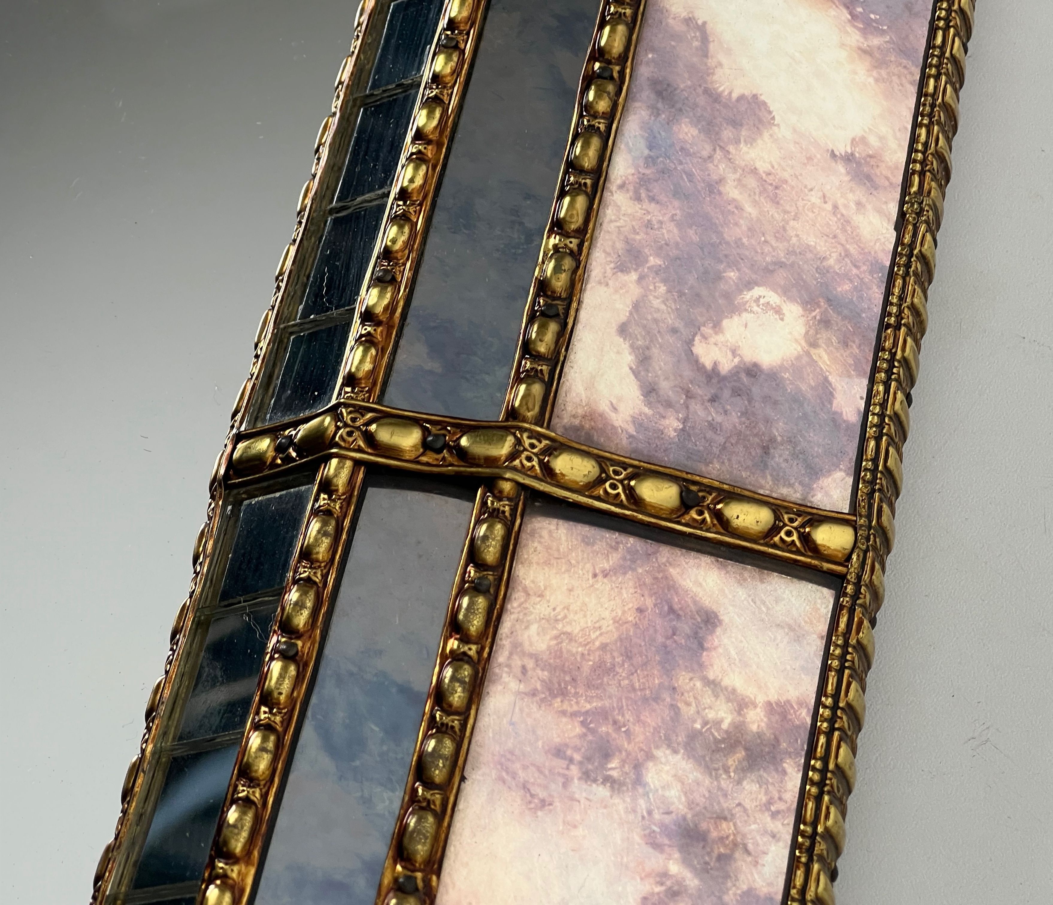 Large Multi-Facets Mirror with Brass GarlandsLarge Multi-Facets Mirror with Brass Garlands. French. Circa 1970Request priceDimensionsWidth62.99 inch160 cmDepth0.98 inch2.5 cmHeight36.42 inch92.5 cmInformationProduct code50's-57229