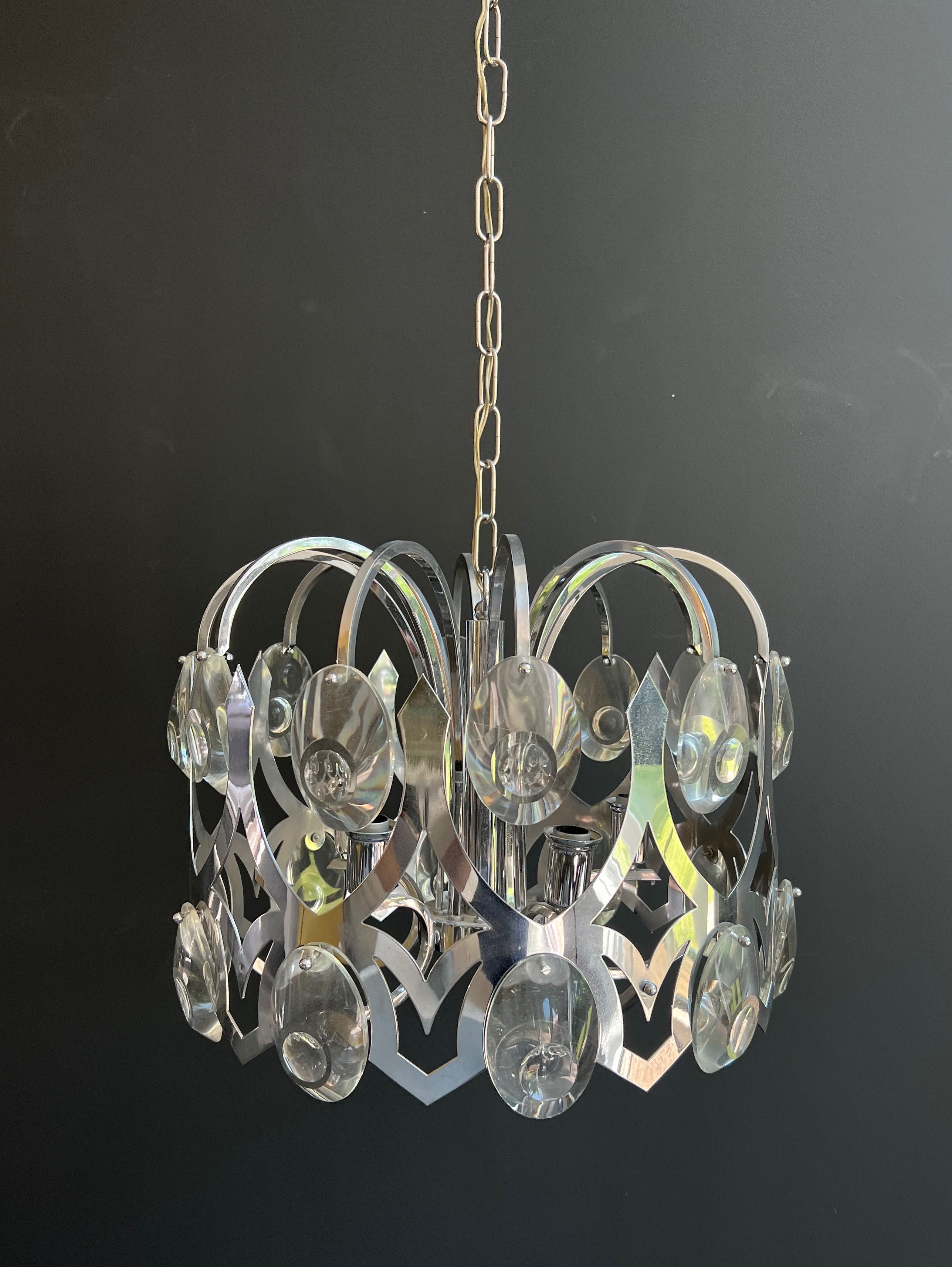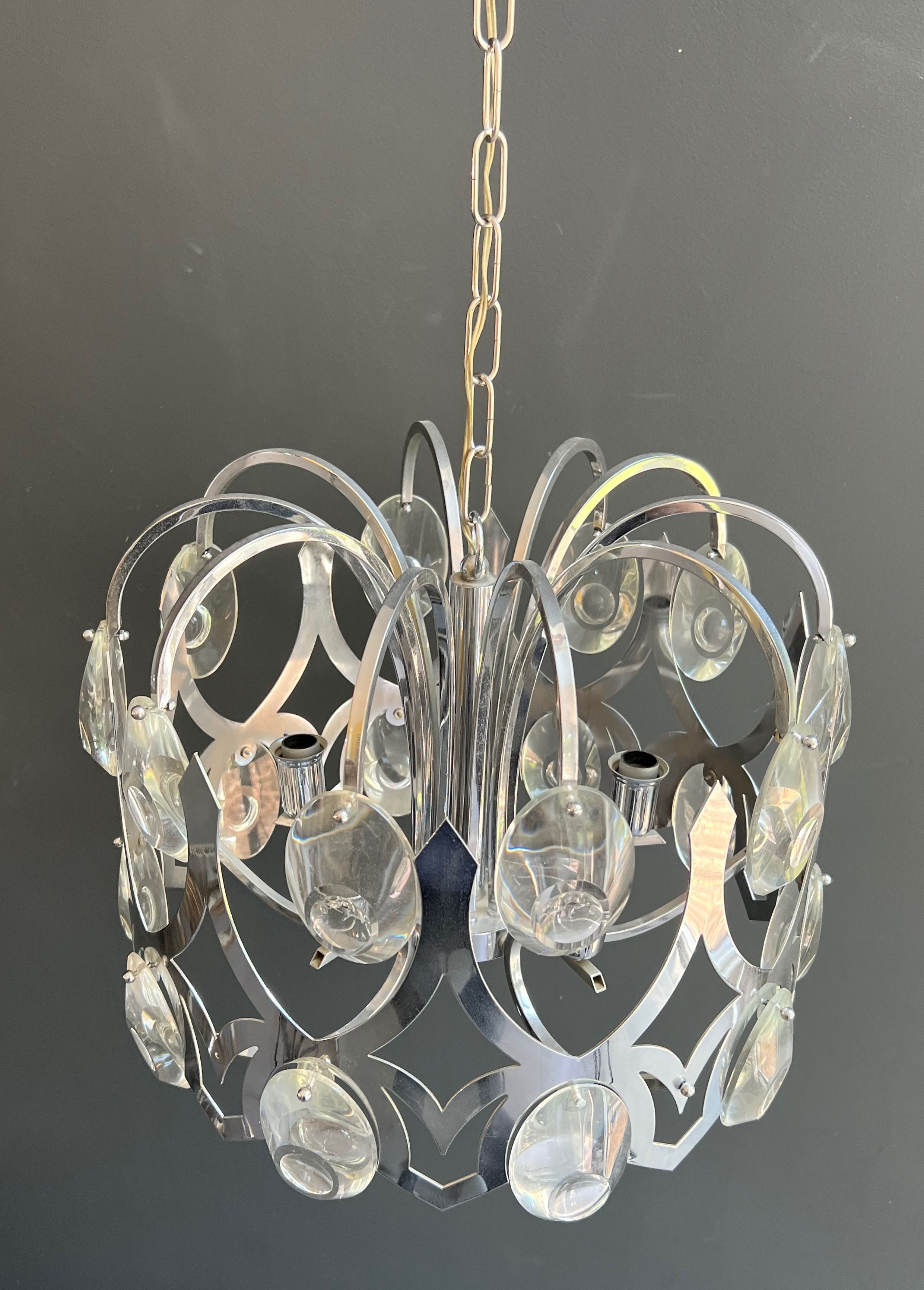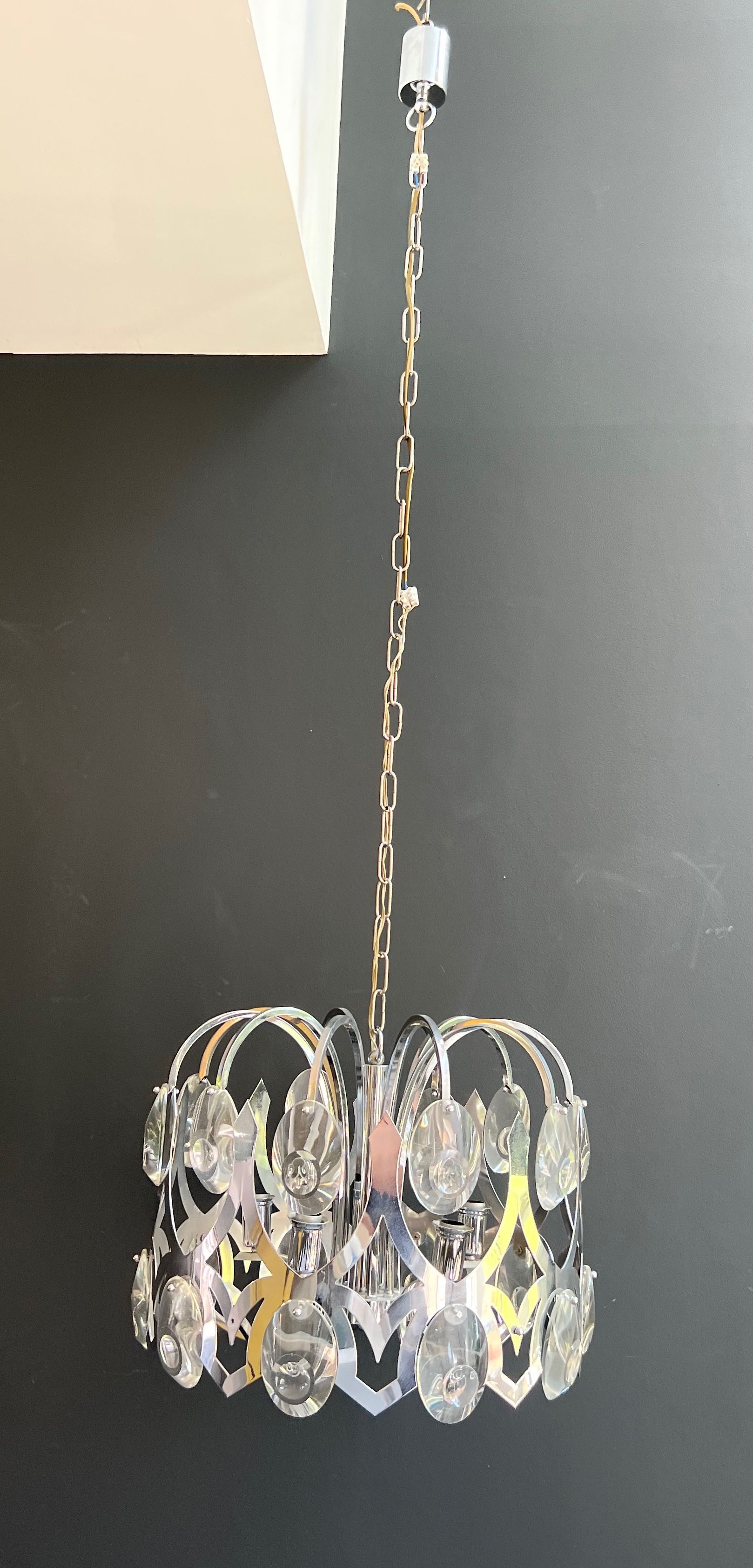 Design Chrome and Crystal Chandelier. Italian work by Angelo Gaetano Sciolari. Circa 1970