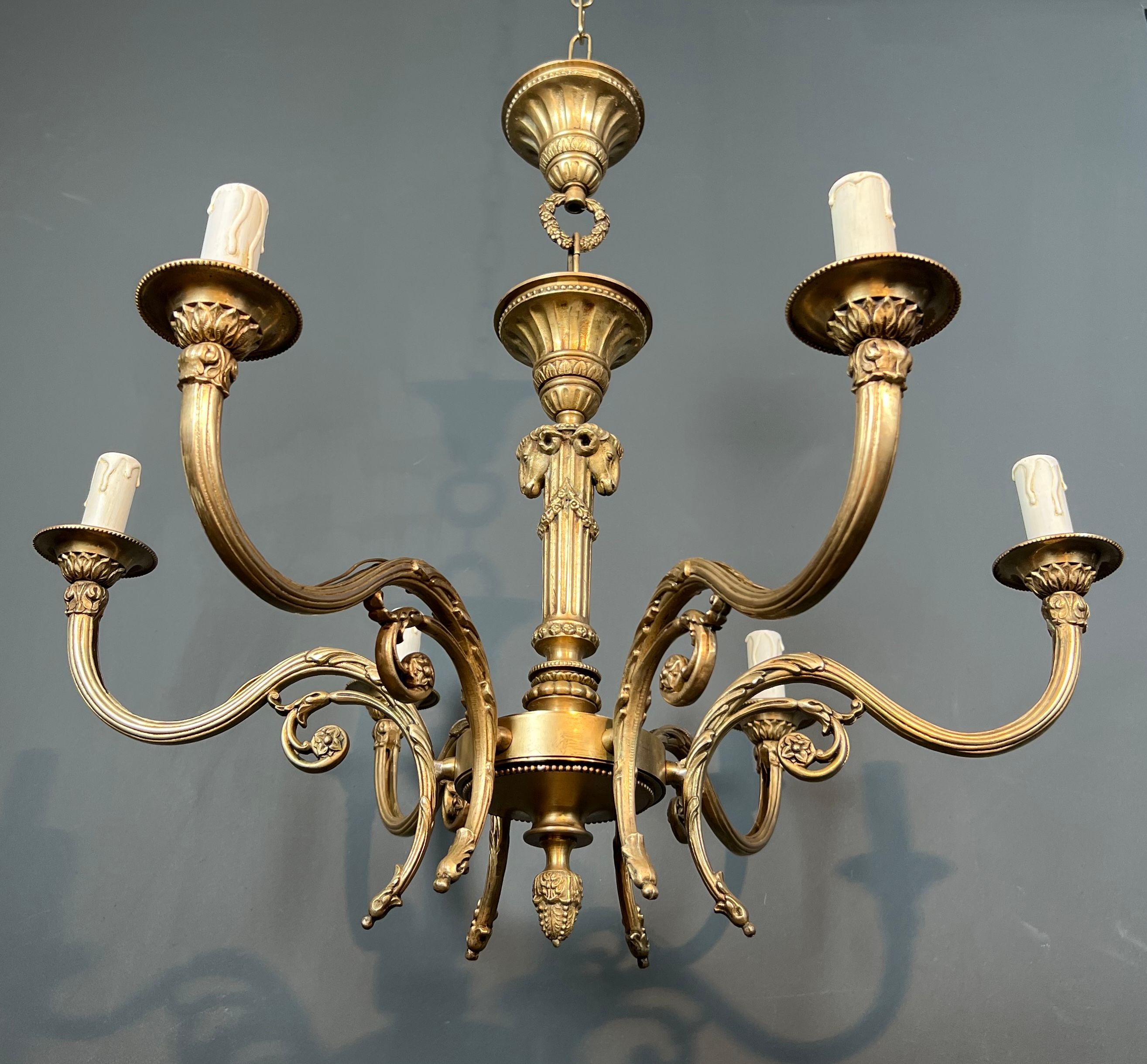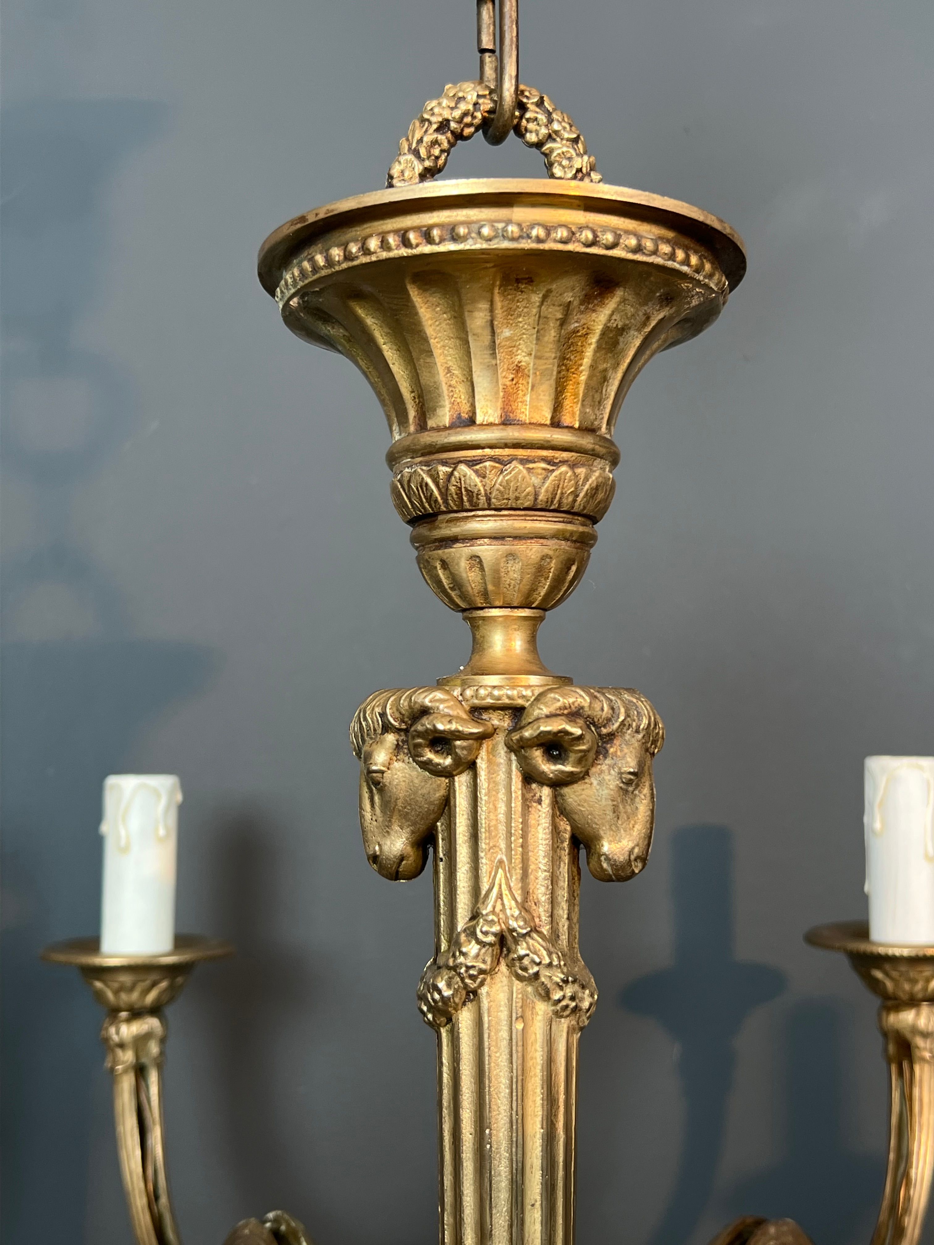 Bronze Chandelier with Ram's Heads in the Louis XVI Style. French work in the style of Maison Jansen