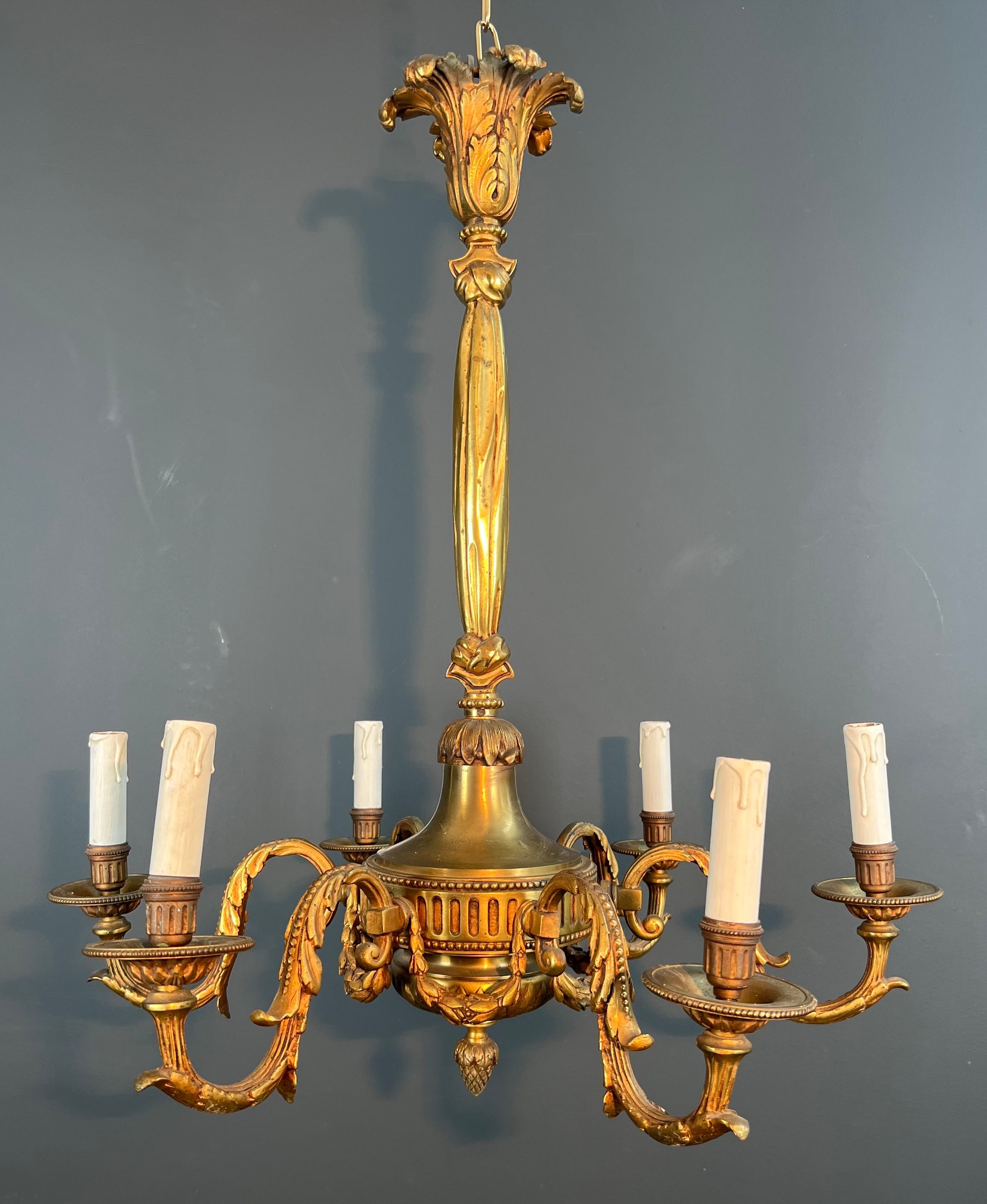 6 Arms Bronze Chandelier in the Style of Louis the 16th6 arms bronze chandelier. French work in the style of Louis the 16th. Circa 1900Request priceDimensionsWidth26.97 inch68.5 cmDepth26.97 inch68.5 cmHeight29.92 inch76 cmInformationProduct codeBC-219