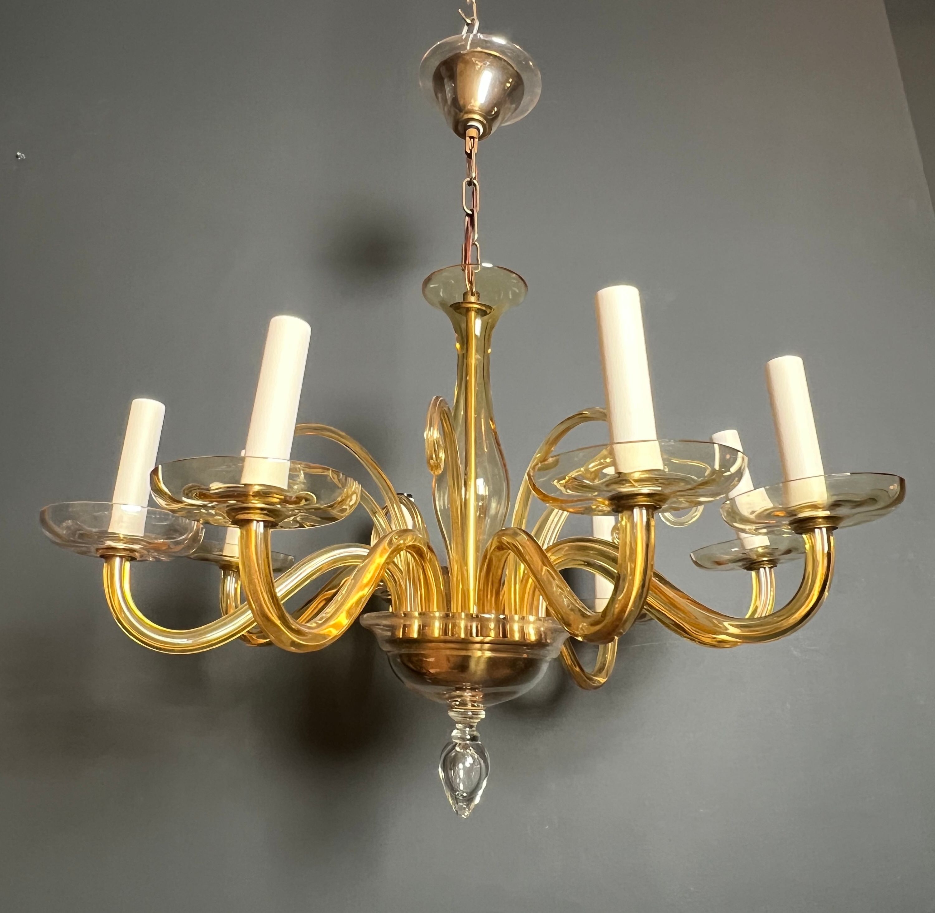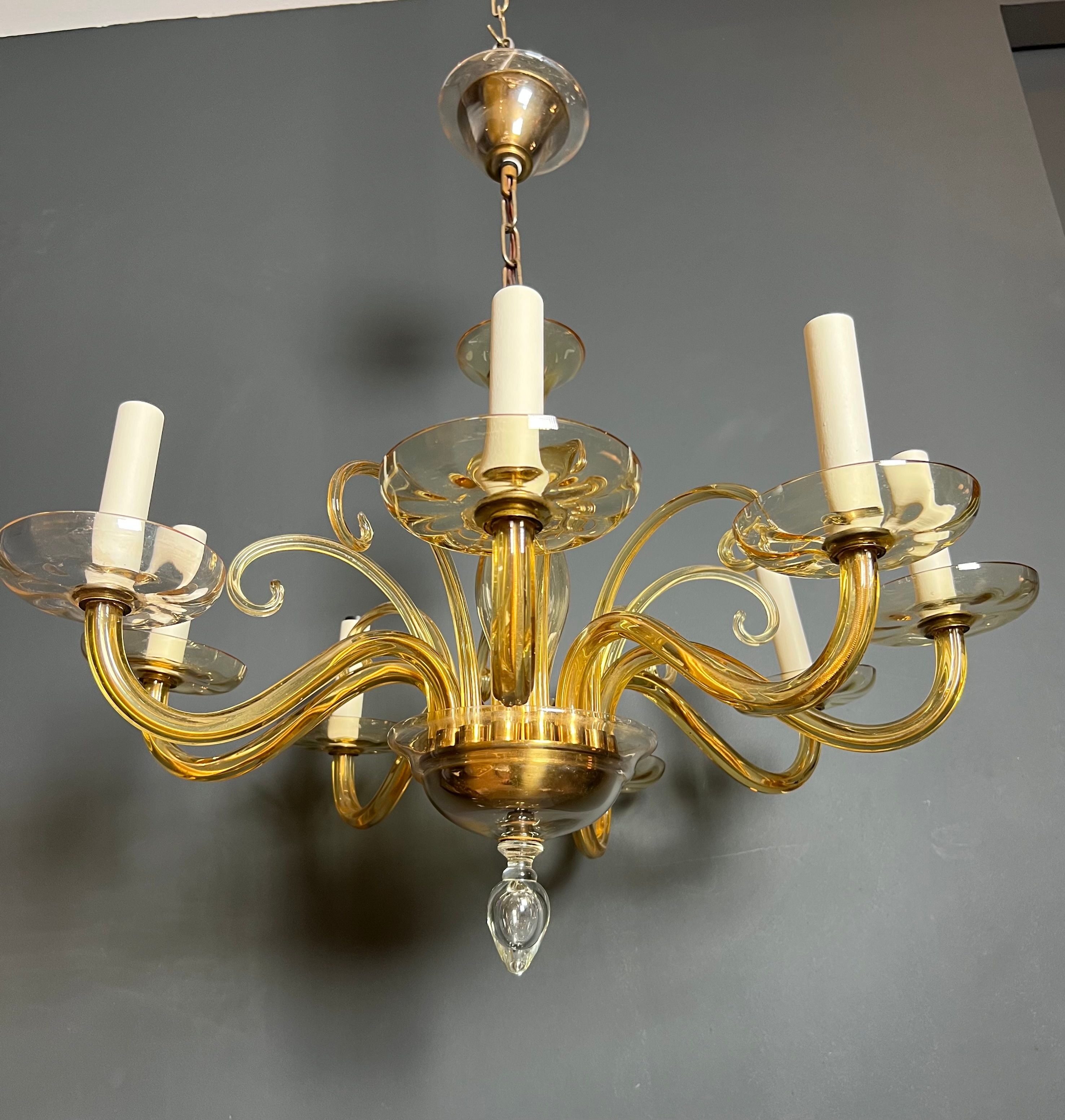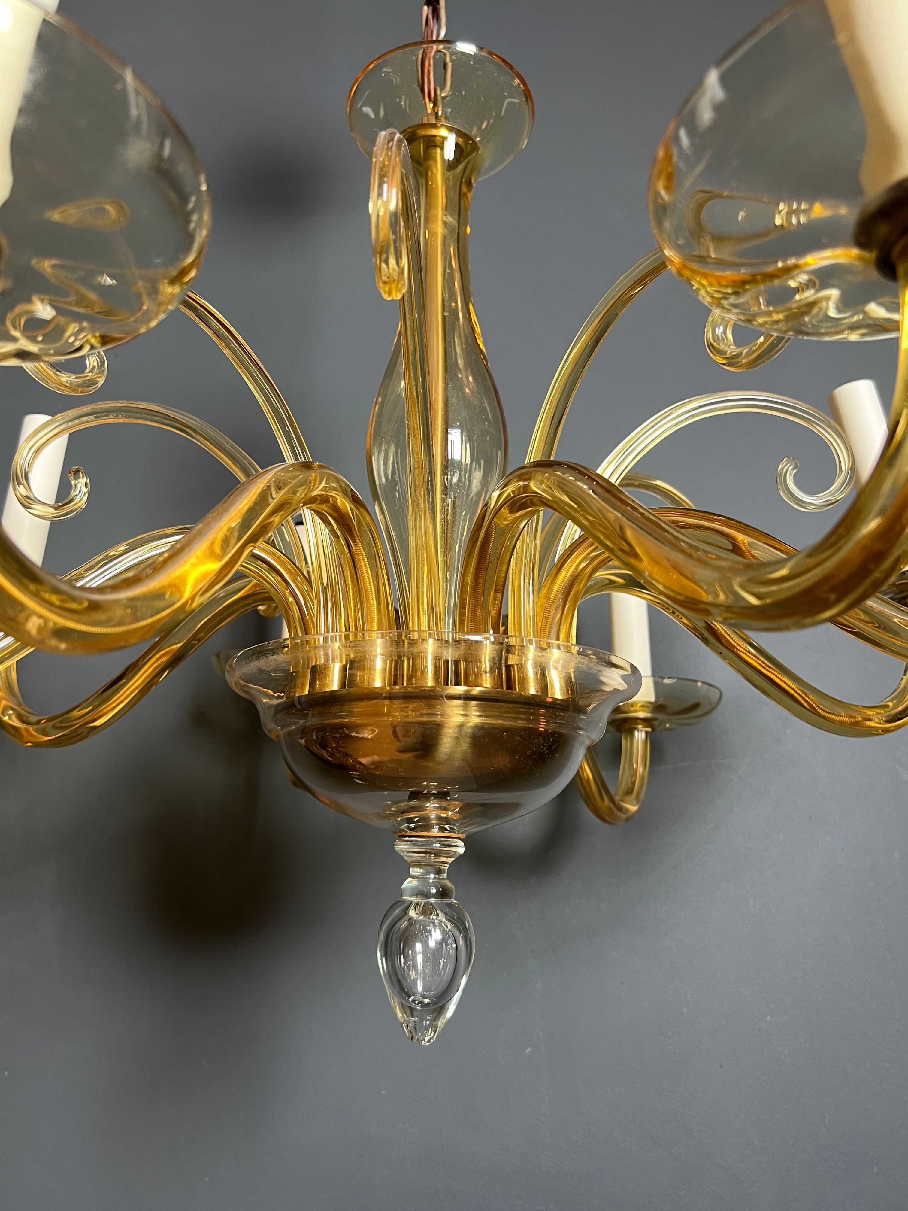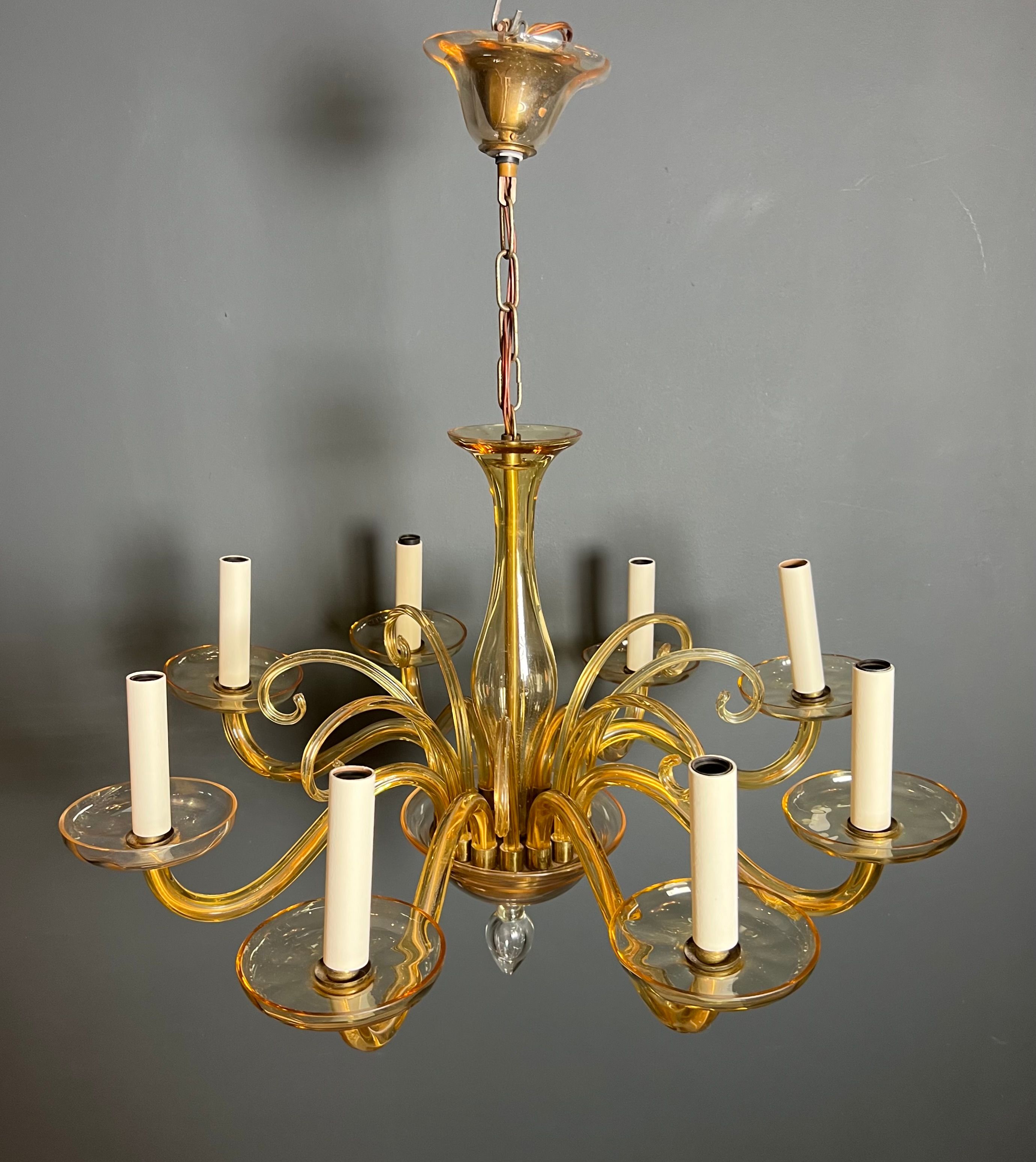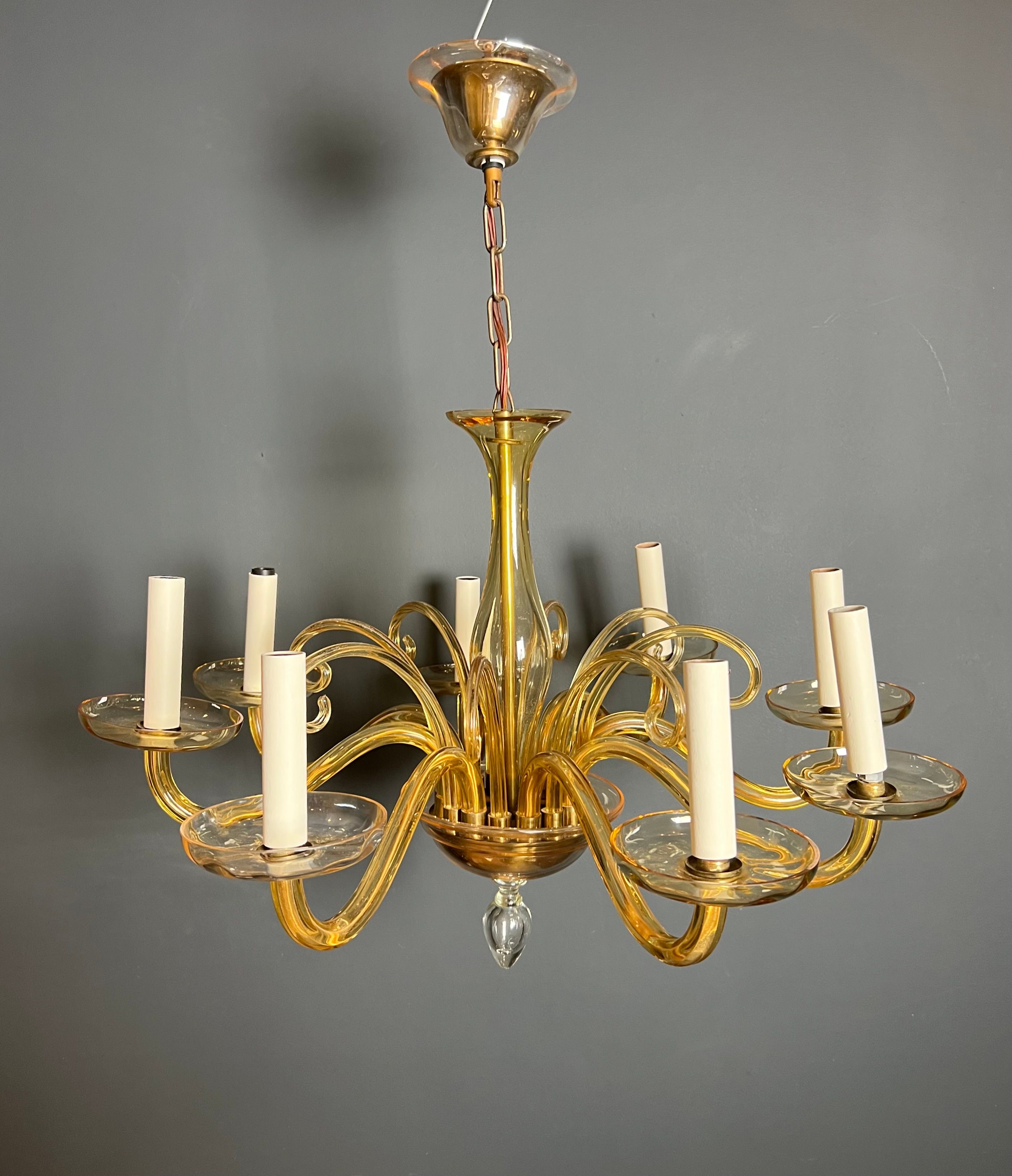 Orangeish Murano crystal chandelier with 8 arms. Italian work. Circa 1970