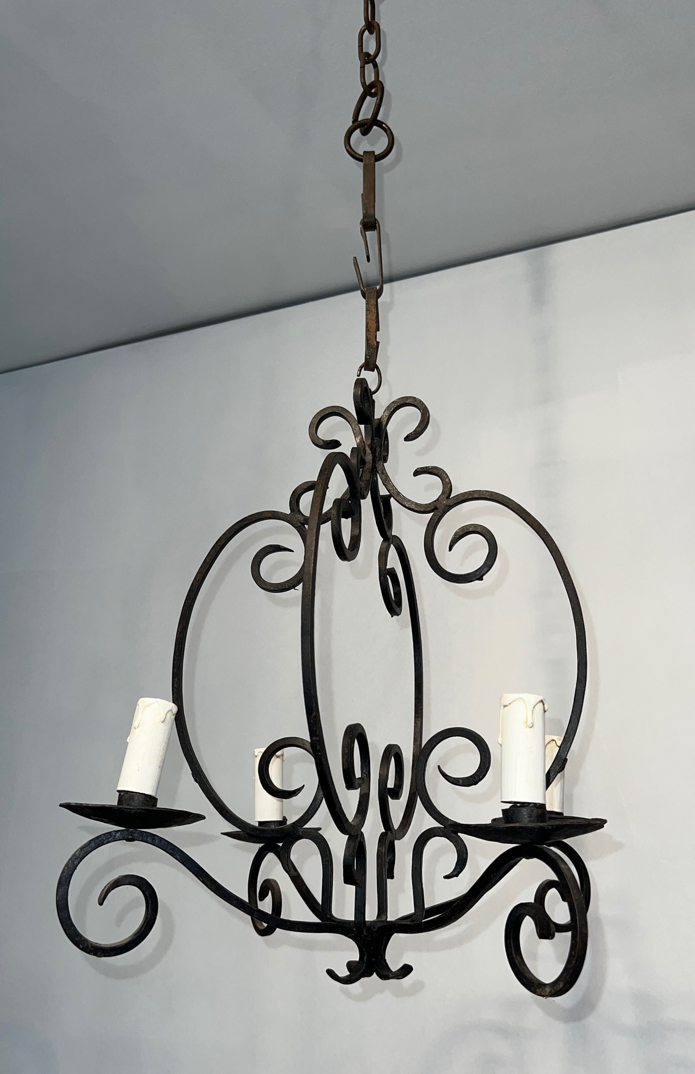 4 Lights Wrought Iron Chandelier4 lights wrought iron chandelier. French work. Circa 1950Request priceDimensionsWidth17.72 inch45 cmDepth17.72 inch45 cmHeight18.9 inch48 cmInformationProduct codeIC-2240
