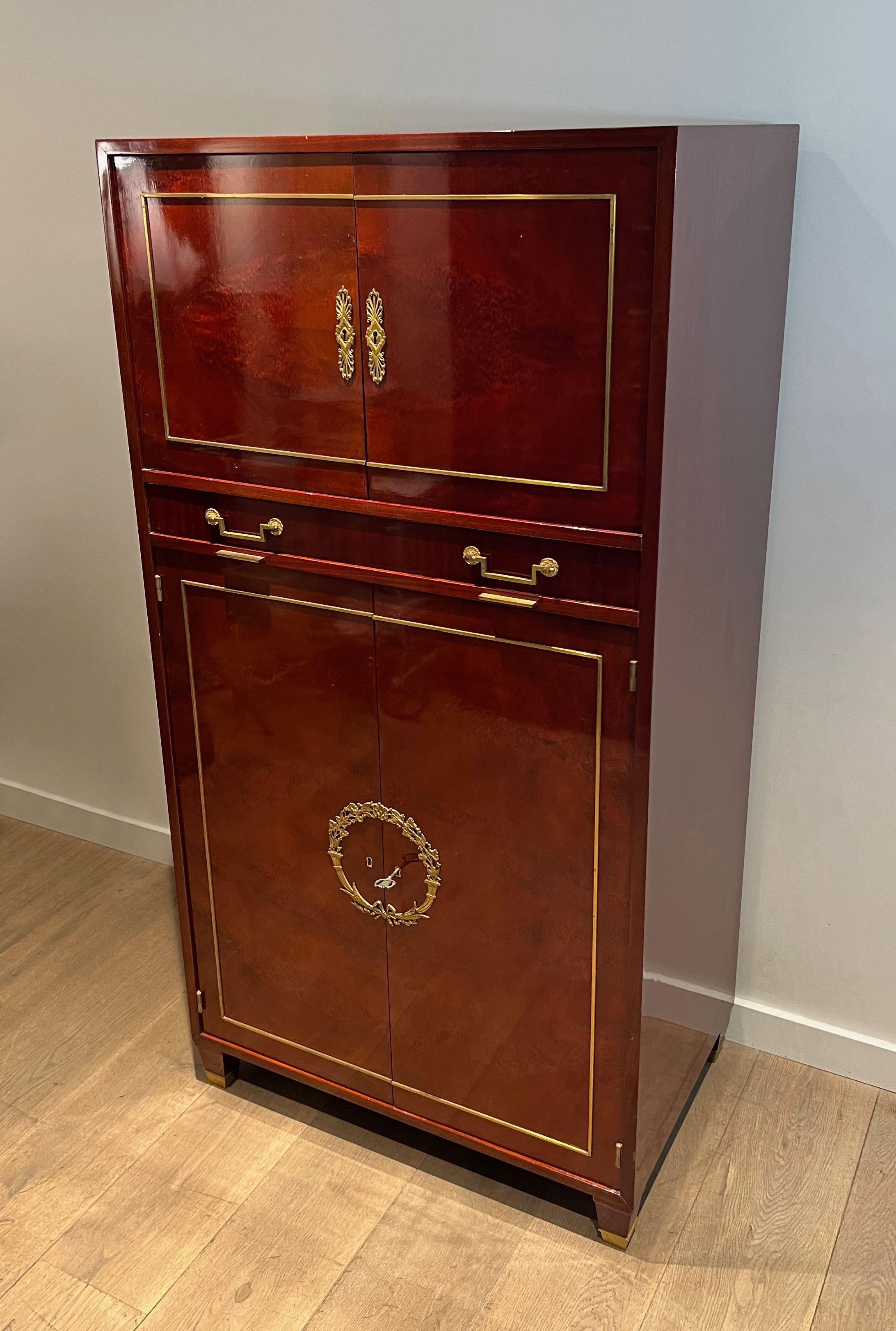 Empire style secretary desk in flamed mahogany and bronze locks. This is an Italian work in the style of Aldo Tura. Circa 1970