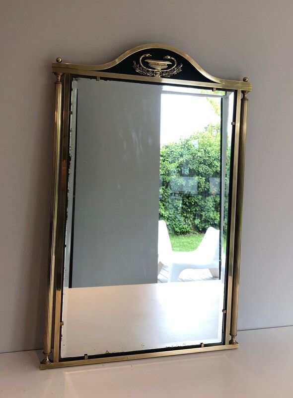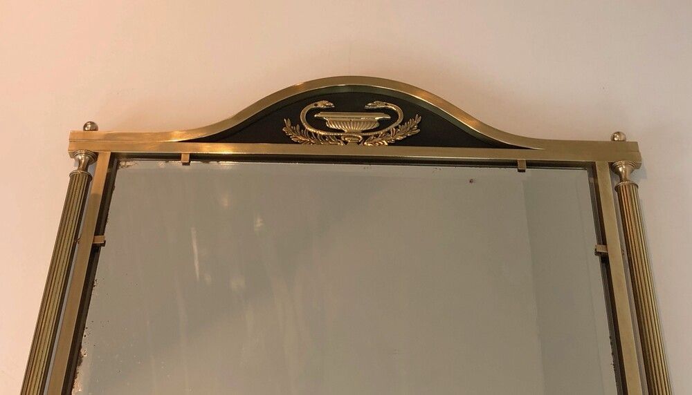 Neoclassical Style Brass and Lacquered Metal Mirror with Cup and Swan Necks