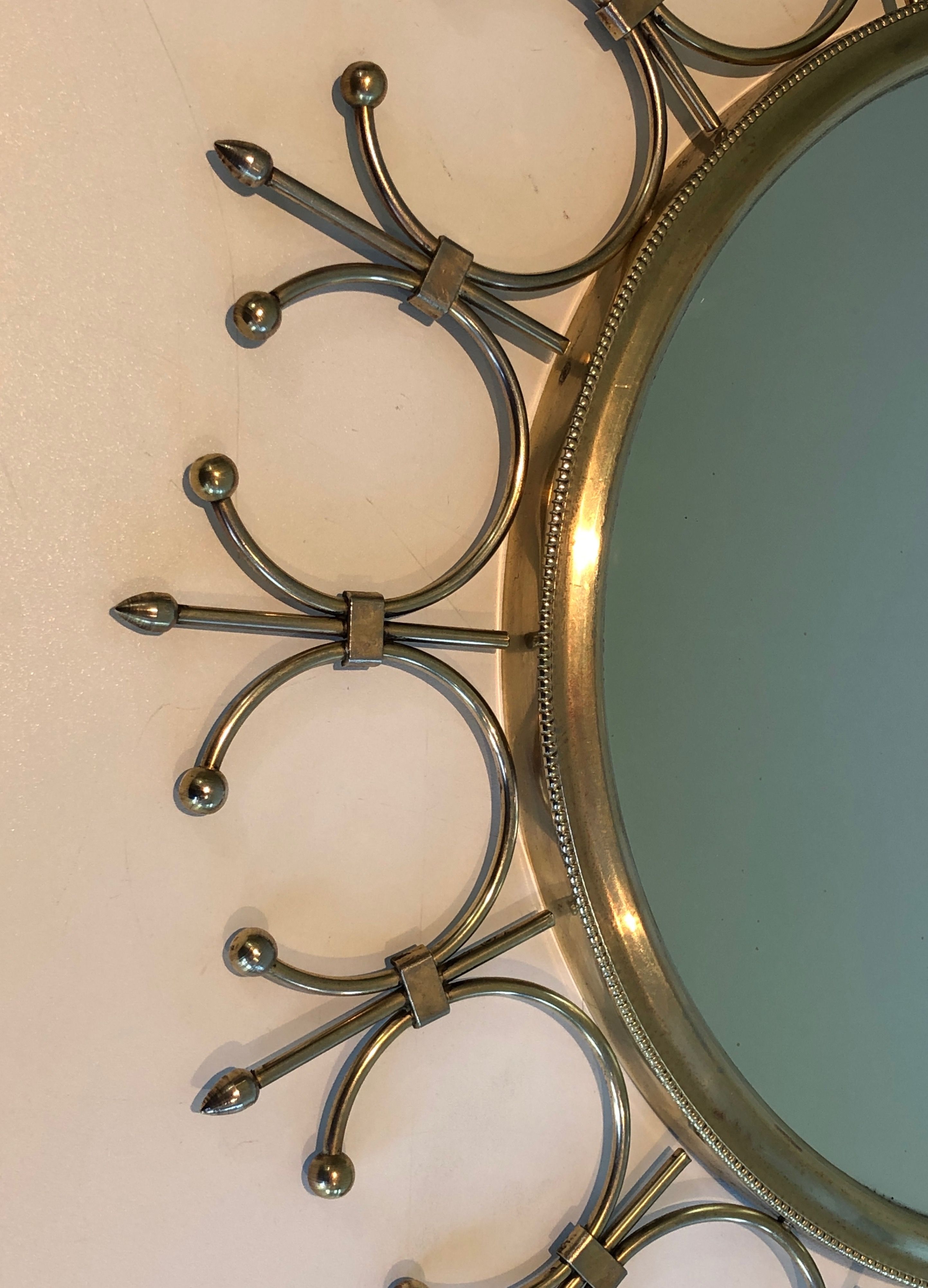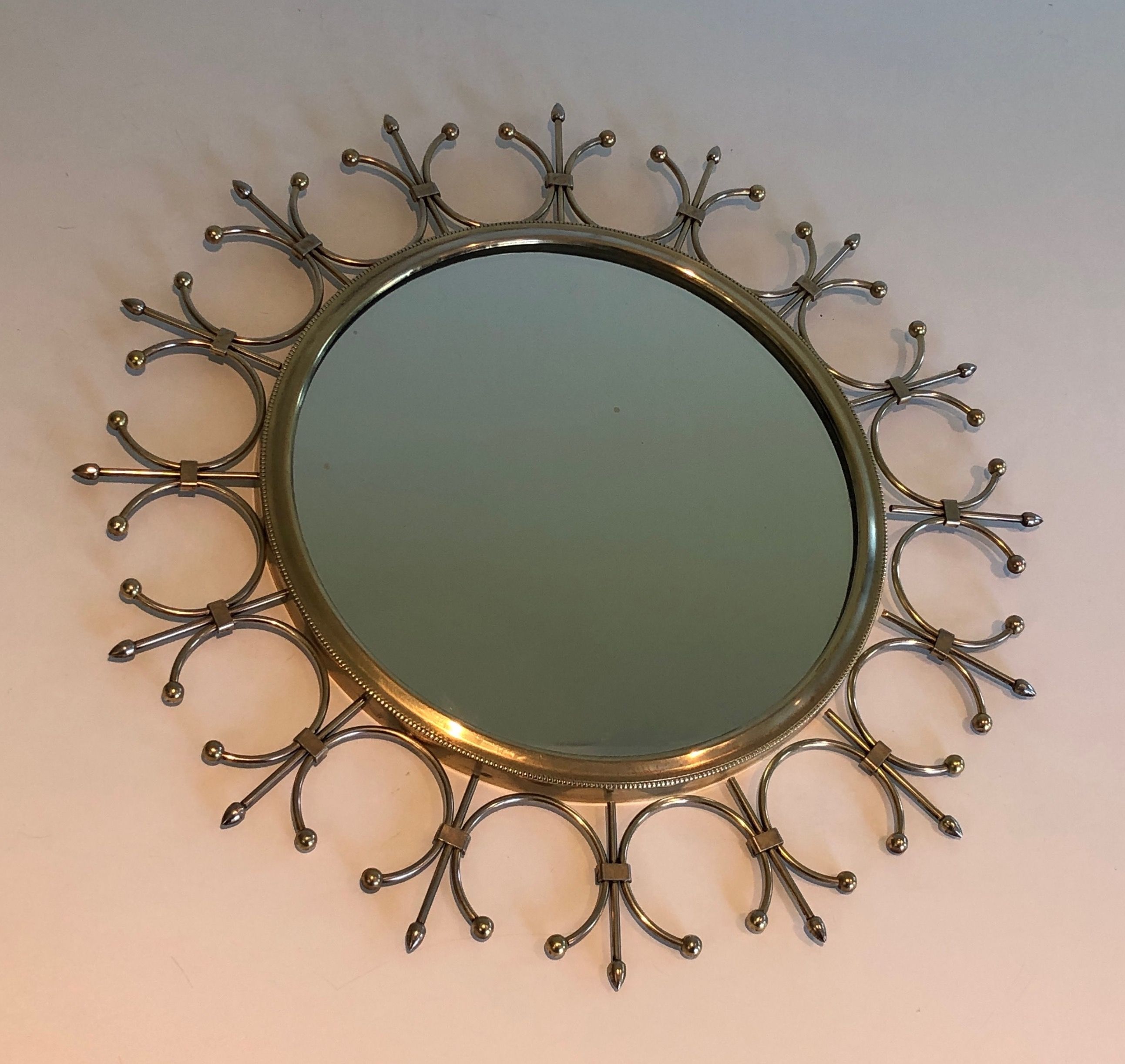 Brass and Brushed Steel Sunburst MirrorBrass and brushed steel sunburst mirror. French work. Circa 1970Request priceDimensionsWidth19.88 inch50.5 cmDepth19.88 inch50.5 cmHeight0.98 inch2.5 cmInformationProduct code50's-52816