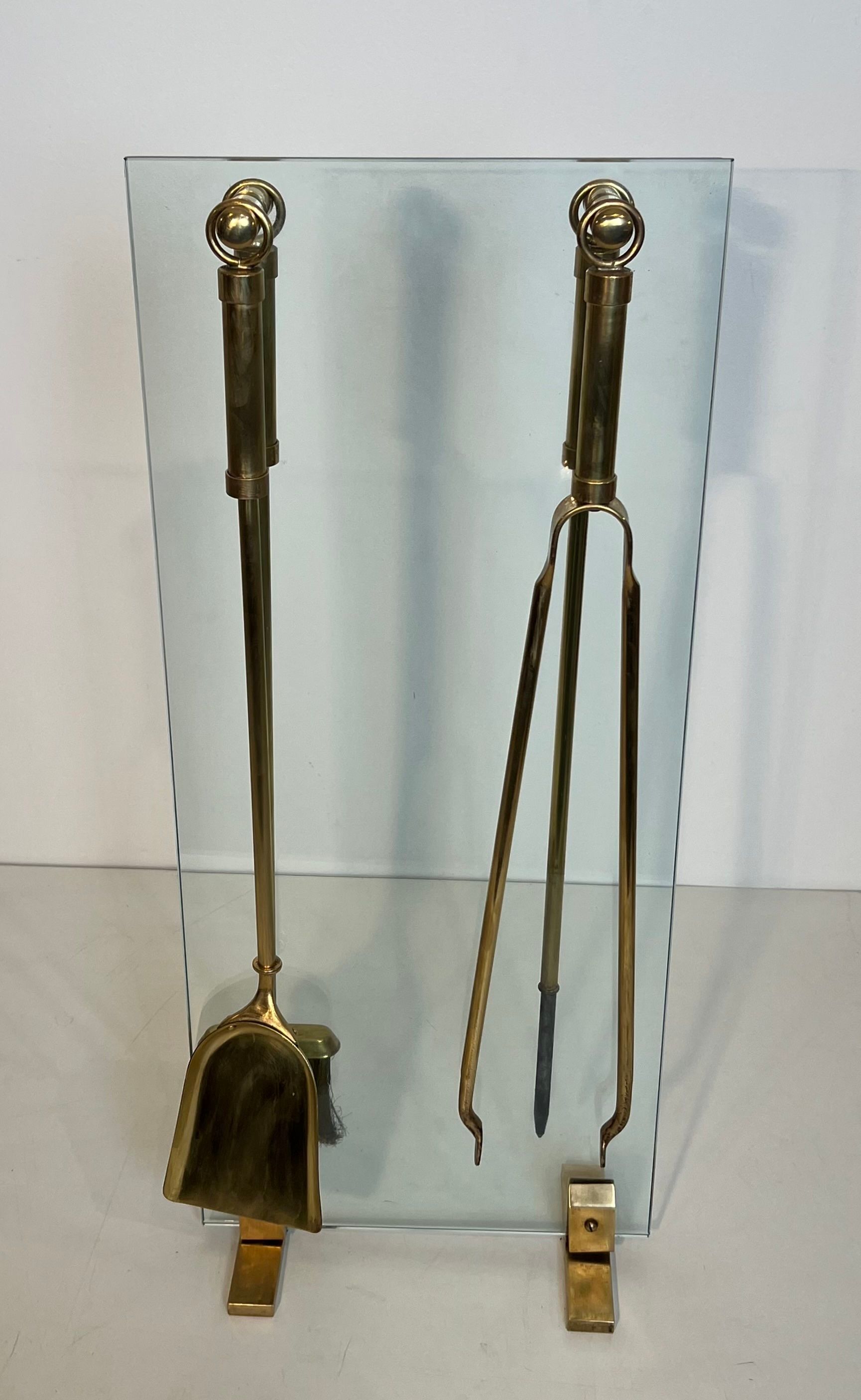 Glass and Brass Design Fireplace ToolsDesign glass and brass fireplace tools. French work. Circa 1970Request priceDimensionsWidth11.81 inch30 cmDepth5.71 inch14.5 cmHeight28.15 inch71.5 cmInformationProduct codeFP-9335