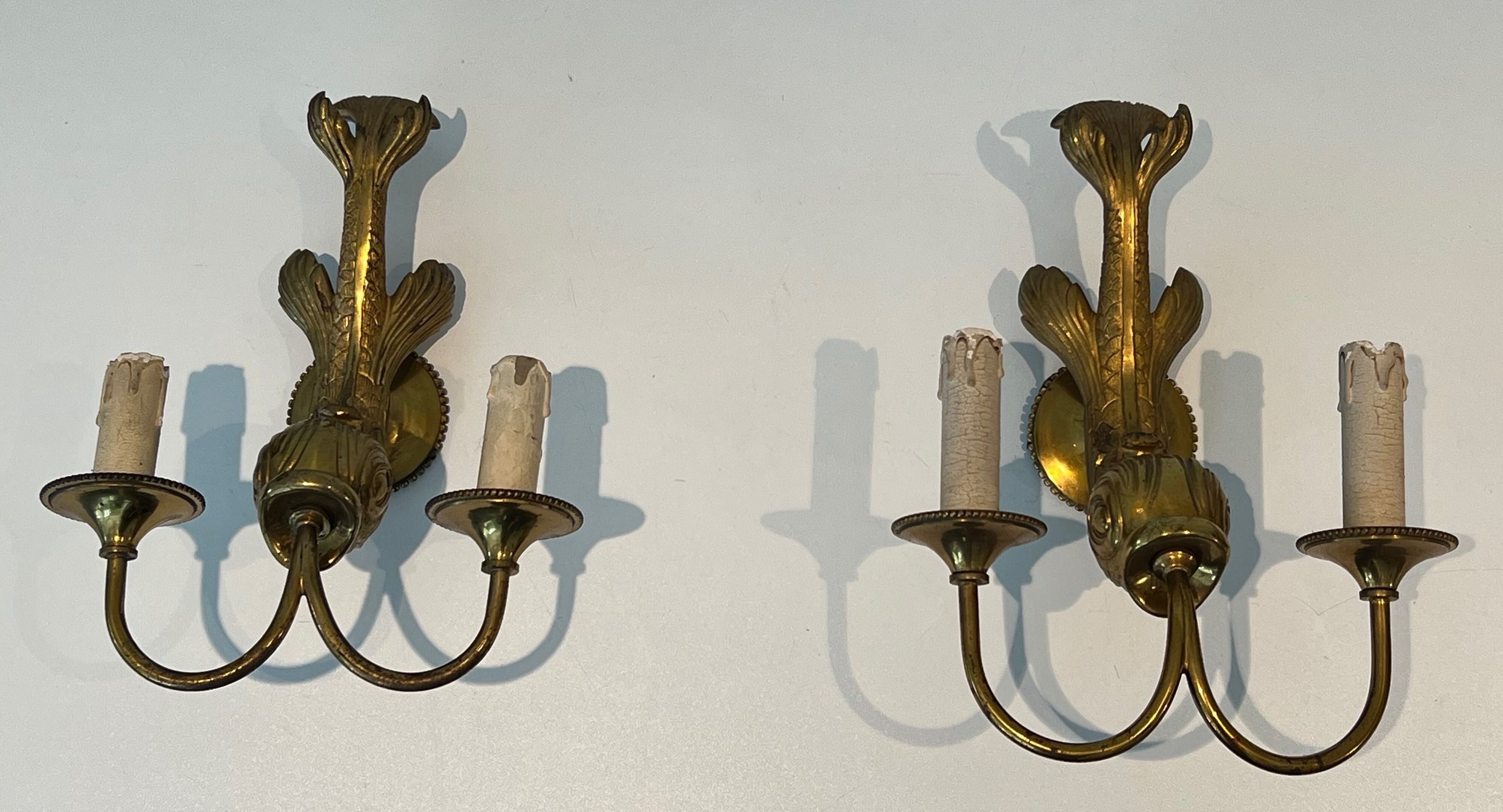 Pair of Dolphin Wall Sconces by Maison JansenPair of dolphin bronze wall sconces. French work by Maison Jansen. Circa 1940Request priceDimensionsWidth9.06 inch23 cmDepth5.51 inch14 cmHeight11.81 inch30 cmInformationProduct codeBS-1038