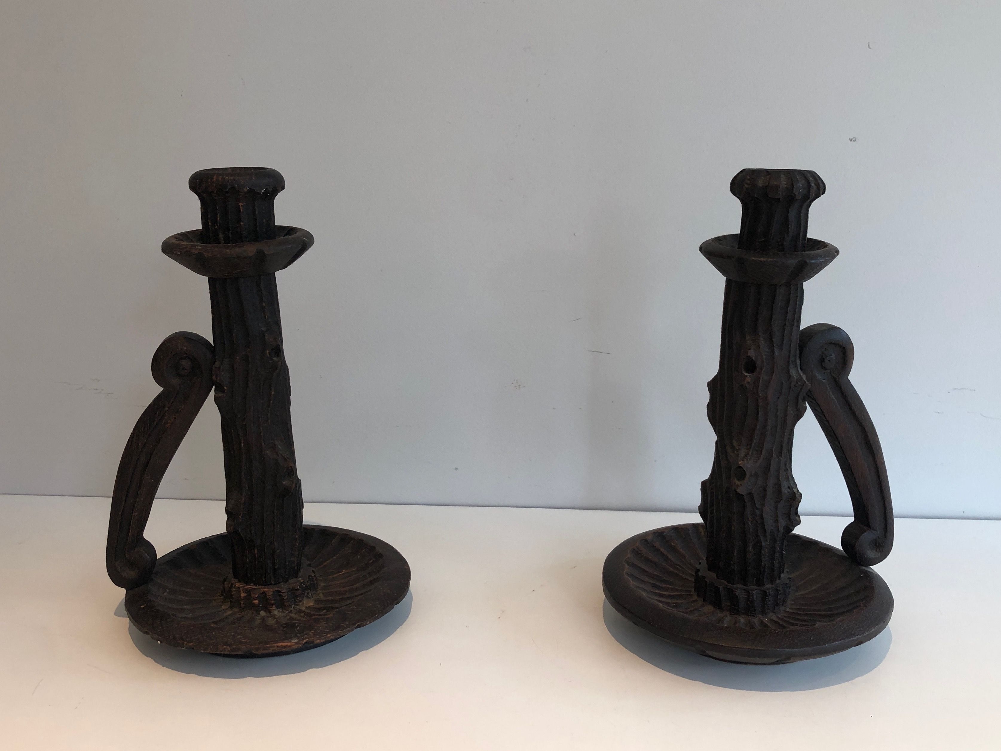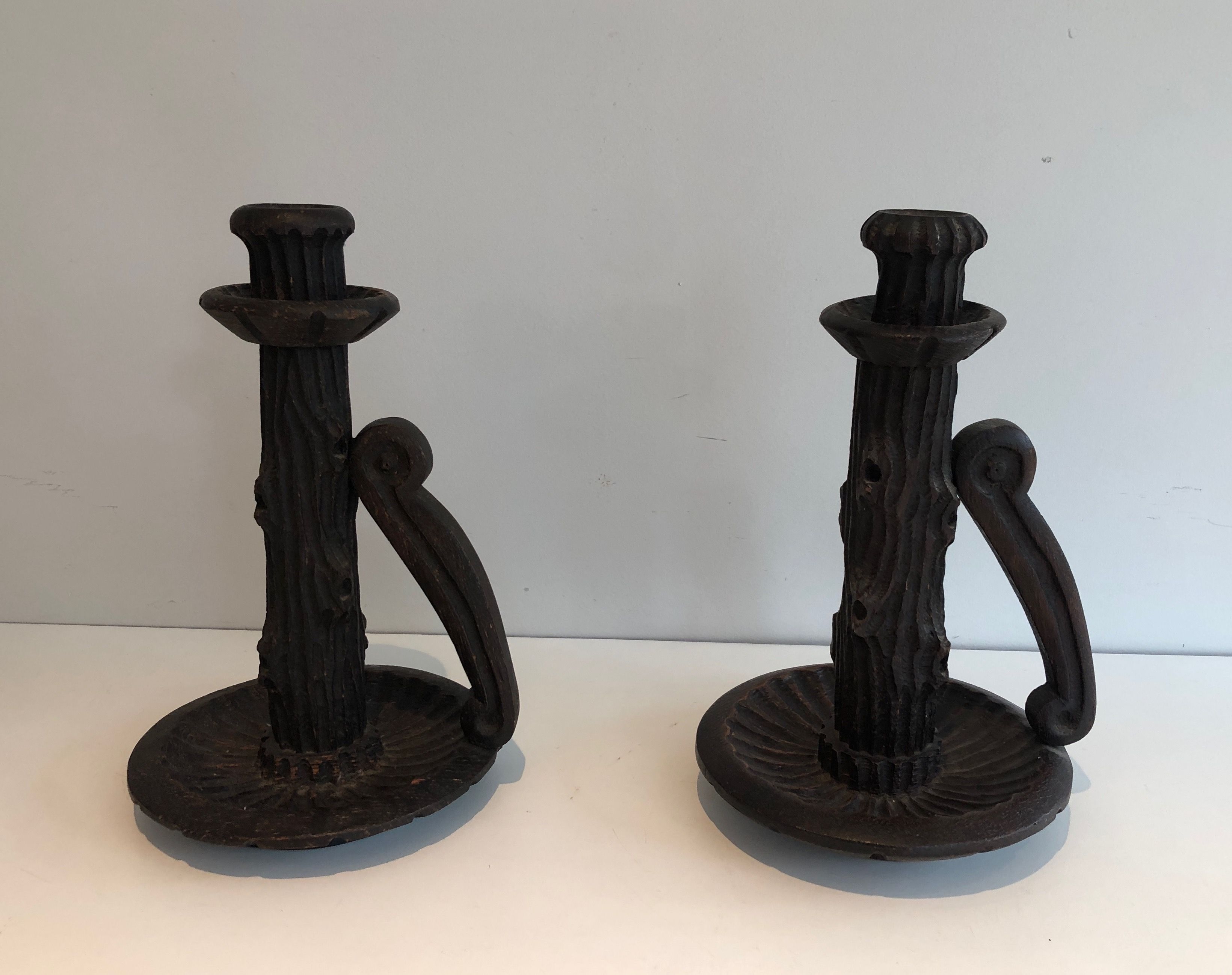 Pair of Brutalist Candle HoldersPair of brutalist candle holders made of carved wood. French. Circa 1950Sold as a setRequest priceDimensionsWidth8.07 inch20.5 cmDepth7.68 inch19.5 cmHeight12.2 inch31 cmInformationProduct codeTL-498