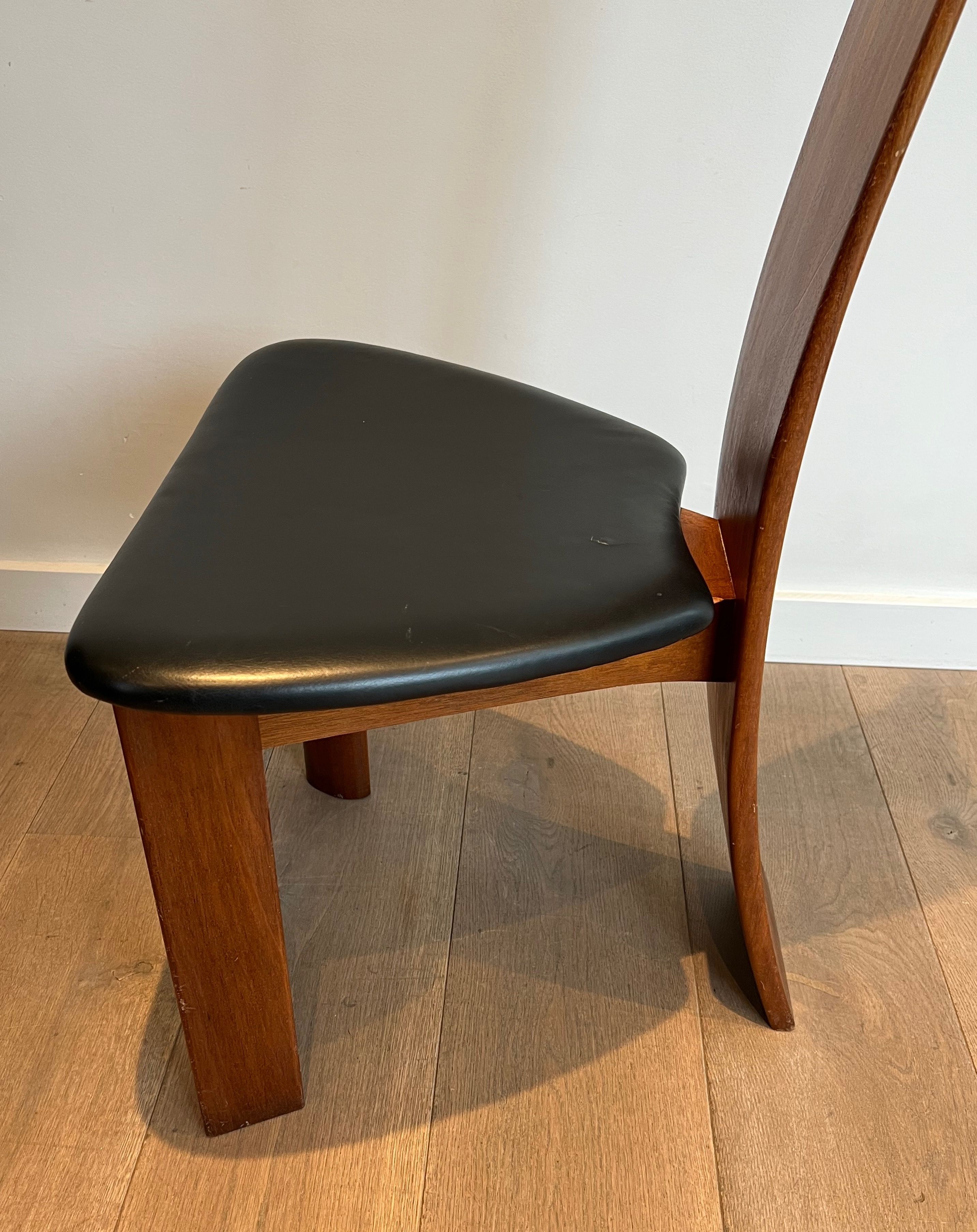 Pair of Exotic Wood and Black Leather Chairs, Scandinavian Work. Circa 1970