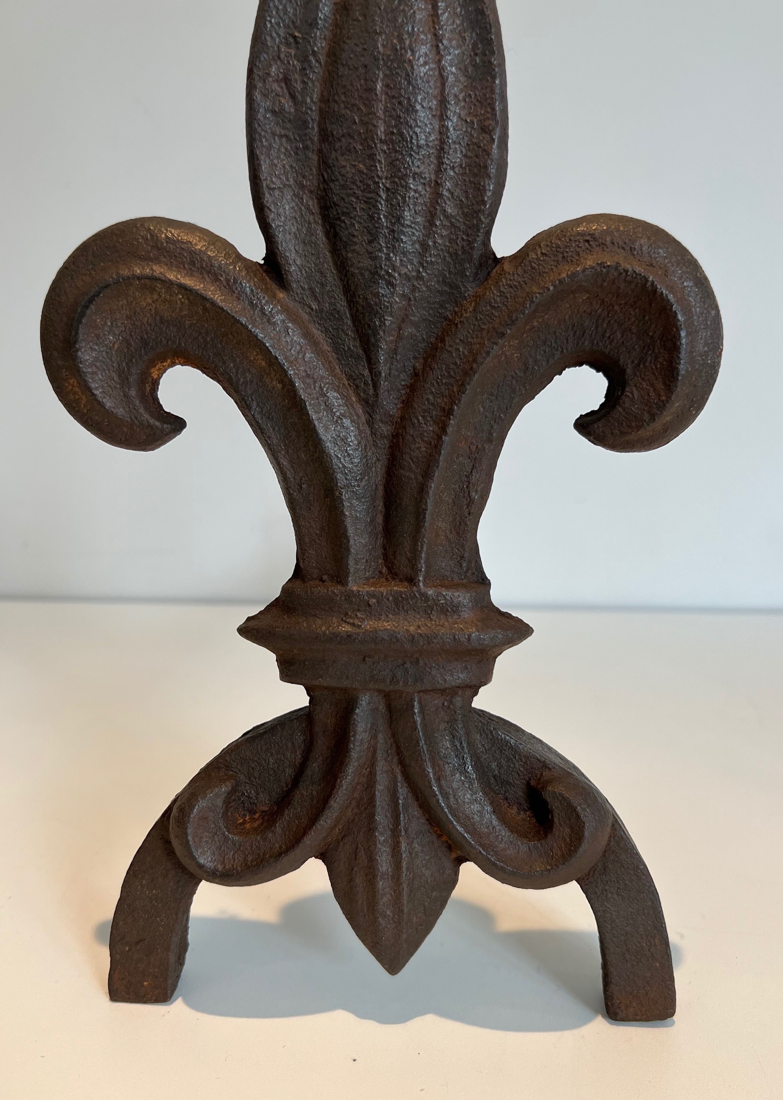Pair of Fleurs de Lys Cast Iron and Wrought Iron AndironsPair of Fleurs de Lys Cast Iron and Wrought Iron Andirons. French work. Circa 1970Request priceDimensionsWidth6.89 inch17.5 cmDepth16.54 inch42 cmHeight13.78 inch35 cmInformationProduct codeFP-5262