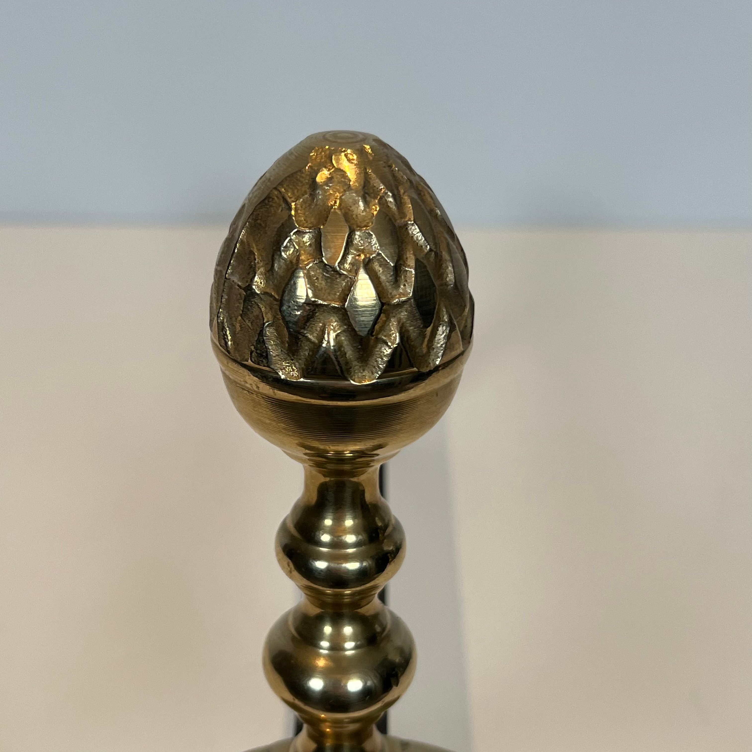 Pair of Neoclassical Style Pine Cone Brass Andirons In the Style of Maison Jansen