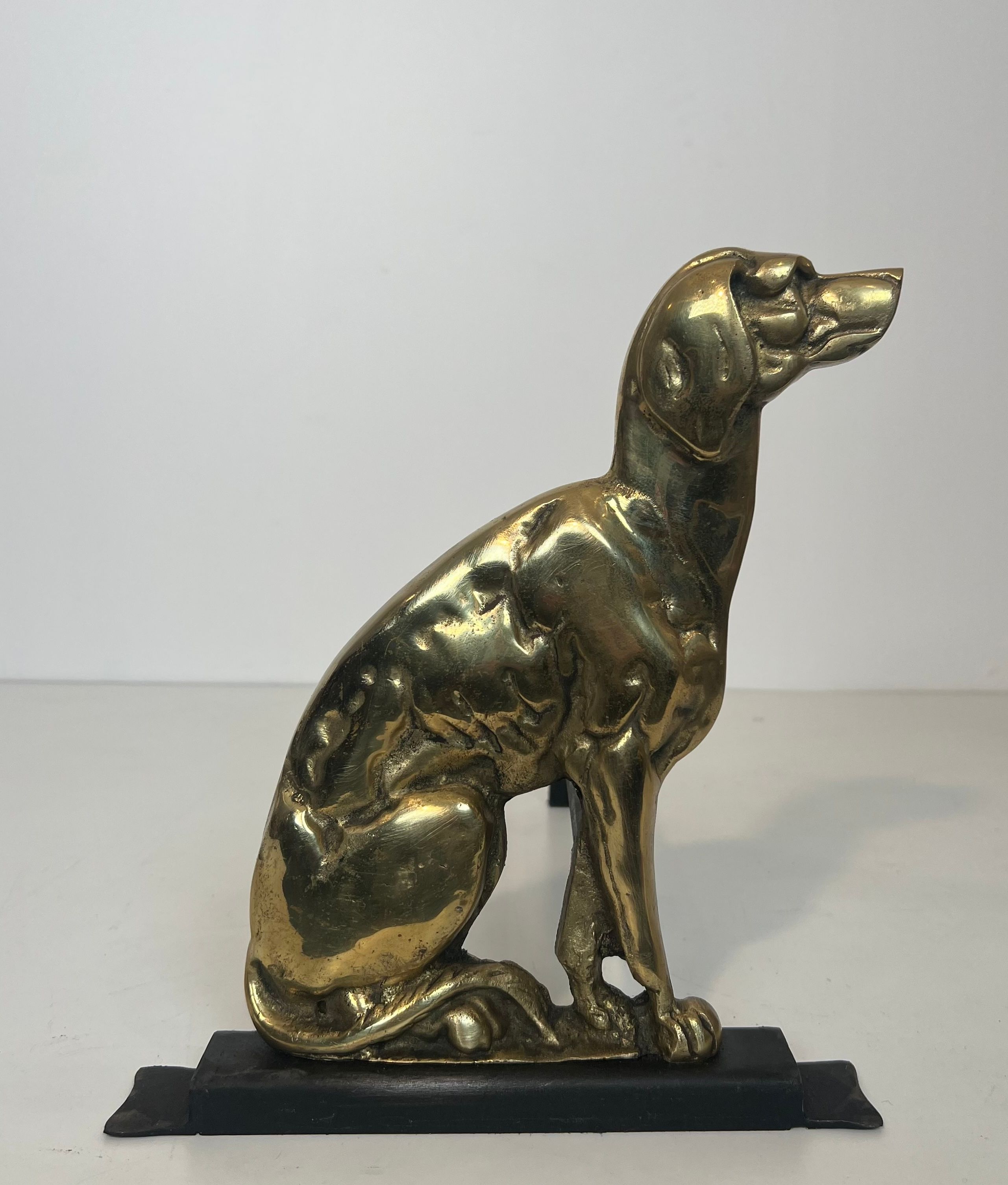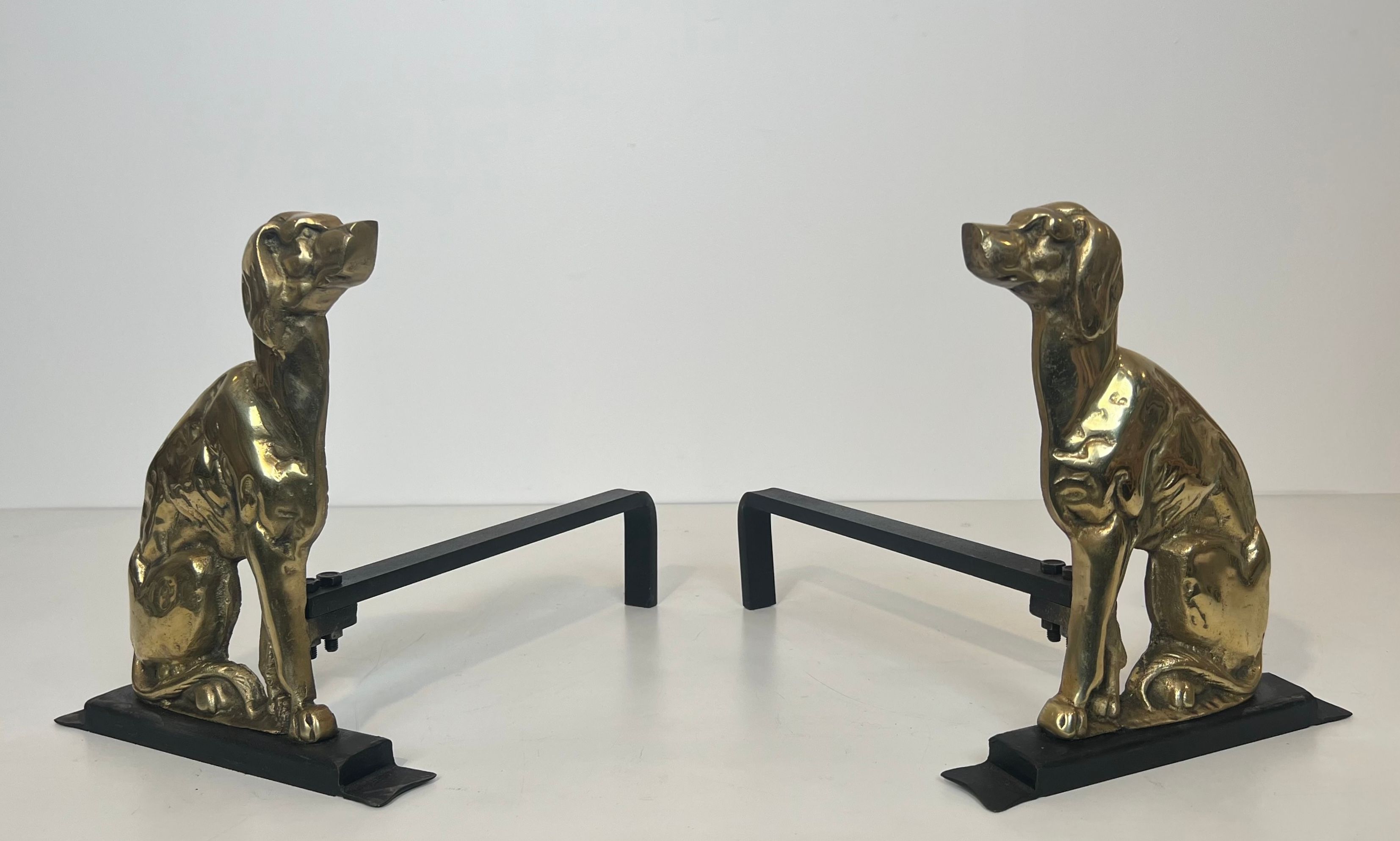 Pair of chiseled bronze andirons representing dogs. French work from Art Deco period. Circa 1930