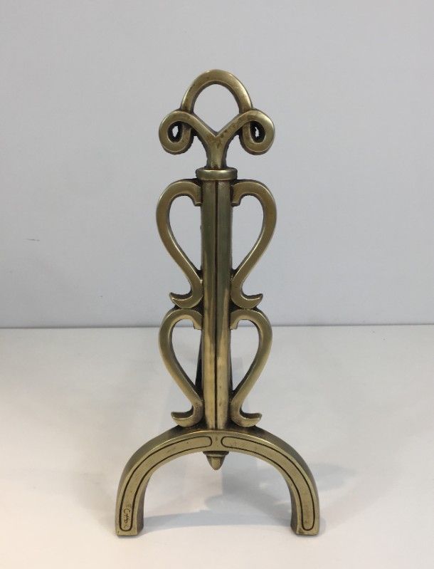 In the Style of Raymond Subes. Bronze and Iron Andirons. Signed. French. Circa 1940