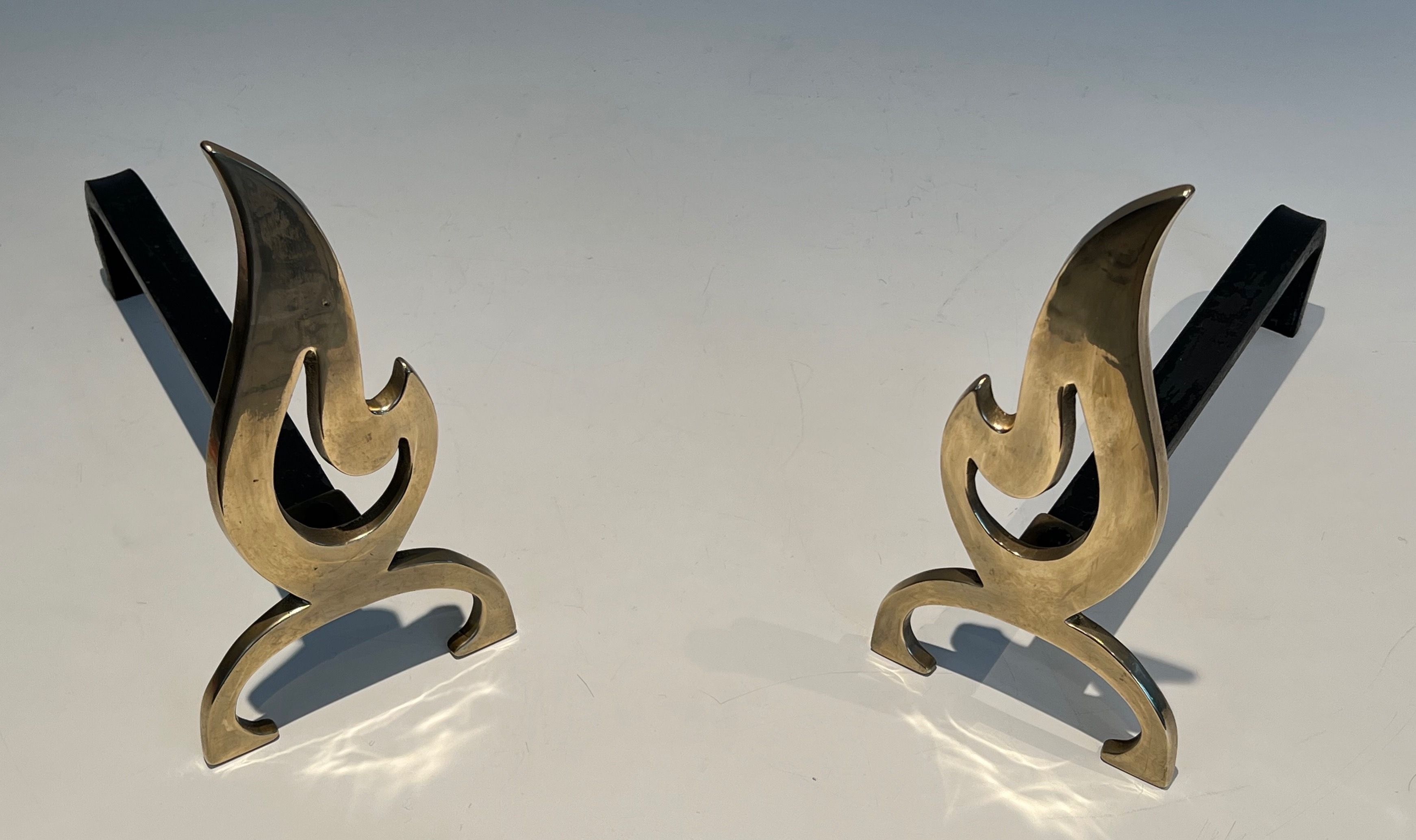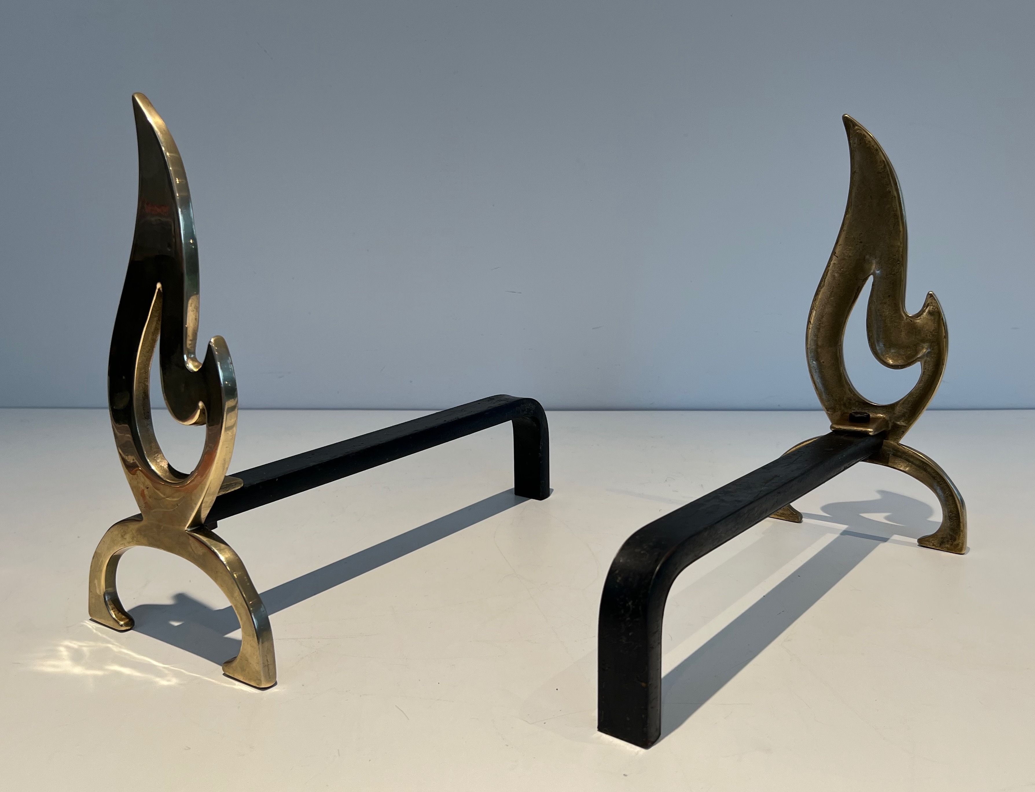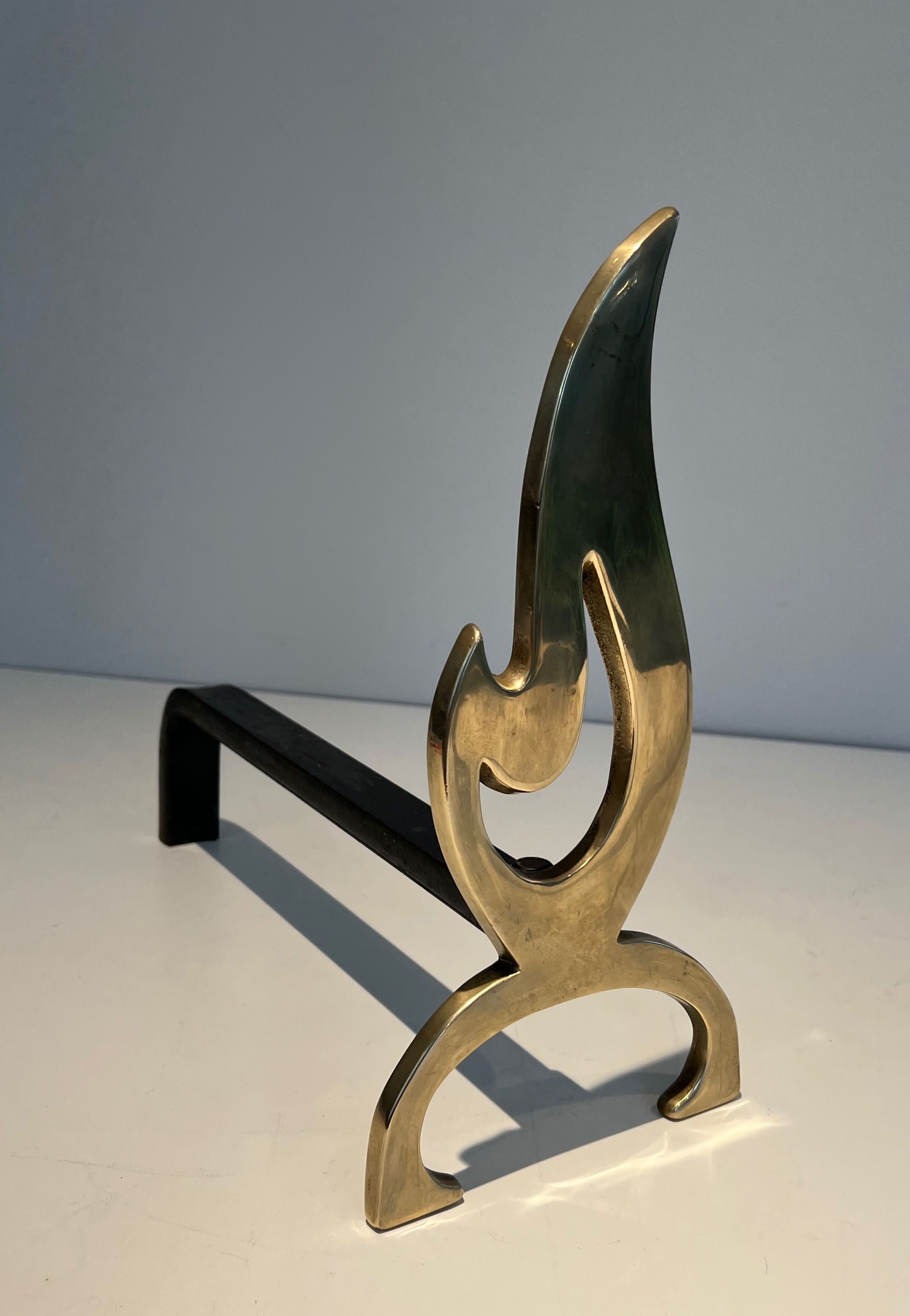 Pair of Flame Brass AndironsPair of neoclassical style flame brass andirons. French. Circa 1920Request priceDimensionsWidth6.3 inch16 cmDepth14.76 inch37.5 cmHeight12.4 inch31.5 cmInformationProduct codeFP-5942