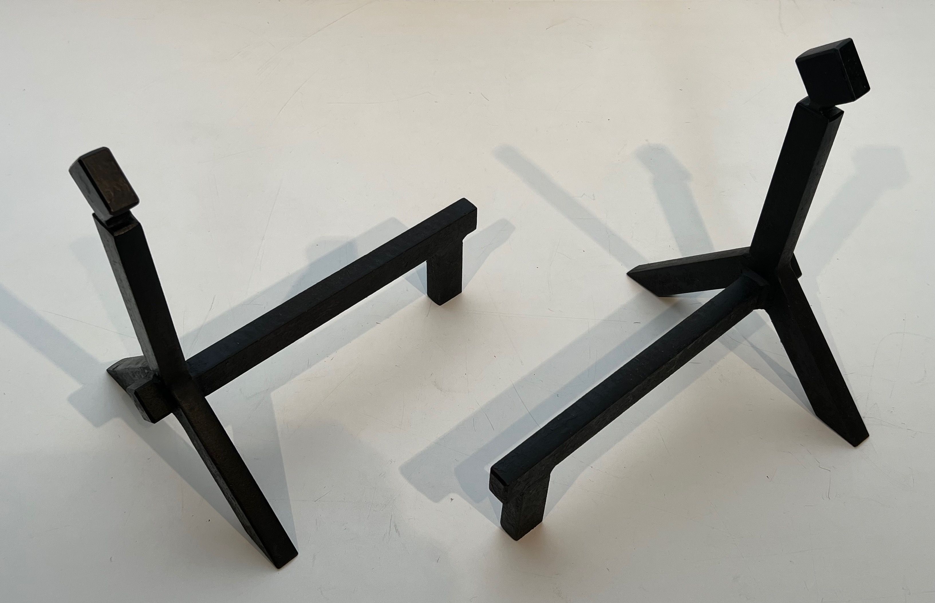 Pair of Modernist Cast Iron and Wrought Iron AndironsPair of modernist wrought iron andirons. French work. Circa 1950Request priceDimensionsWidth10.24 inch26 cmDepth13.19 inch33.5 cmHeight12.99 inch33 cmInformationProduct codeFP-7411