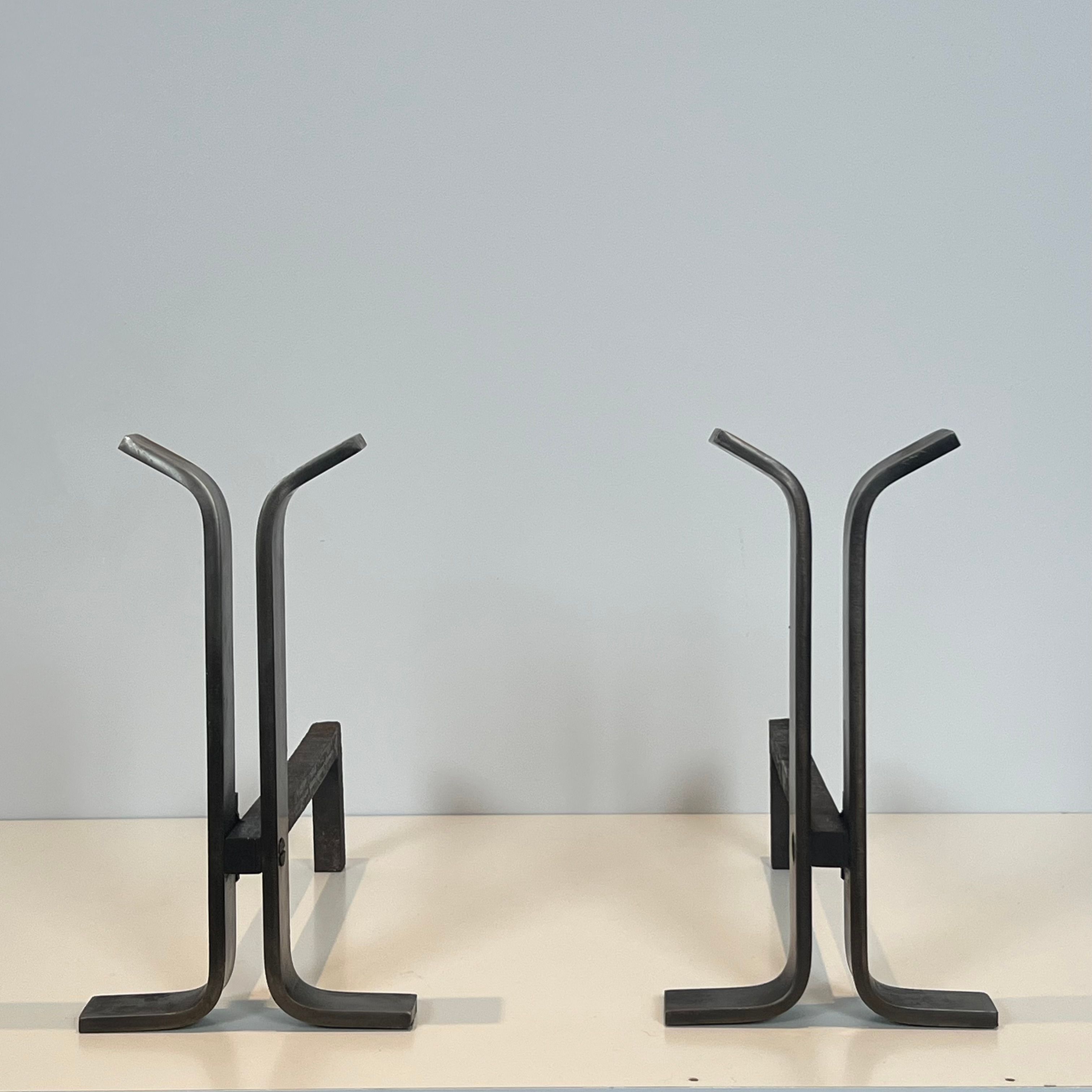 Pair of Modernist Steen and Wrought Iron AndironsPair of modernist steel and wrought iron andirons. French work. Circa 1970Request priceDimensionsWidth7.09 inch18 cmDepth13.98 inch35.5 cmHeight12.99 inch33 cmInformationProduct codeFP-9966