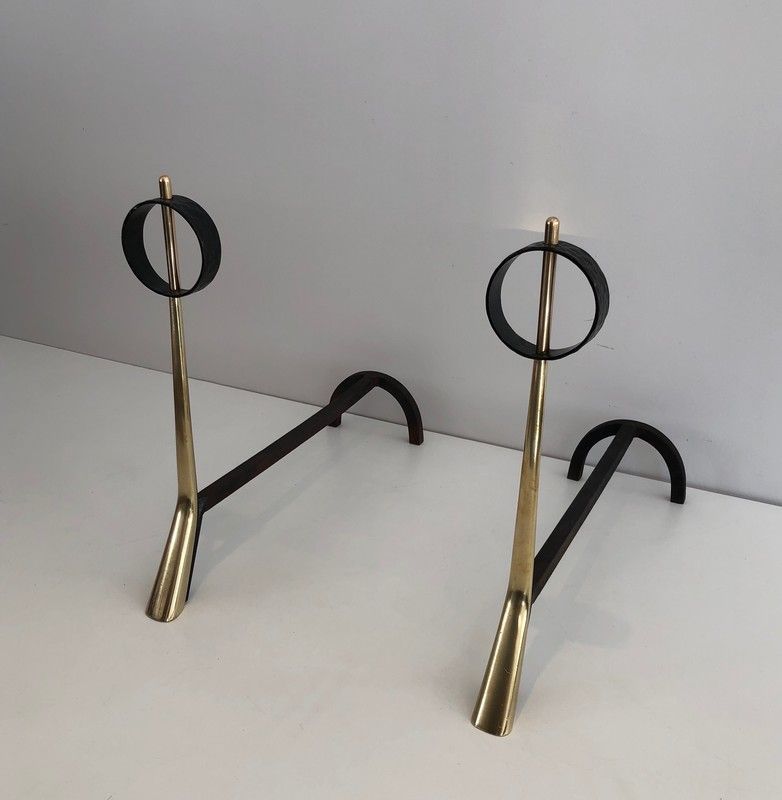 Pair of Modernist Bronze and Wrought Iron AndironsPair of Modernist Bronze and Wrought Iron Andirons. Italian. Circa 1950Request priceDimensionsWidth5.12 inch13 cmDepth17.52 inch44.5 cmHeight14.17 inch36 cmInformationProduct codeFP-2793