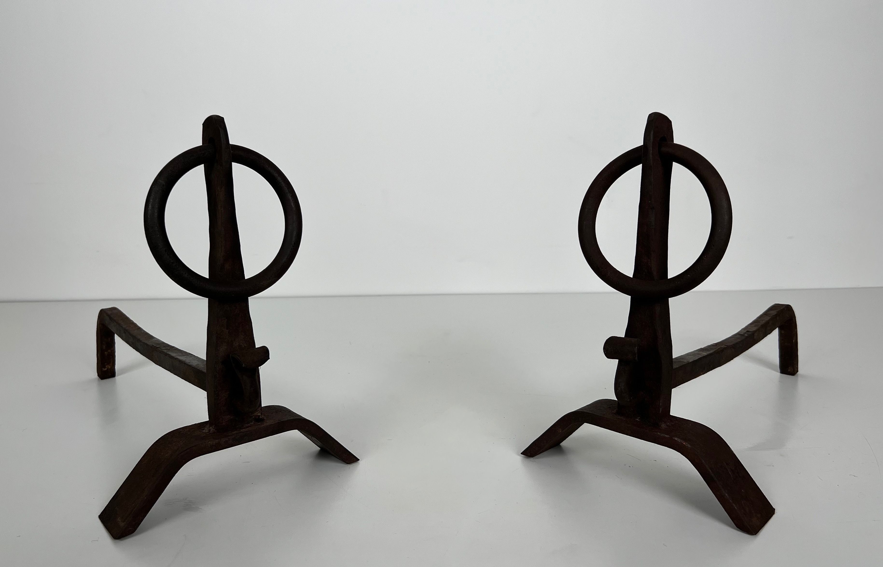 Pair of Modernist Wrought Iron Andirons in the Style of Jacques Adnet
