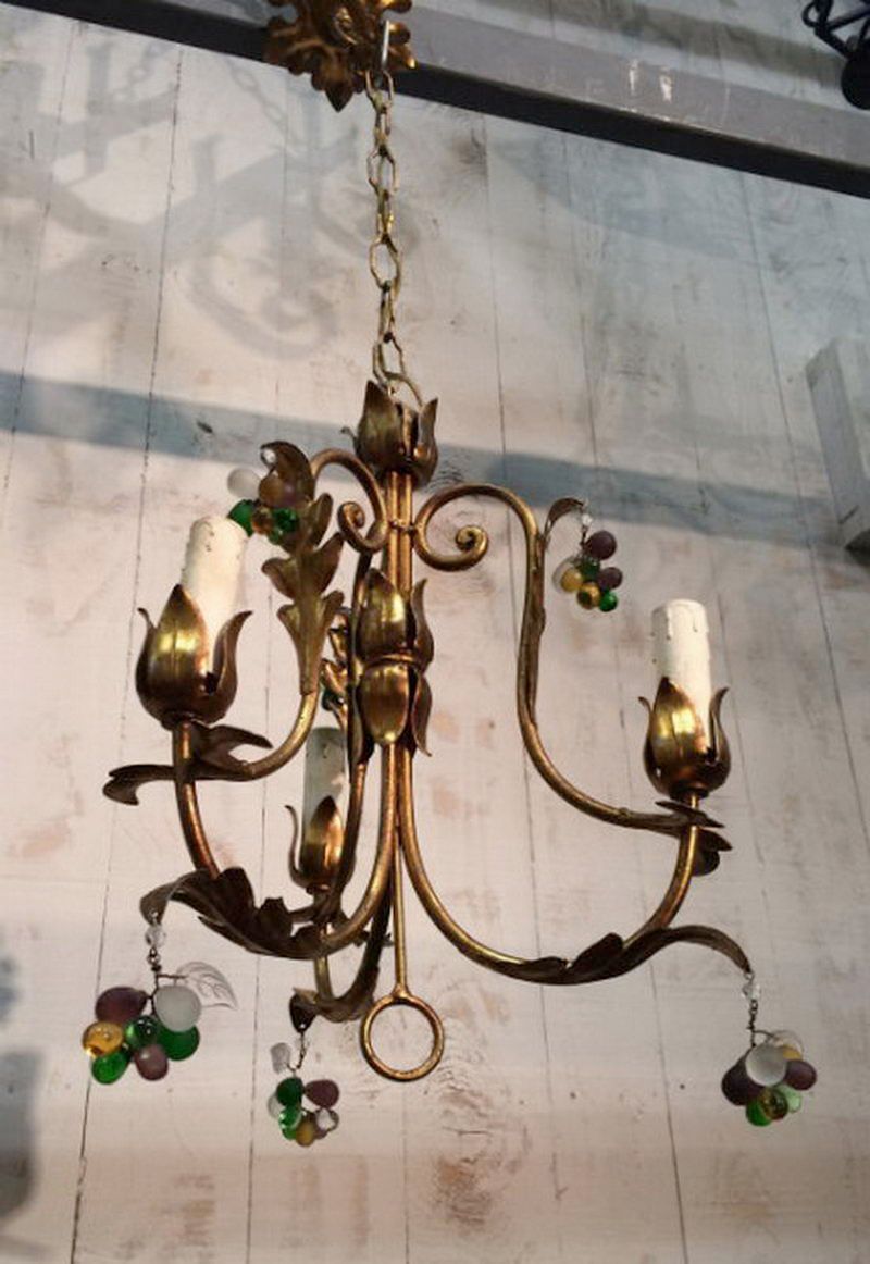 Pair of gild chandeliers with coloured cristal grappe. Circa 1960Pair of gild chandeliers with coloured cristal grappe. Circa 1960Request priceDimensionsWidth11.22 inch28.5 cmDepth11.22 inch28.5 cmHeight16.14 inch41 cmInformationProduct codeCC 343