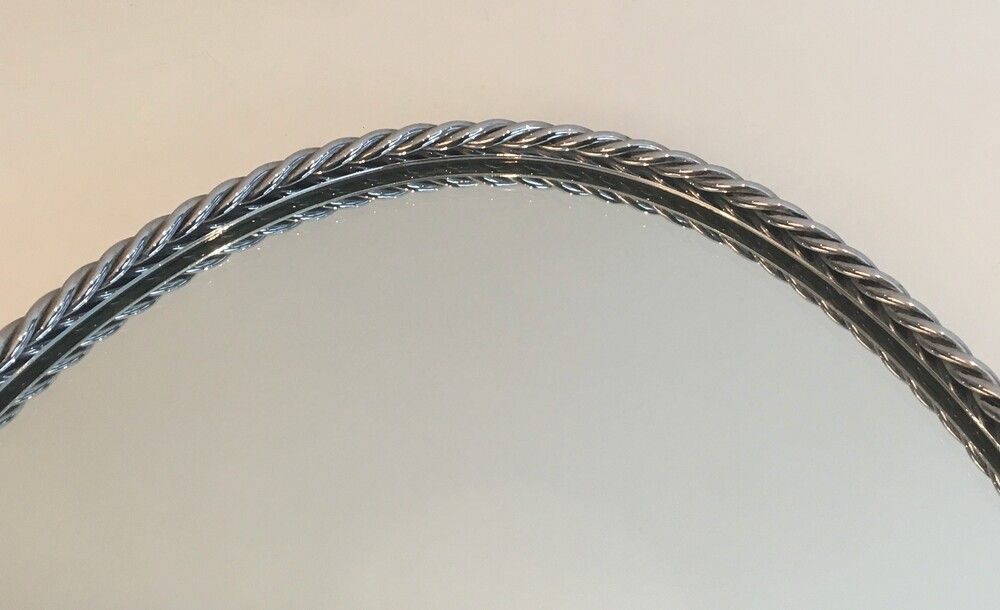 Attributed to Maison Bagués. Pair of oval silvered mirrors with twisted garlands and pompons. French. Circa 1940