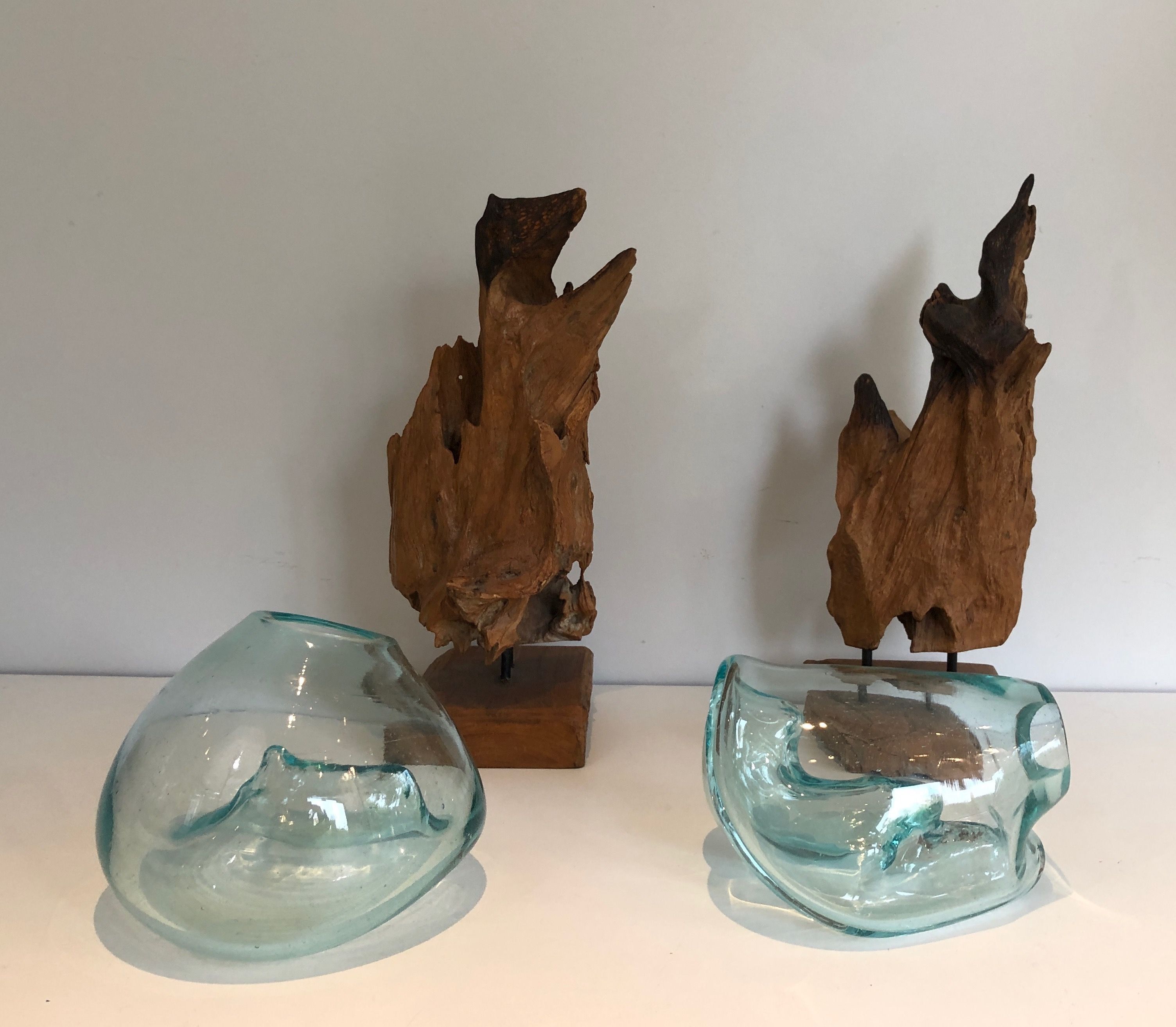 Pair of Wood and Glass VasesPair of vases made of wood elements and glass vases. french. Circa 1980Sold as a setRequest priceDimensionsWidth6.5 inch16.5 cmDepth6.3 inch16 cmHeight20.08 inch51 cmInformationProduct codeI-728