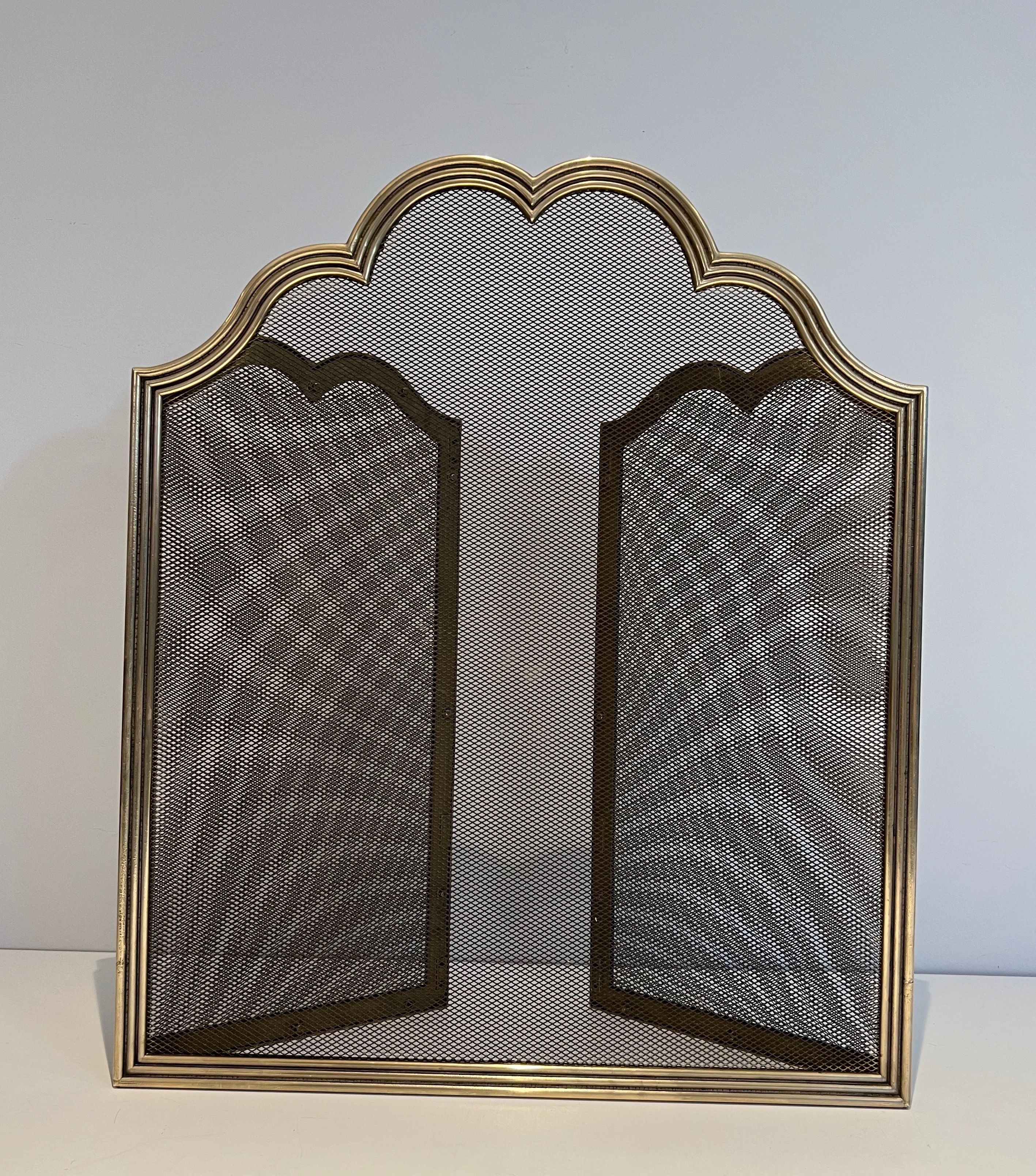 Neoclassical style brass and grilling 3 panels fireplace screen. French work. Circa 1970