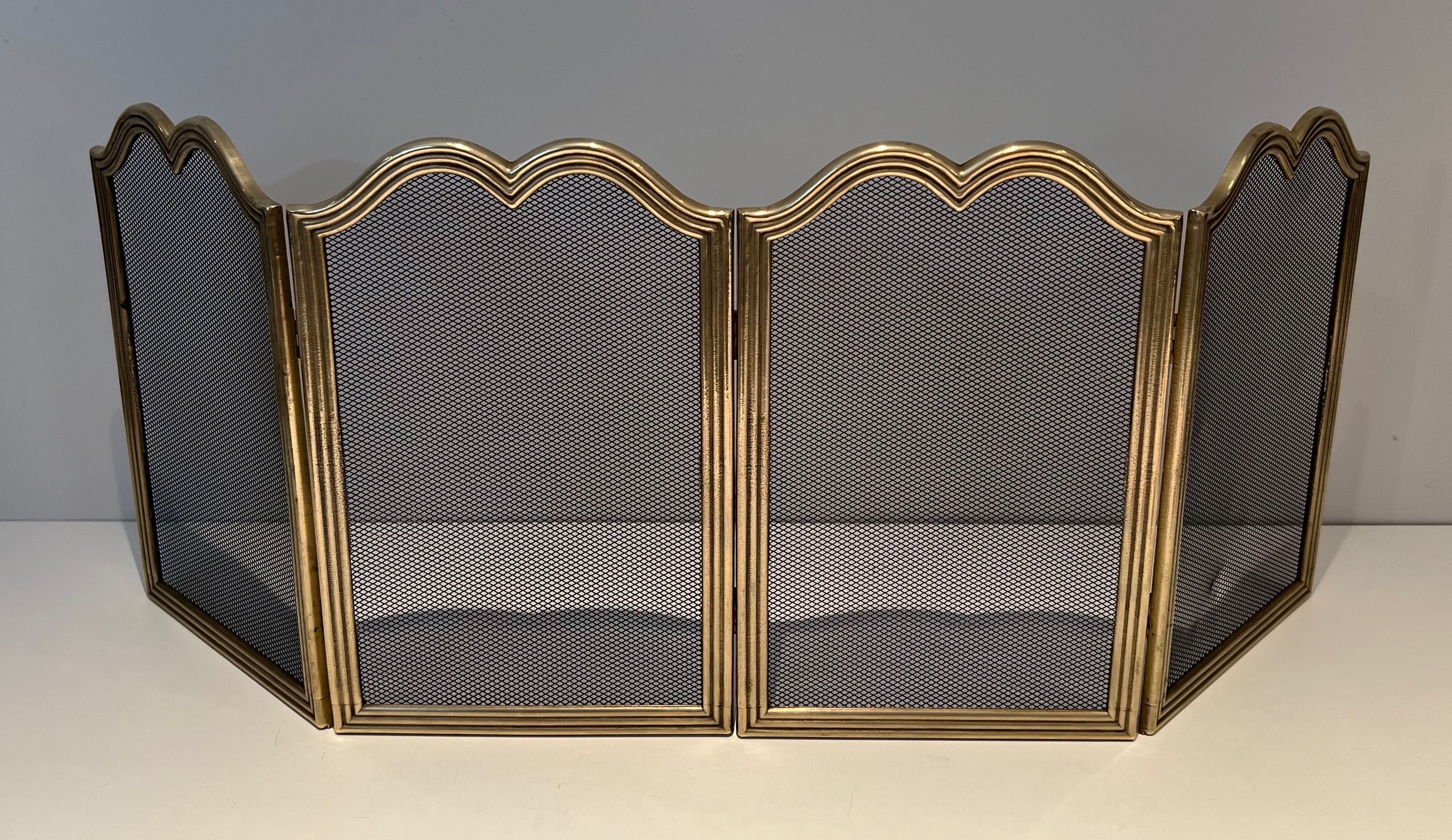 Neoclassical style brass and grilling 4 panels fireplace screen. French work. Circa 1970