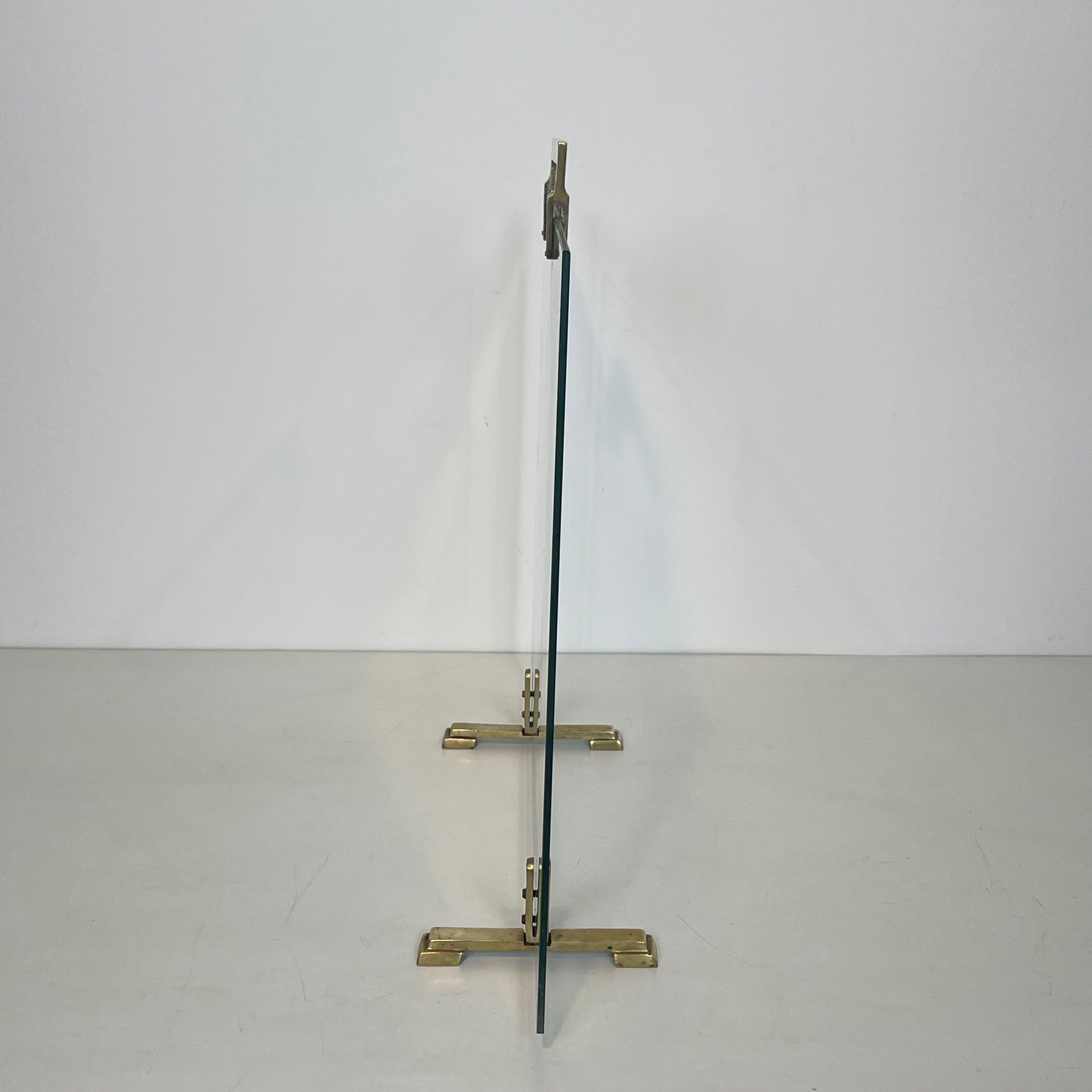 Glass and Brass Fireplace ScreenGlass and brass fireplace screen with brass feet. French work. Circa 1970Request priceDimensionsWidth27.56 inch70 cmDepth6.89 inch17.5 cmHeight22.44 inch57 cmInformationProduct codeFP-9615