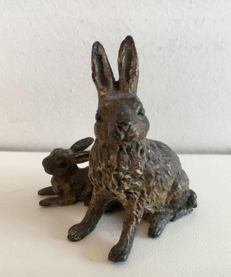 Small bronzeSmall bronze. Rabbit and his baby. Circa 1880Request priceDimensionsWidth1.97 inch5 cmDepth1.77 inch4.5 cmHeight2.17 inch5.5 cmInformationProduct codeAni-546