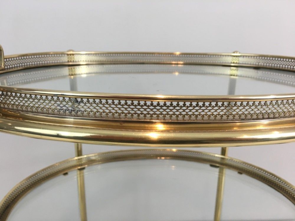 Delicate Neoclassical Oval Brass Trolley with 3 Removable Shelves. French. Circa 1940