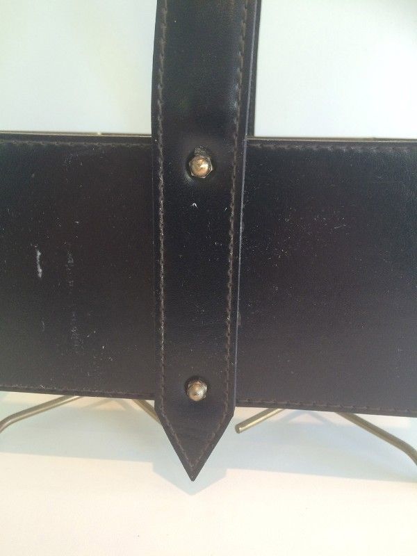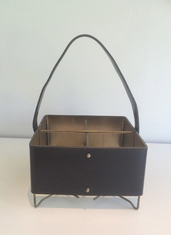 Leather, Brass and Gilt Metal Bottles HolderLeather, Brass and Gilt Metal Bottles Holder. French. Circa 1950Request priceDimensionsWidth9.45 inch24 cmDepth9.45 inch24 cmHeight13.39 inch34 cmInformationProduct code50's-29349