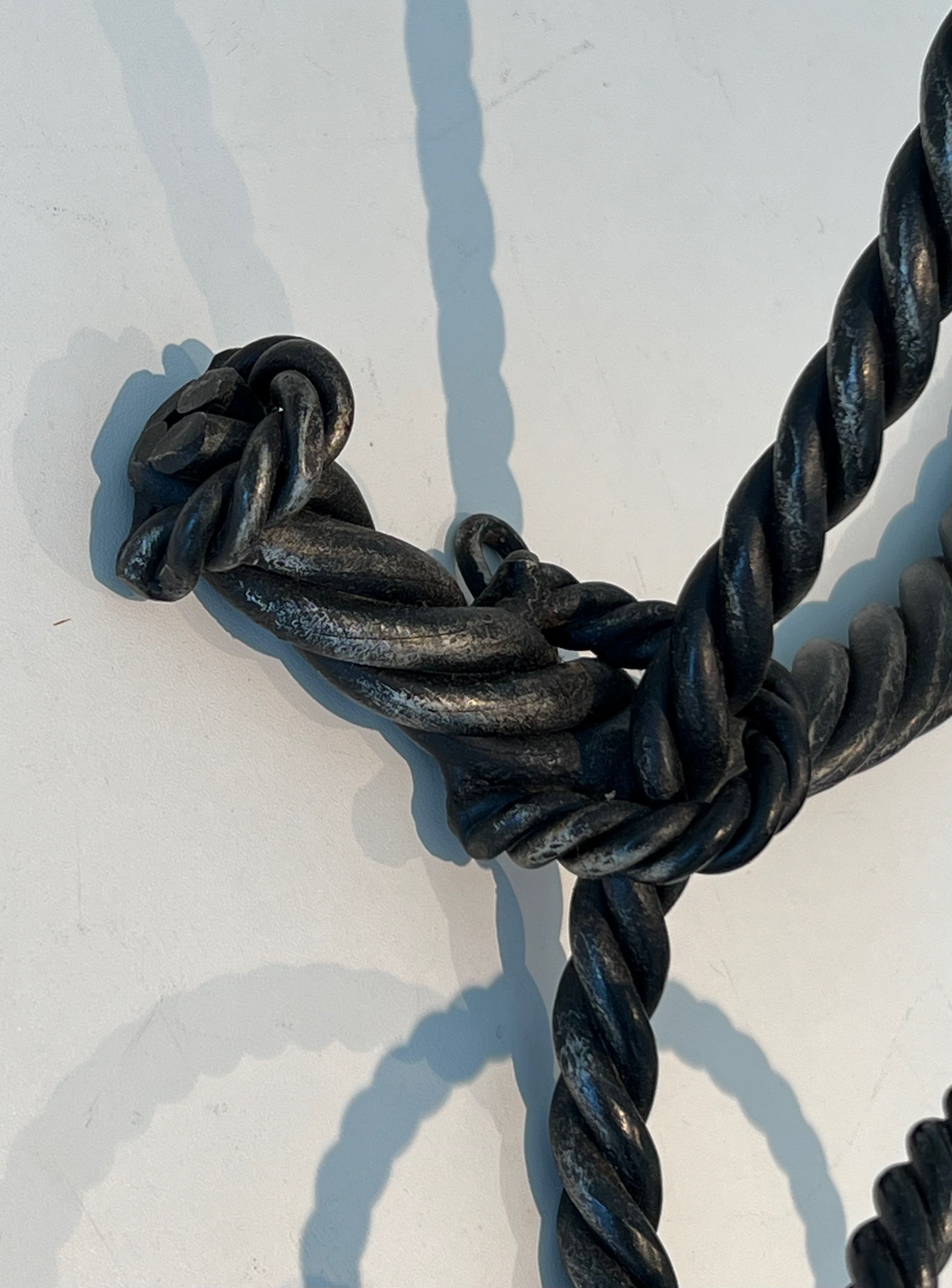 Twisted Wrought Iron Coat Rack. French WorkTwisted wrought iron coat rack. Very nice and fine iron work. French Work. Circa 1940Request priceDimensionsWidth24.21 inch61.5 cmDepth5.31 inch13.5 cmHeight18.11 inch46 cmInformationProduct codeD-2663